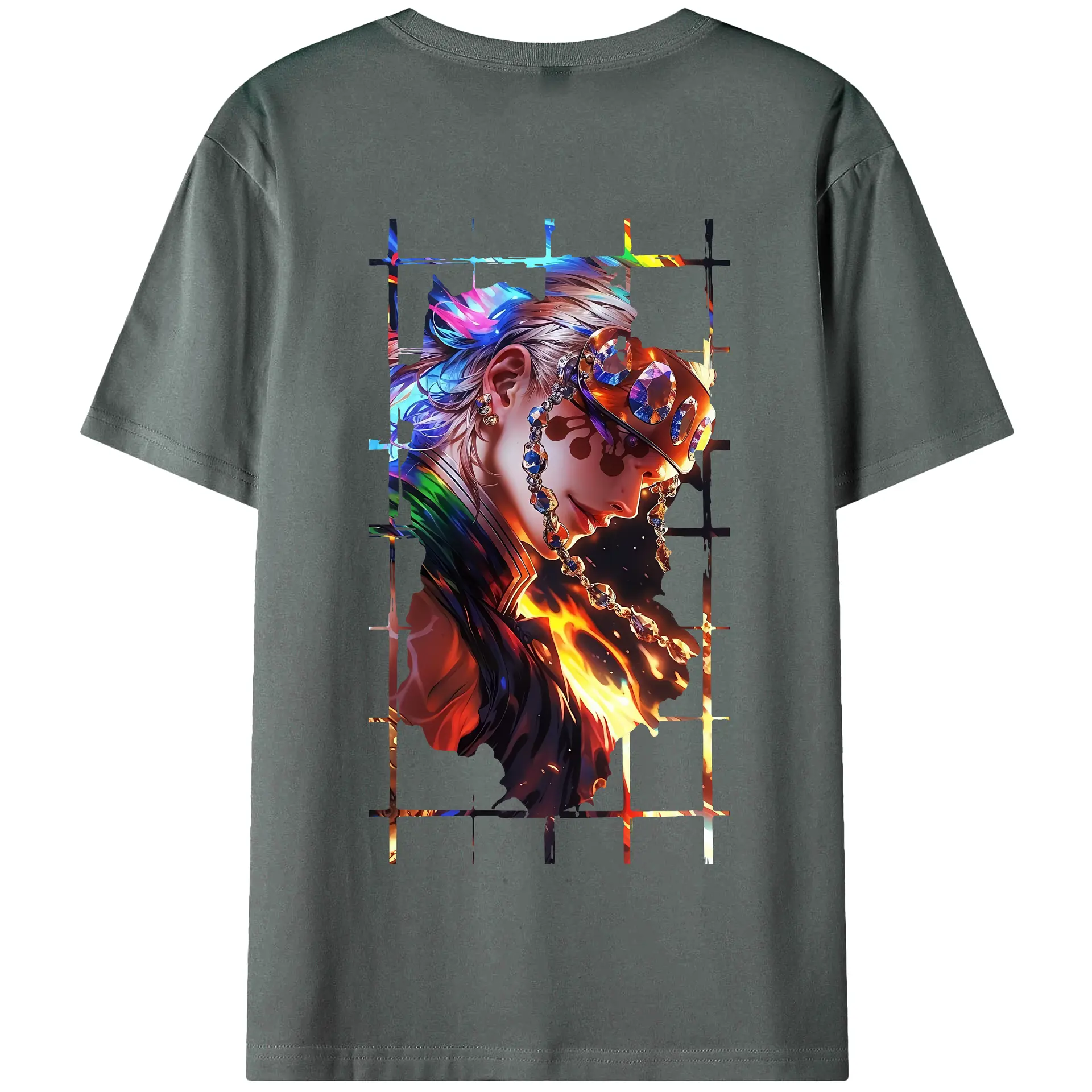 鬼滅の刃 グッズ,宇髄 天元 - 綿100% 半袖Tシャツ ・ フロントプリント ・ 快適 通気性 ・ 日常使い 散歩 スポーツ用