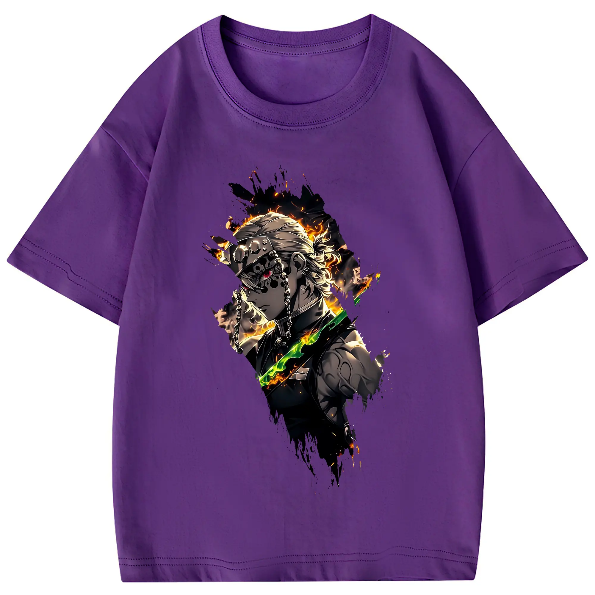 鬼滅の刃 グッズ,宇髄 天元 - 綿100% 半袖Tシャツ ・ フロントプリント ・ 快適 通気性 ・ 日常使い 散歩 スポーツ用