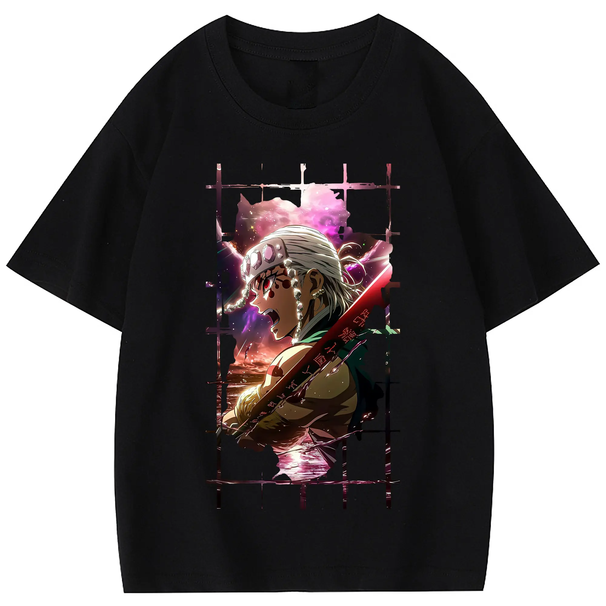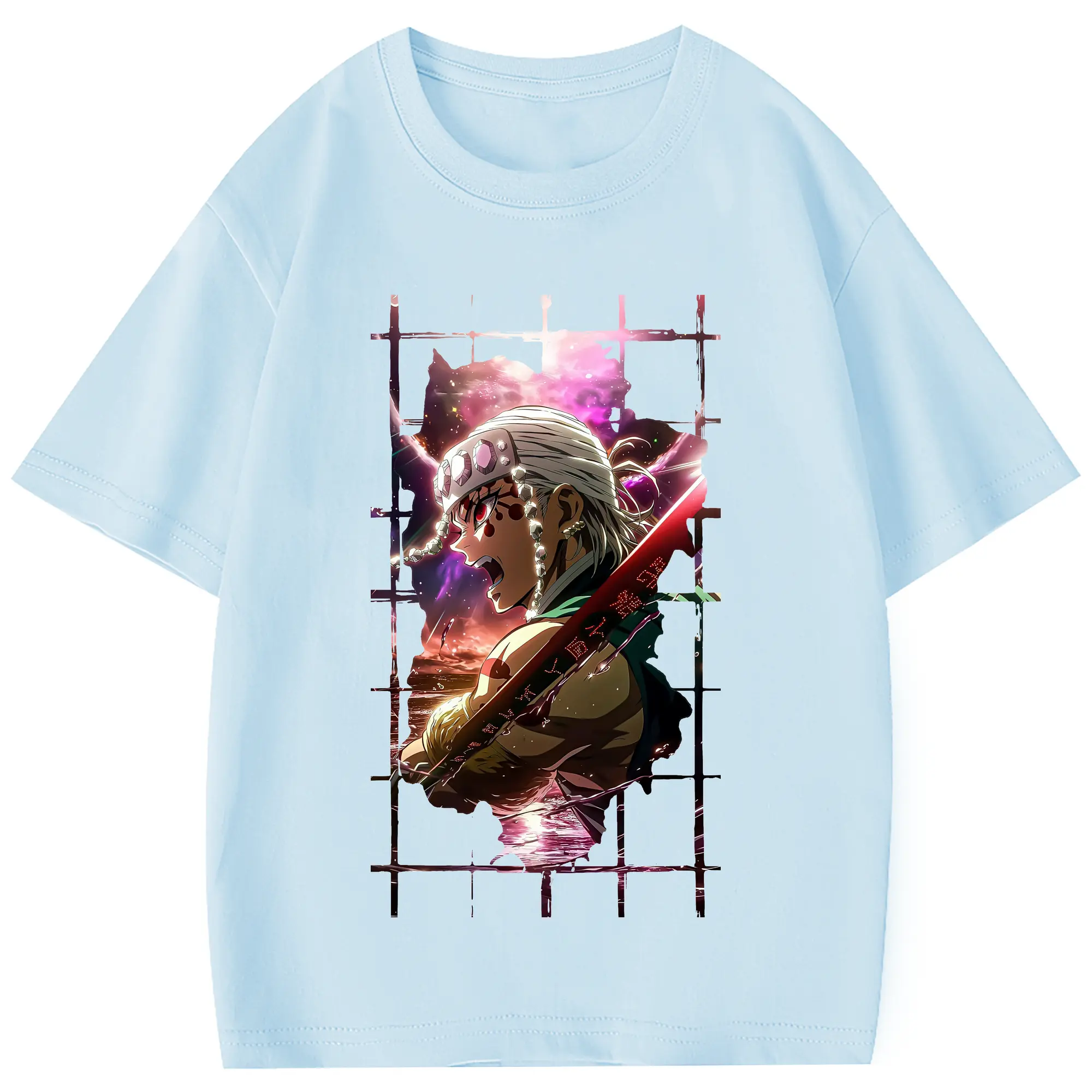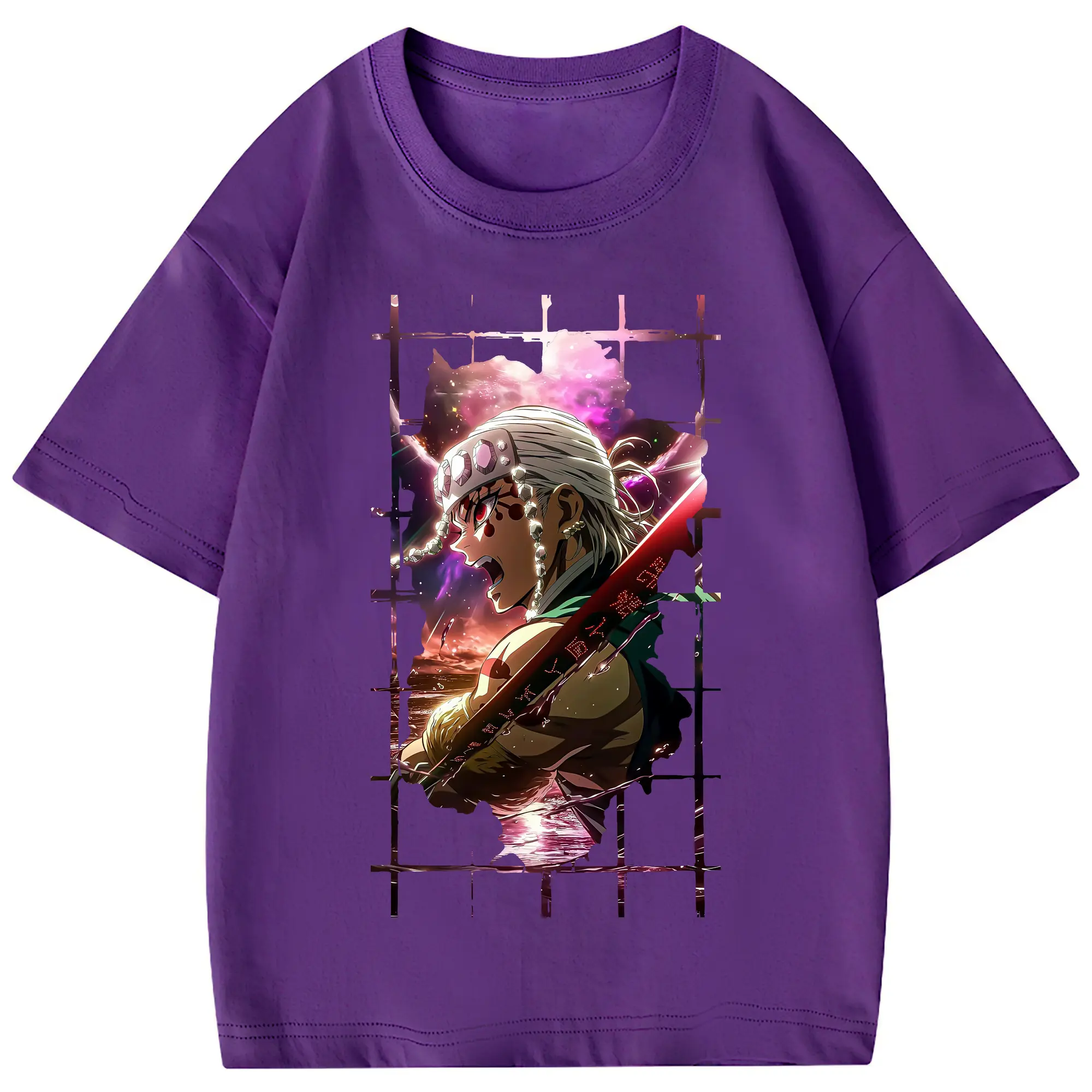 鬼滅の刃 グッズ,宇髄 天元 - 綿100% 半袖Tシャツ ・ フロントプリント ・ 快適 通気性 ・ 日常使い 散歩 スポーツ用