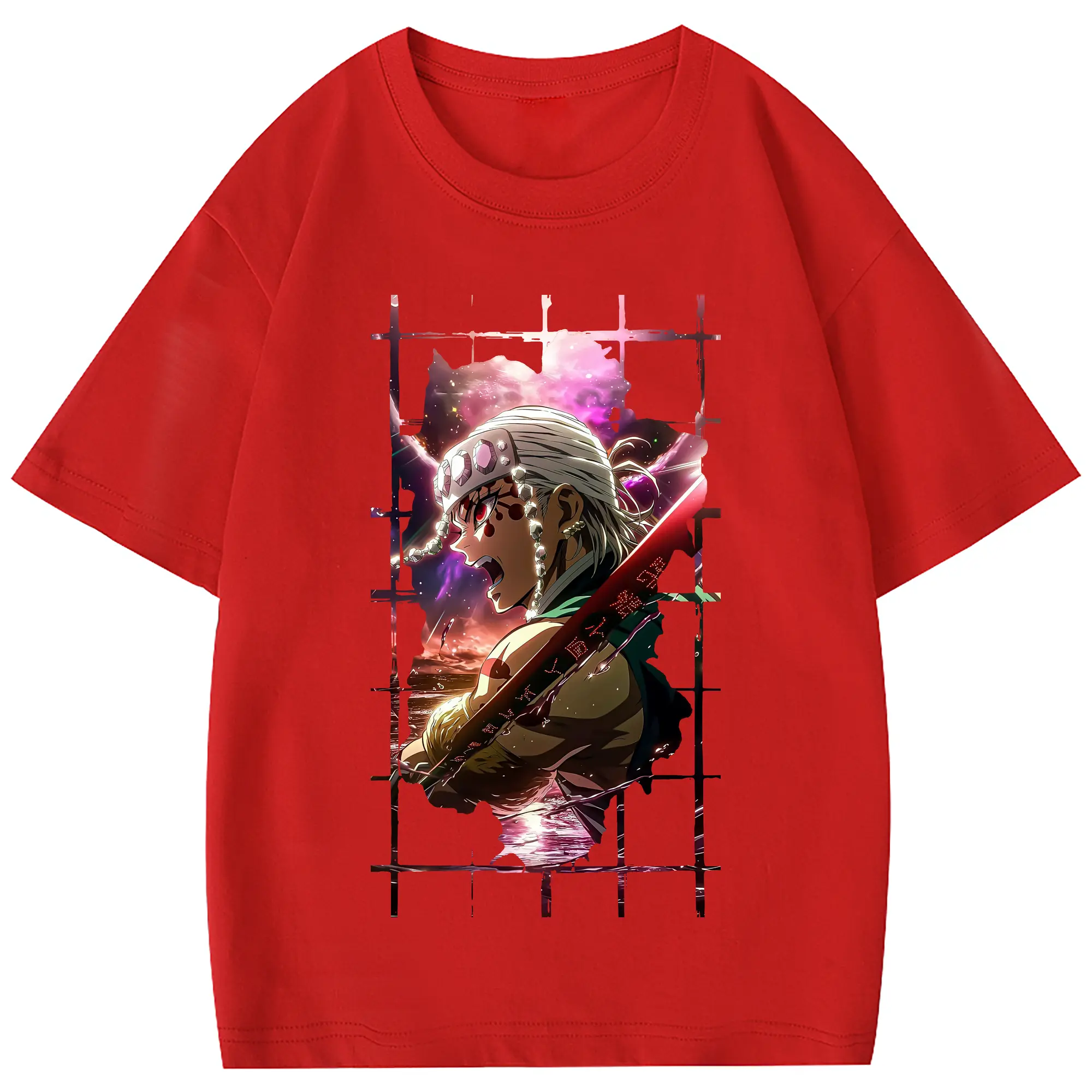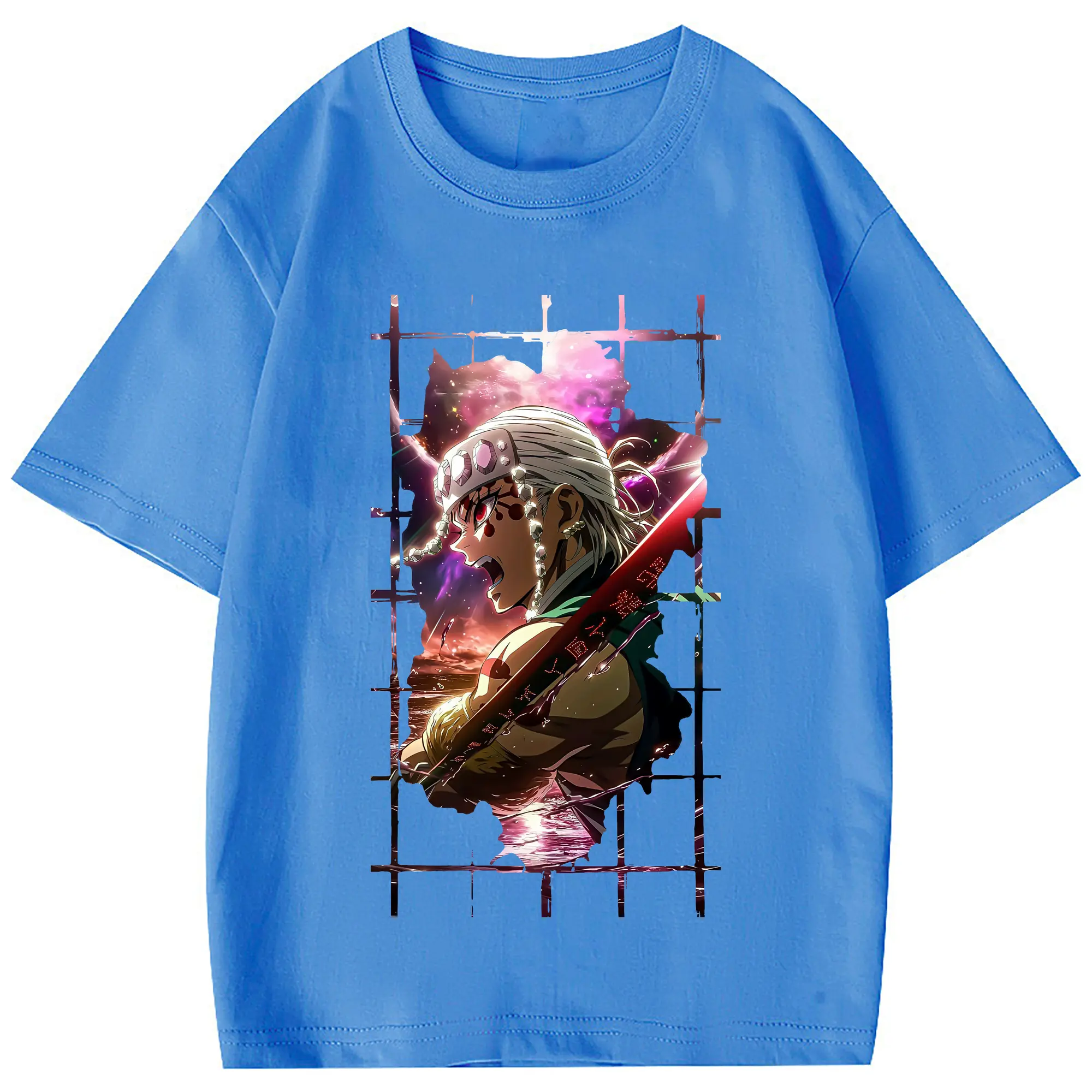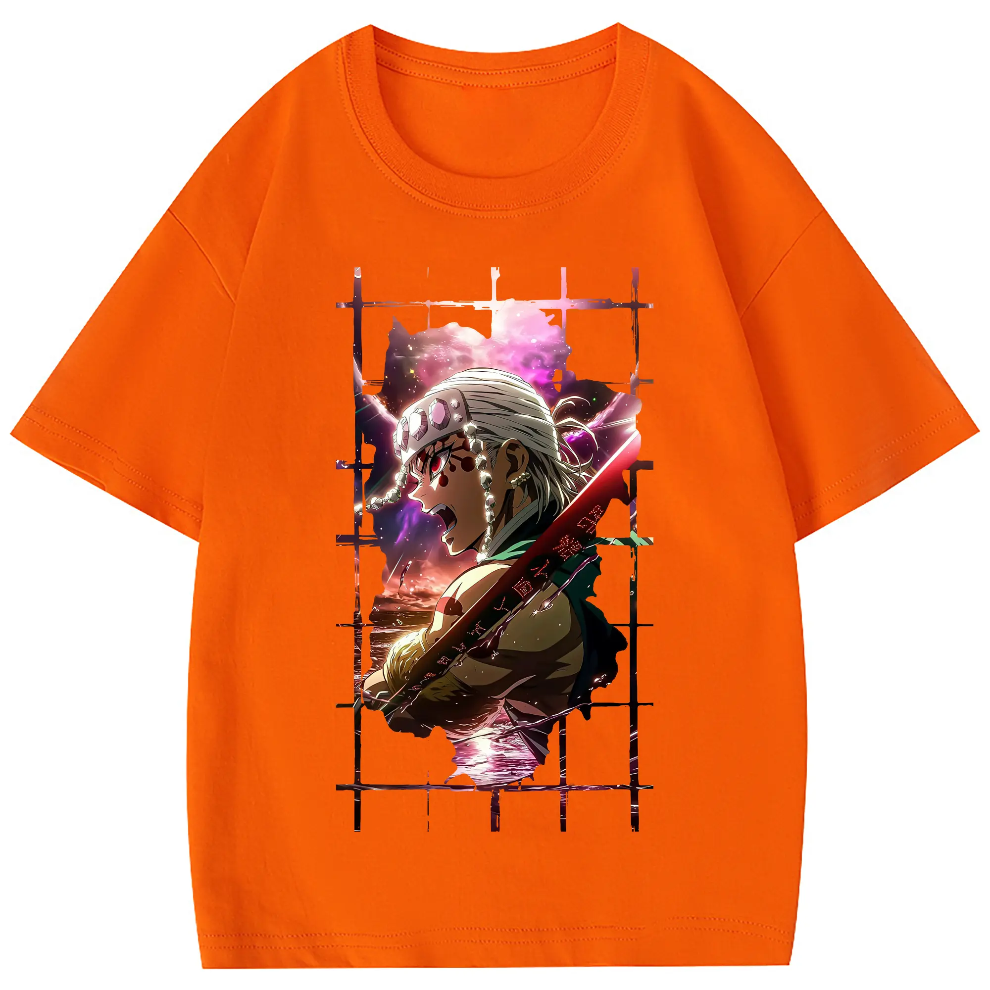 鬼滅の刃 グッズ,宇髄 天元 - 綿100% 半袖Tシャツ ・ フロントプリント ・ 快適 通気性 ・ 日常使い 散歩 スポーツ用