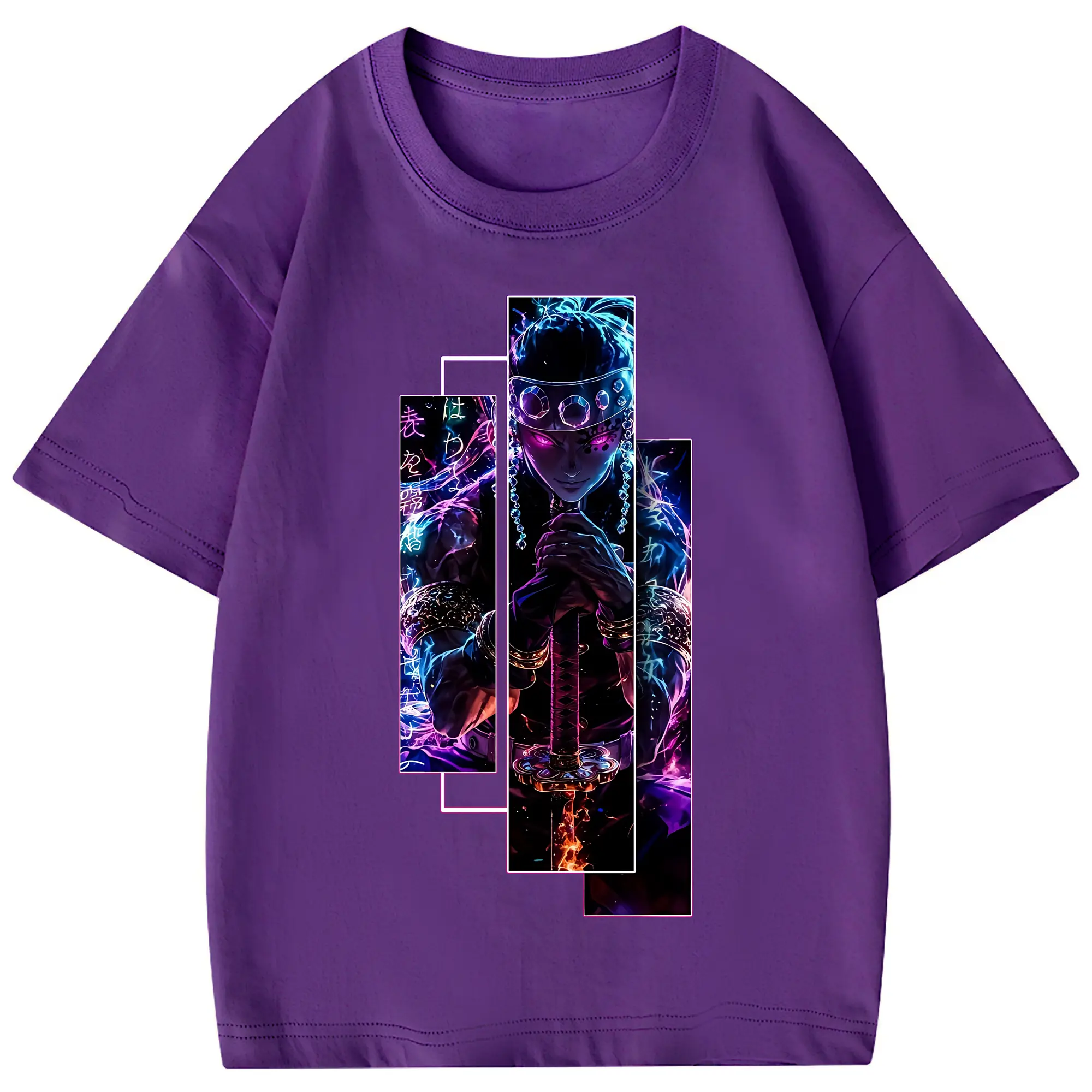 鬼滅の刃 グッズ,宇髄 天元 - 綿100% 半袖Tシャツ ・ フロントプリント ・ 快適 通気性 ・ 日常使い 散歩 スポーツ用