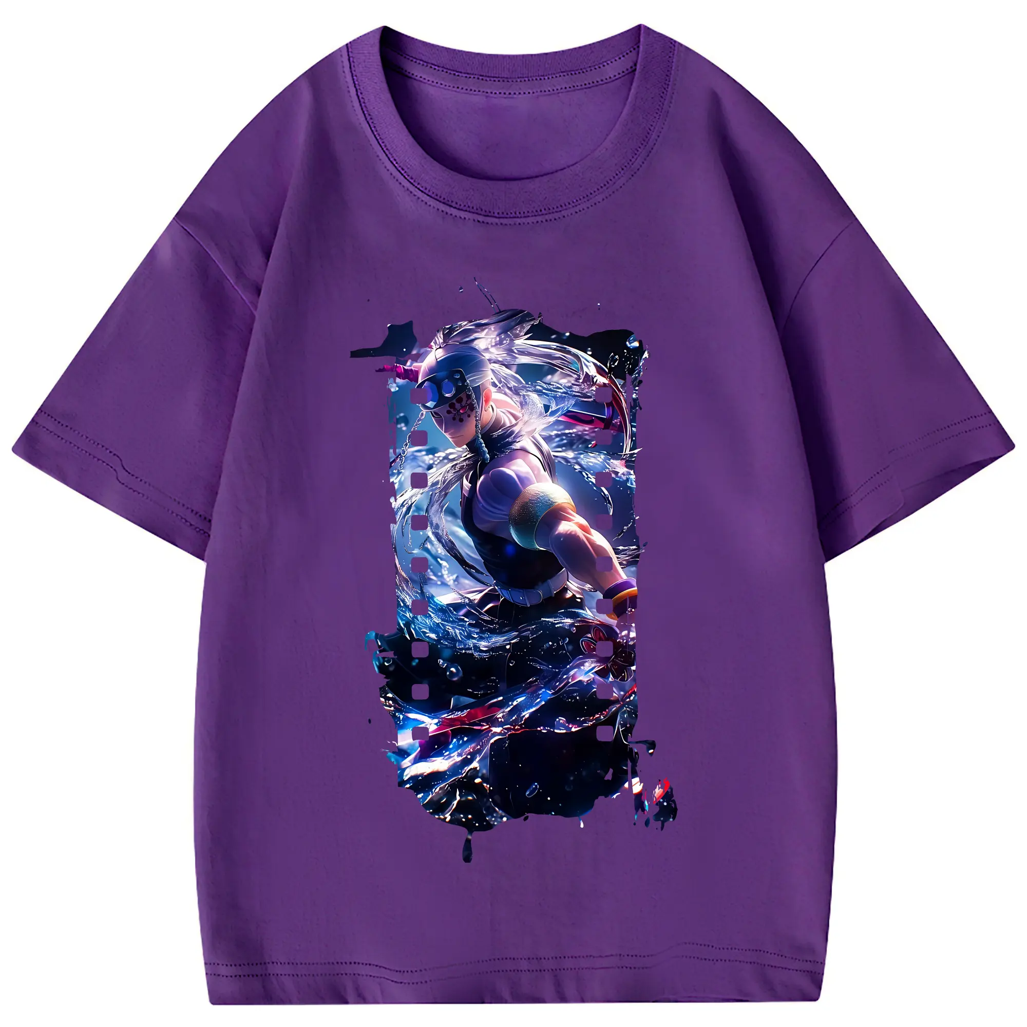 鬼滅の刃 グッズ,宇髄 天元 - 綿100% 半袖Tシャツ ・ フロントプリント ・ 快適 通気性 ・ 日常使い 散歩 スポーツ用