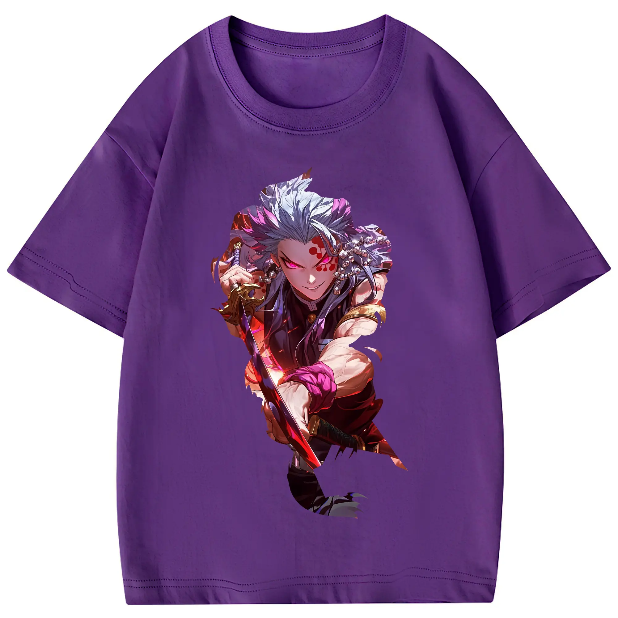 鬼滅の刃 グッズ,宇髄 天元 - 綿100% 半袖Tシャツ ・ フロントプリント ・ 快適 通気性 ・ 日常使い 散歩 スポーツ用