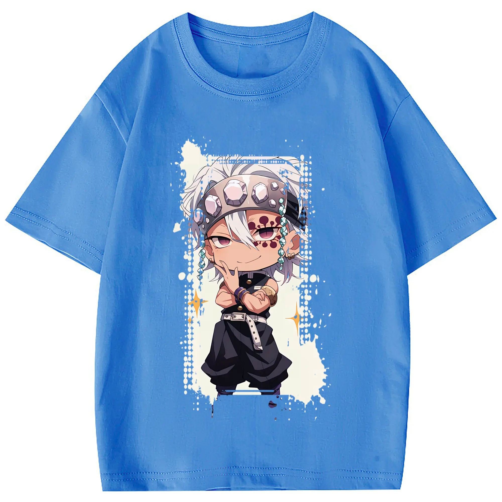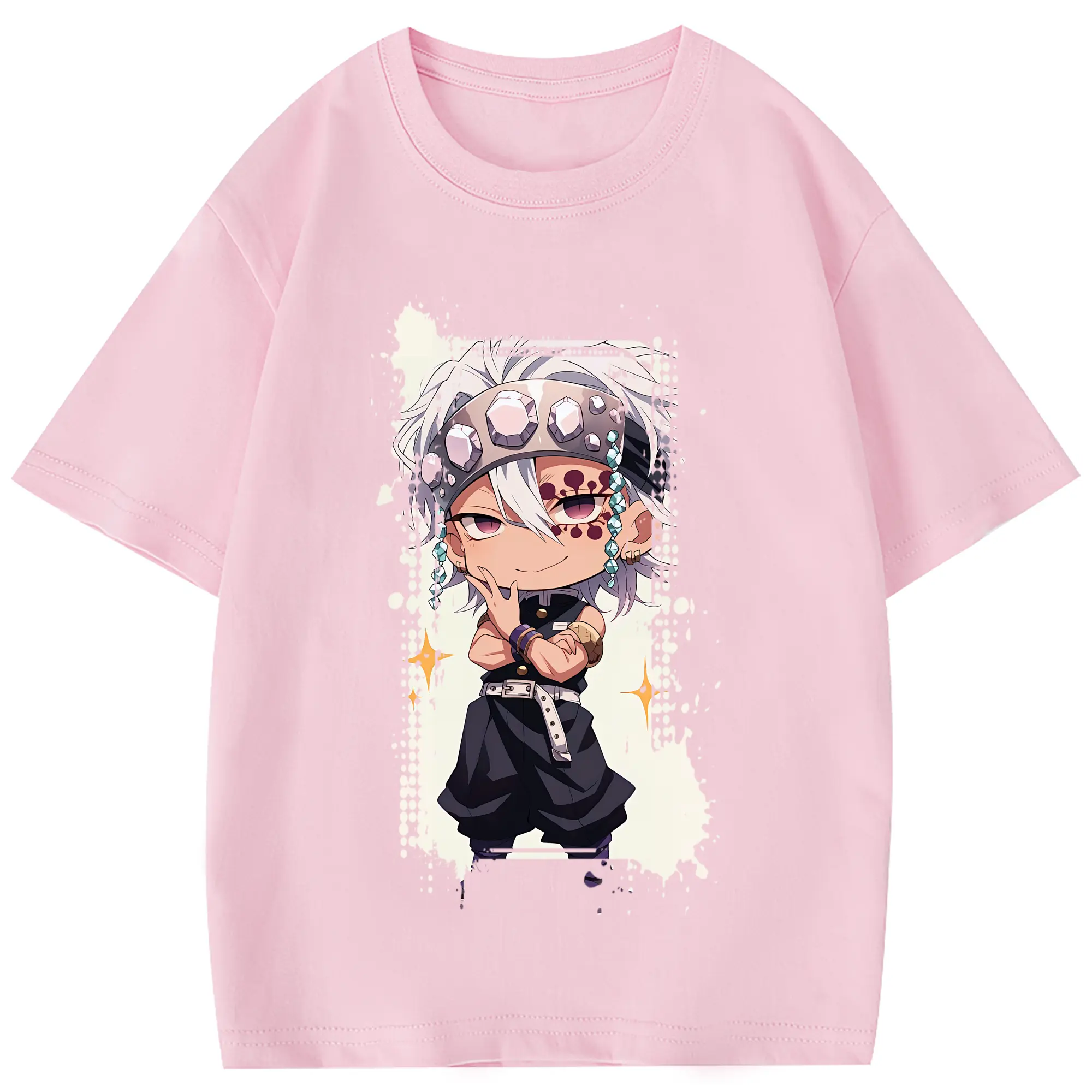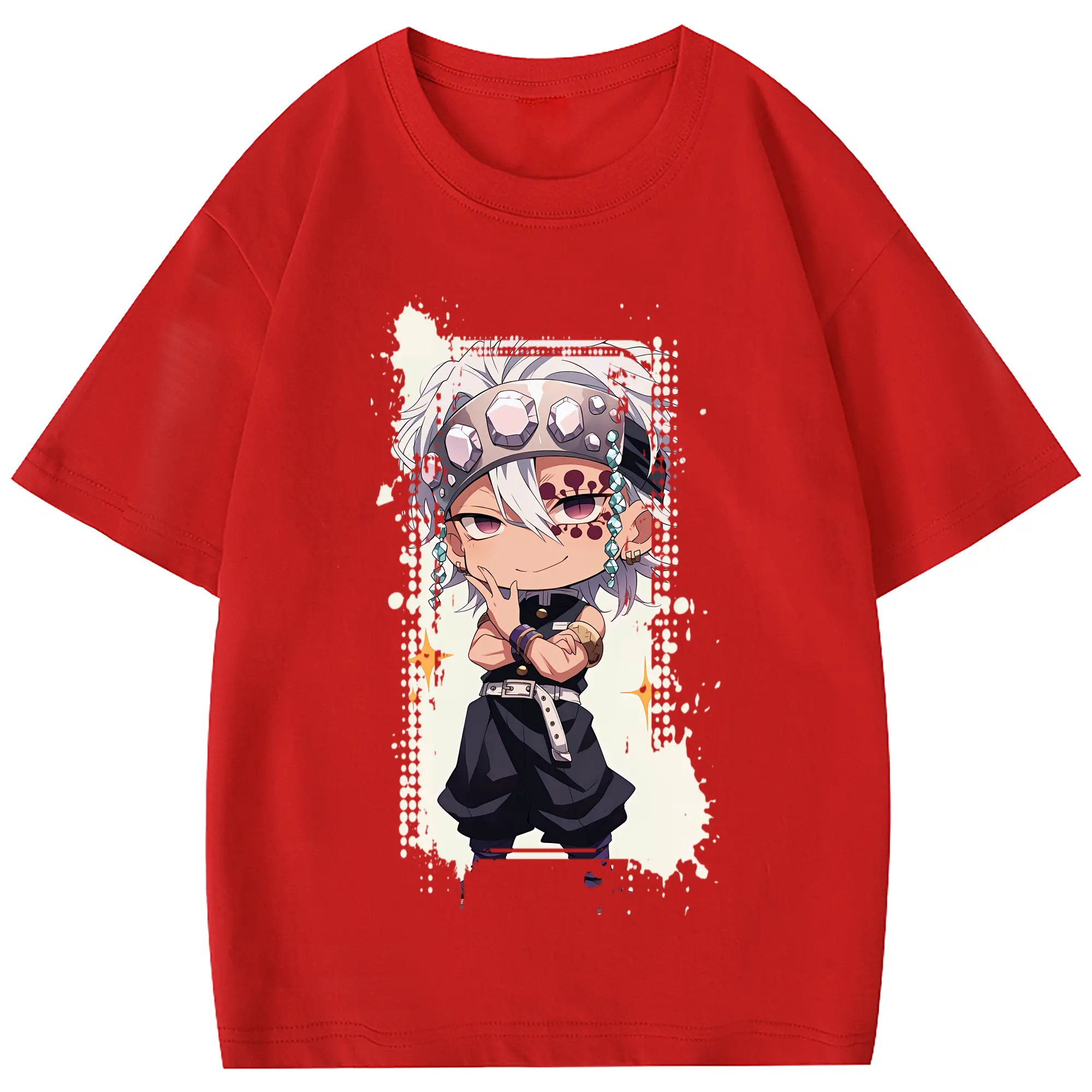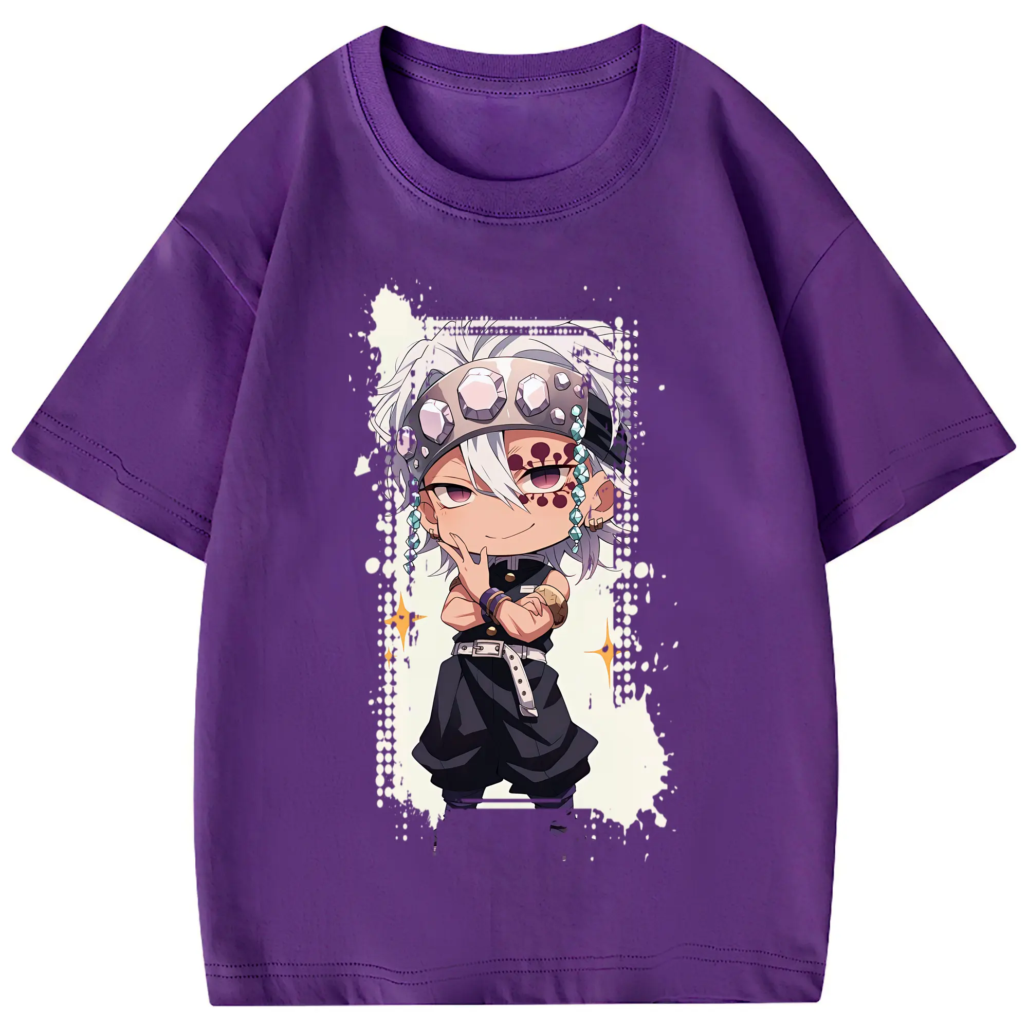鬼滅の刃 グッズ,宇髄 天元 - 綿100% 半袖Tシャツ ・ フロントプリント ・ 快適 通気性 ・ 日常使い 散歩 スポーツ用