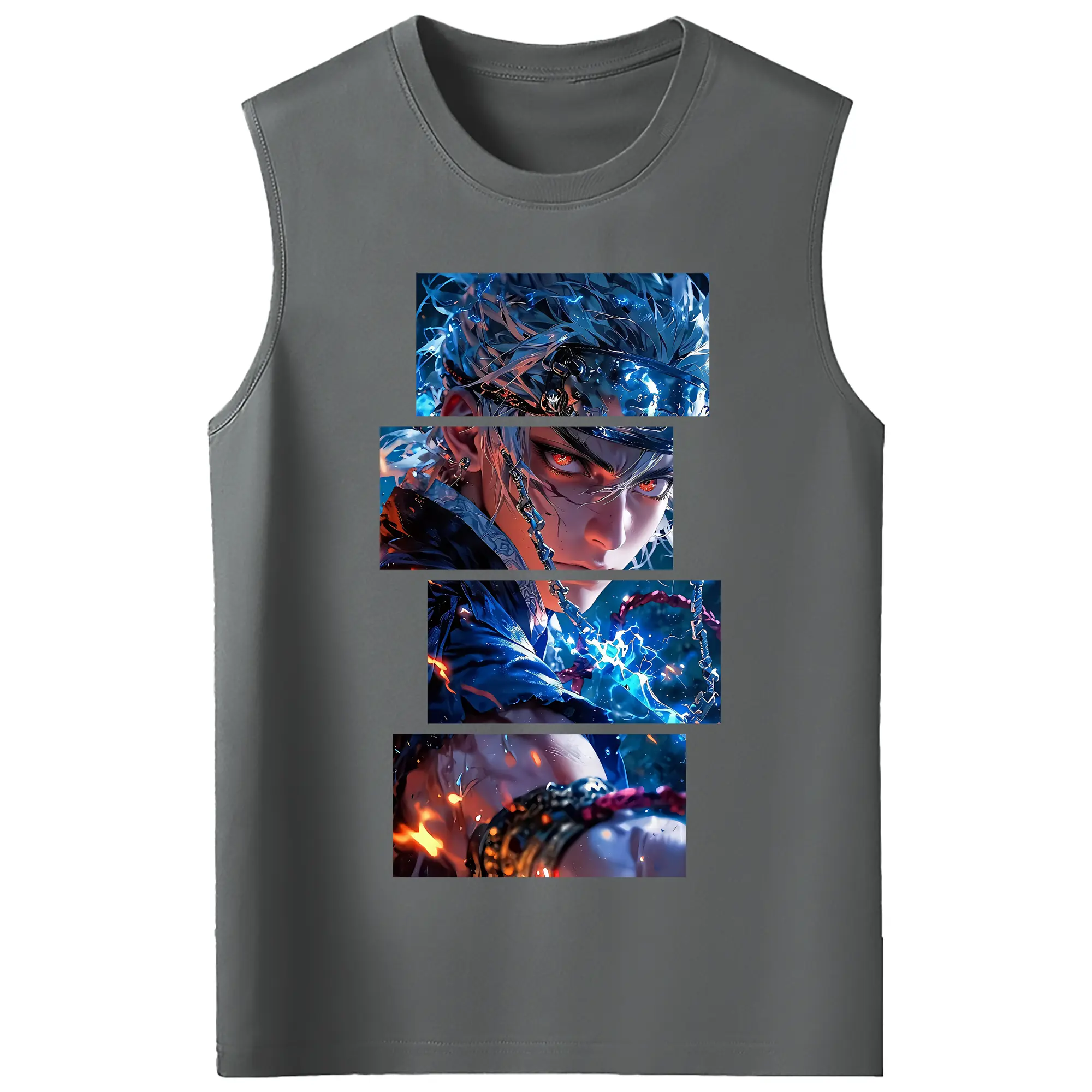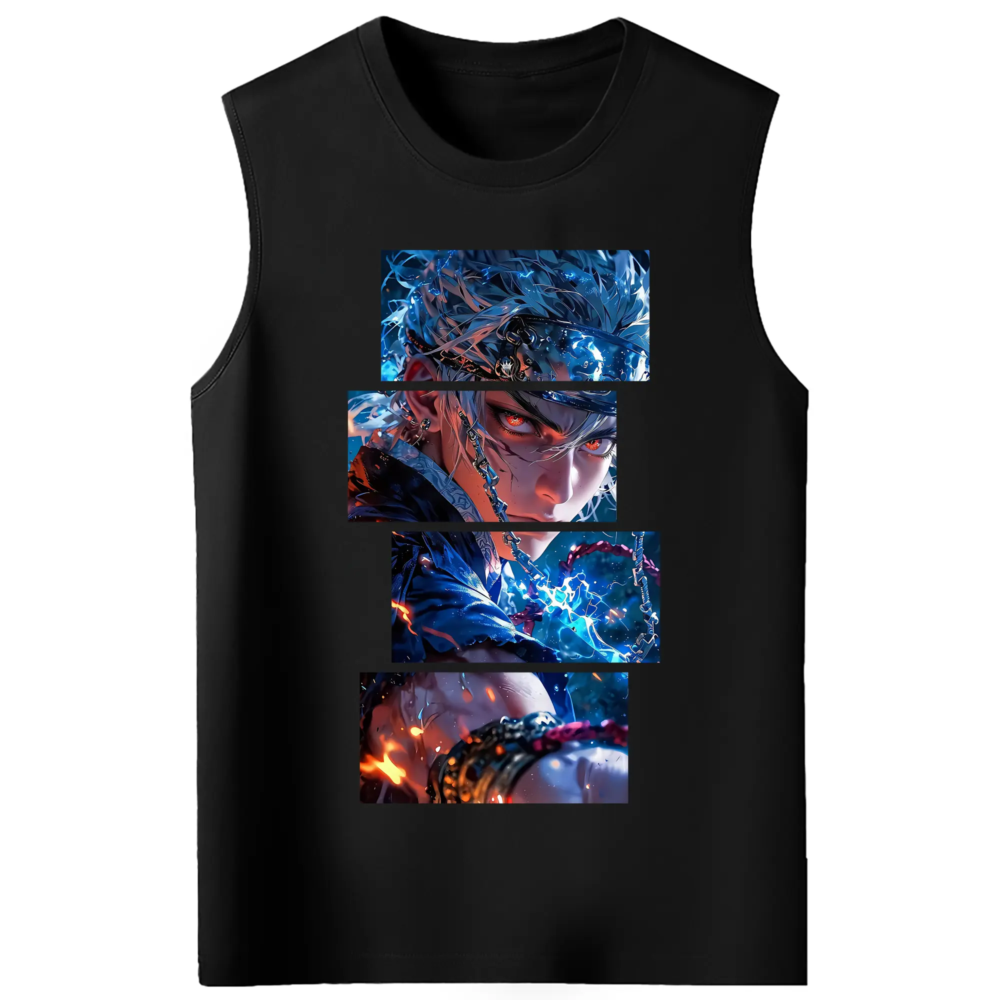 鬼滅の刃 グッズ,宇髄 天元 - コットン100% タンクトップ ・ フロントプリント ・ タイトフィット ・ 快適 通気性 ・ スポーツ カジュアル 散歩用