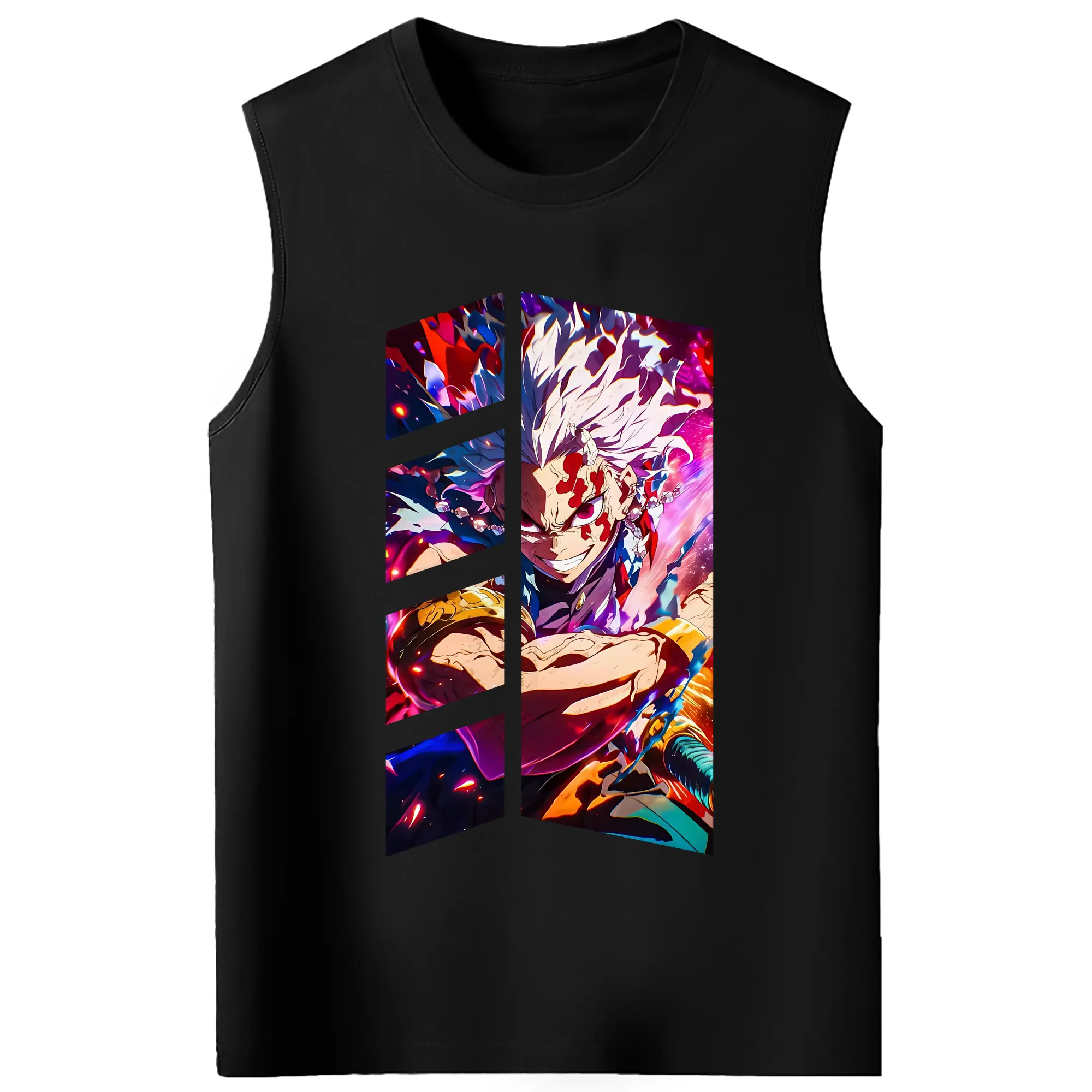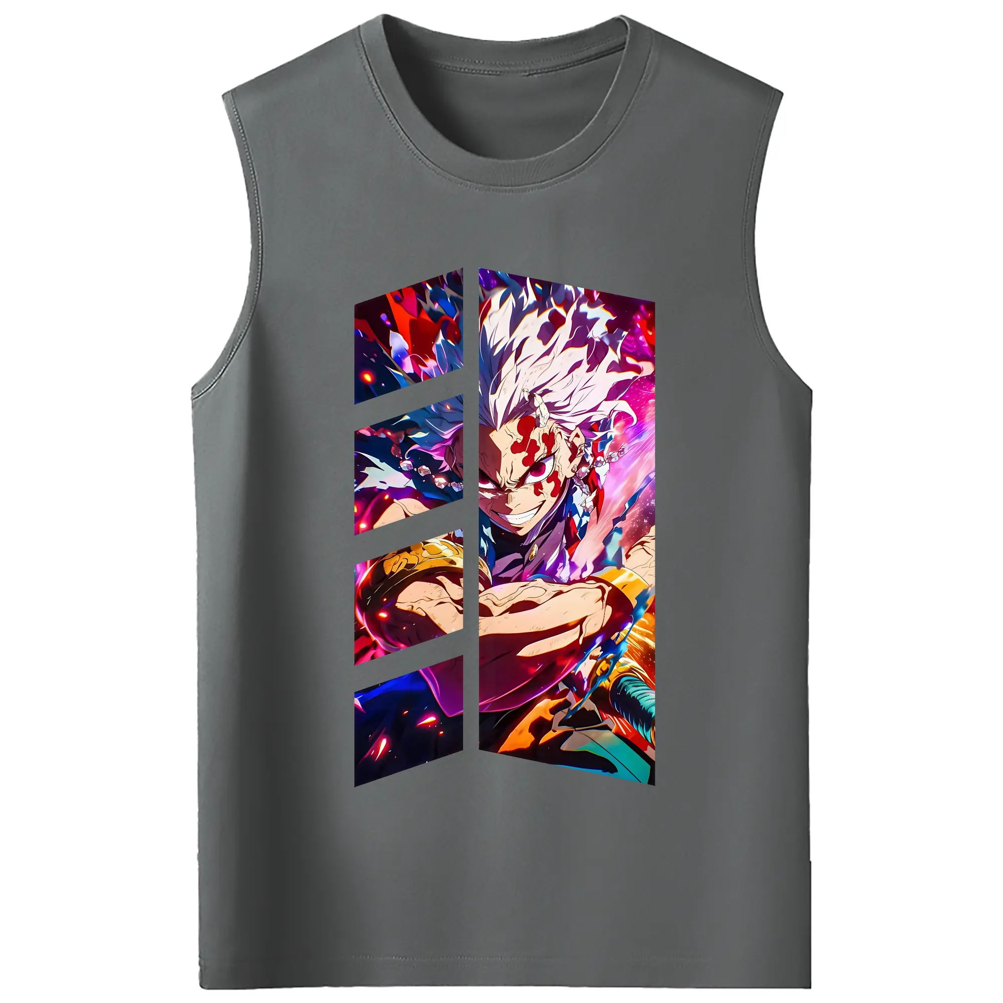 鬼滅の刃 グッズ,宇髄 天元 - コットン100% タンクトップ ・ フロントプリント ・ タイトフィット ・ 快適 通気性 ・ スポーツ カジュアル 散歩用