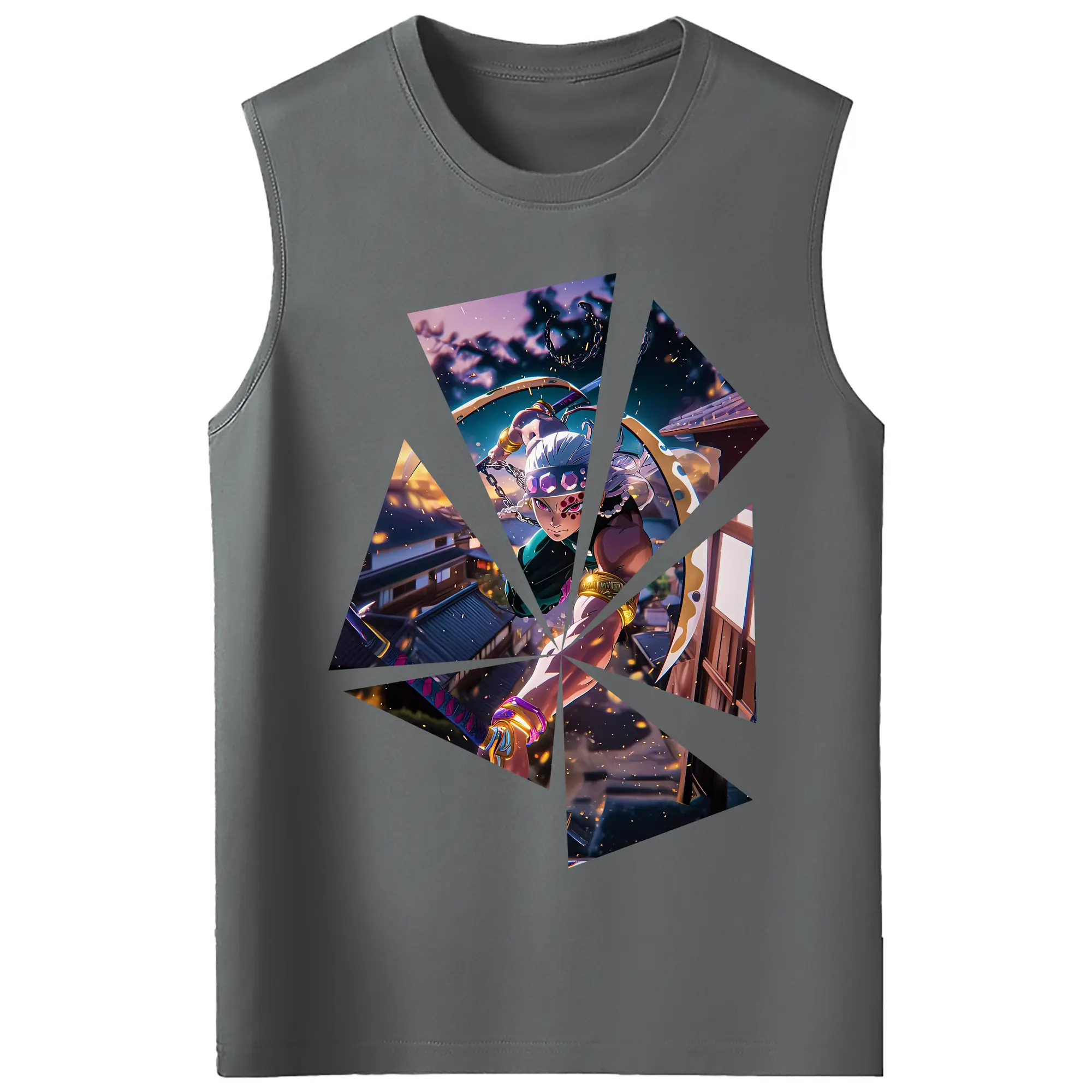 鬼滅の刃 グッズ,宇髄 天元 - コットン100% タンクトップ ・ フロントプリント ・ タイトフィット ・ 快適 通気性 ・ スポーツ カジュアル 散歩用