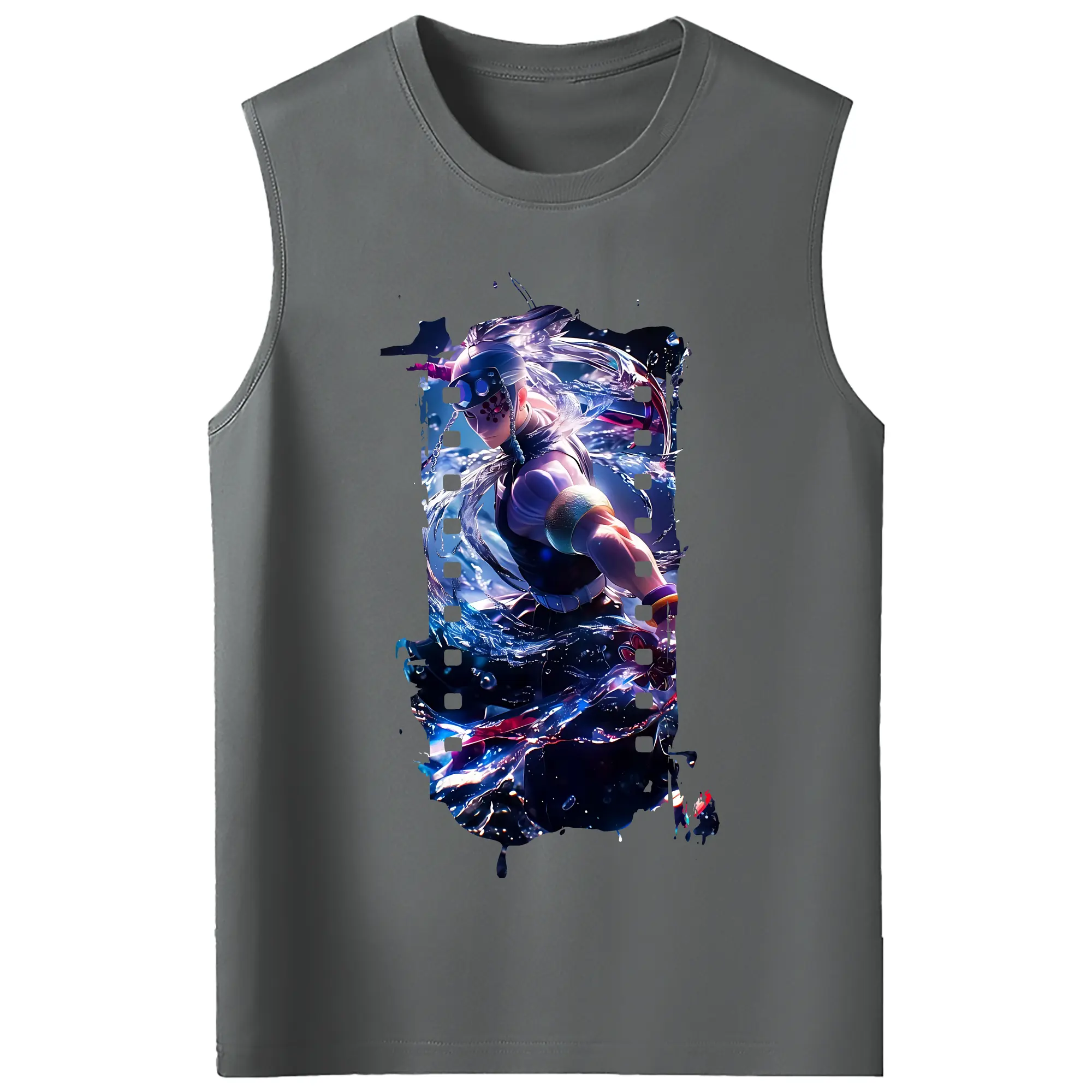 鬼滅の刃 グッズ,宇髄 天元 - コットン100% タンクトップ ・ フロントプリント ・ タイトフィット ・ 快適 通気性 ・ スポーツ カジュアル 散歩用