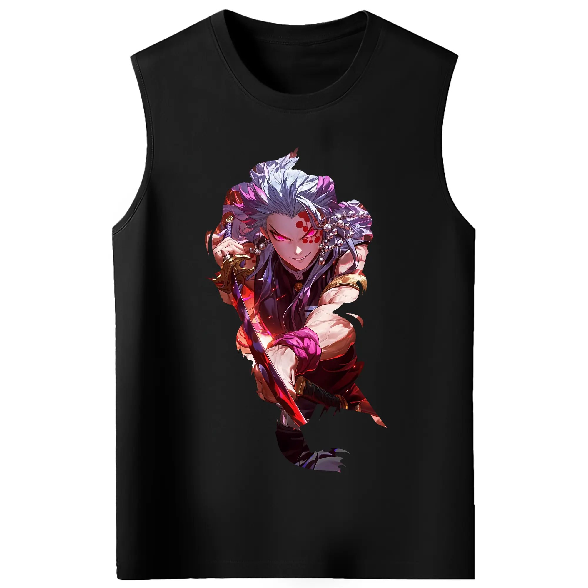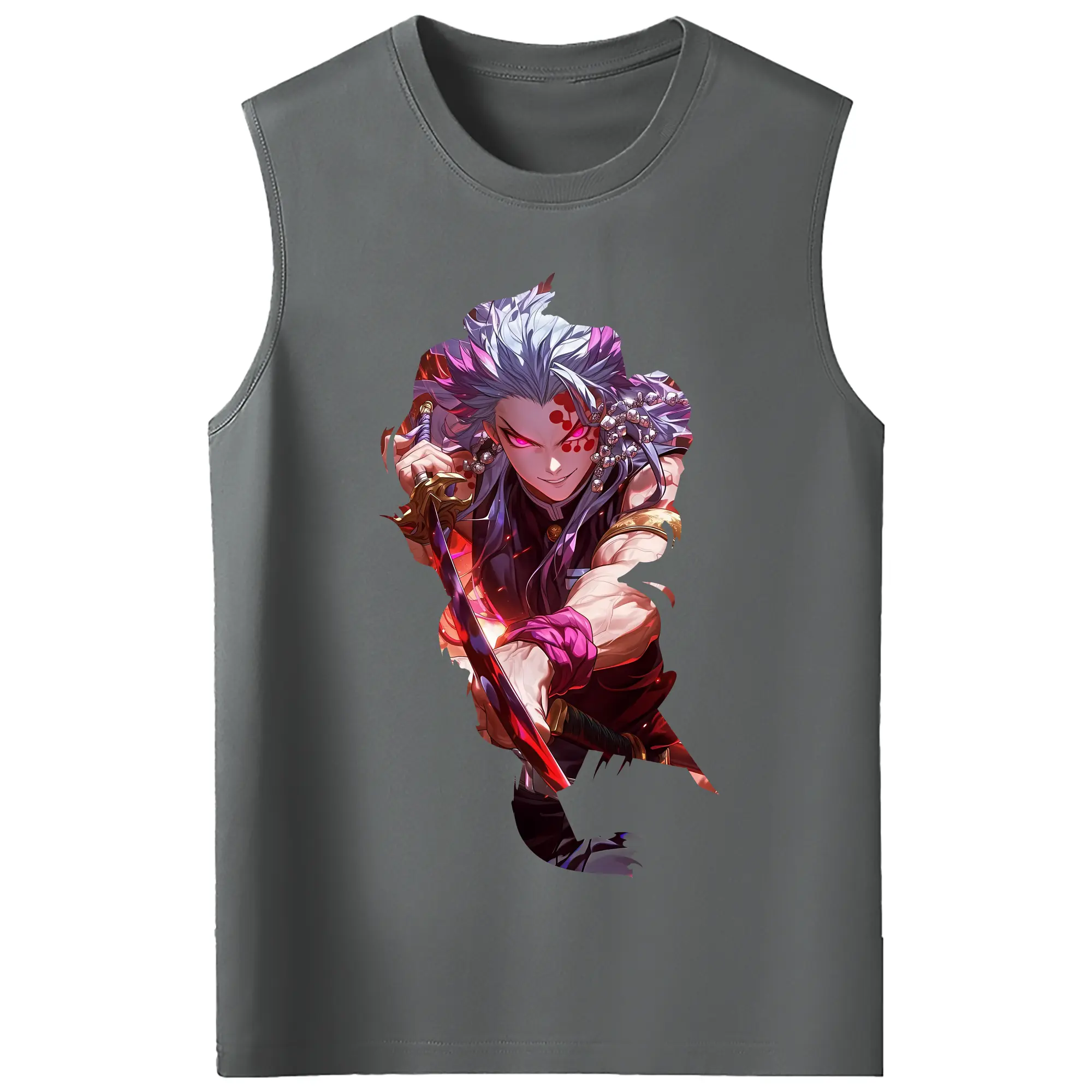 鬼滅の刃 グッズ,宇髄 天元 - コットン100% タンクトップ ・ フロントプリント ・ タイトフィット ・ 快適 通気性 ・ スポーツ カジュアル 散歩用