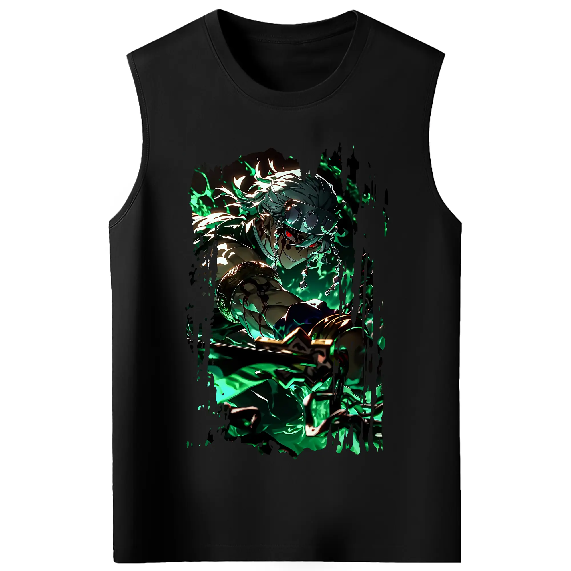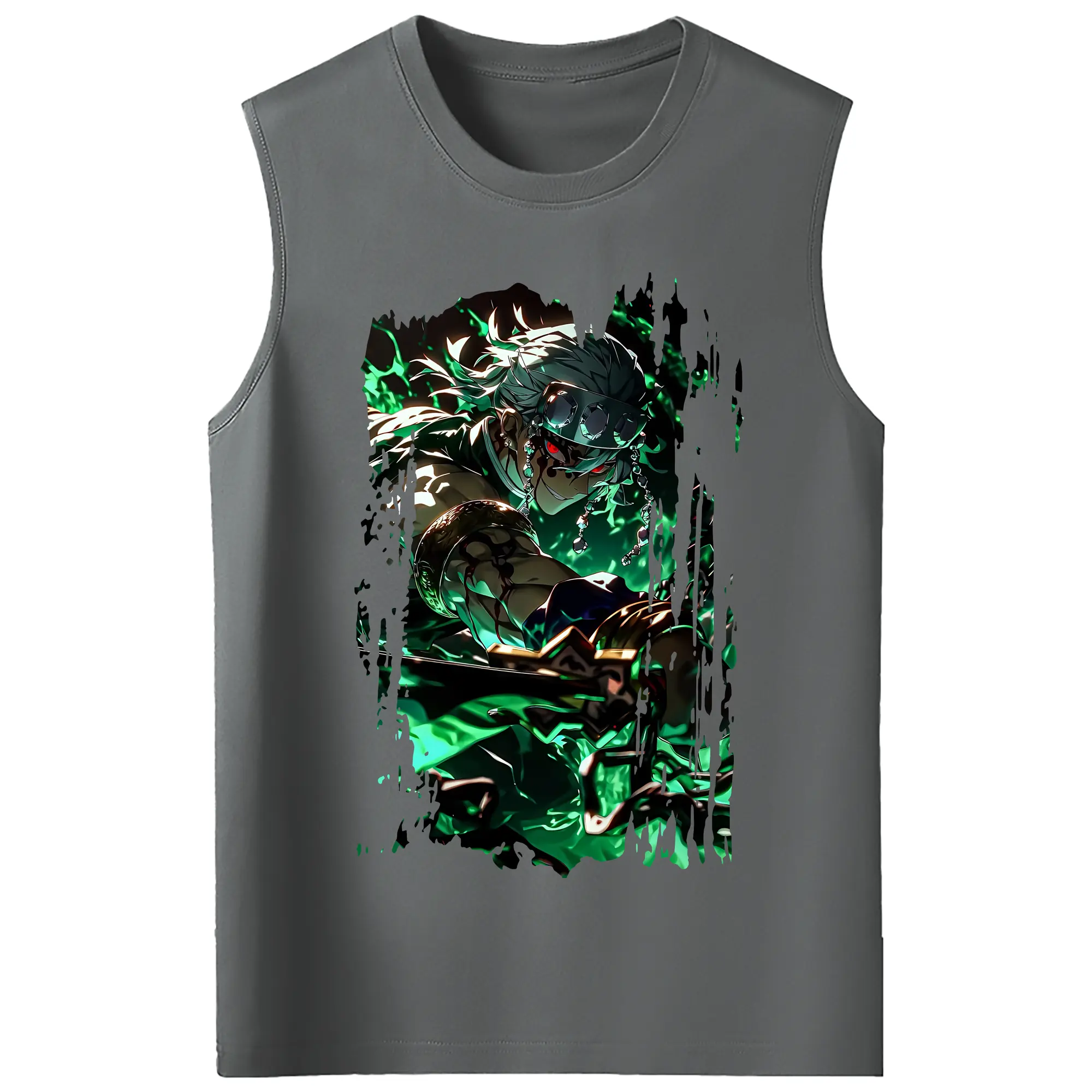 鬼滅の刃 グッズ,宇髄 天元 - コットン100% タンクトップ ・ フロントプリント ・ タイトフィット ・ 快適 通気性 ・ スポーツ カジュアル 散歩用