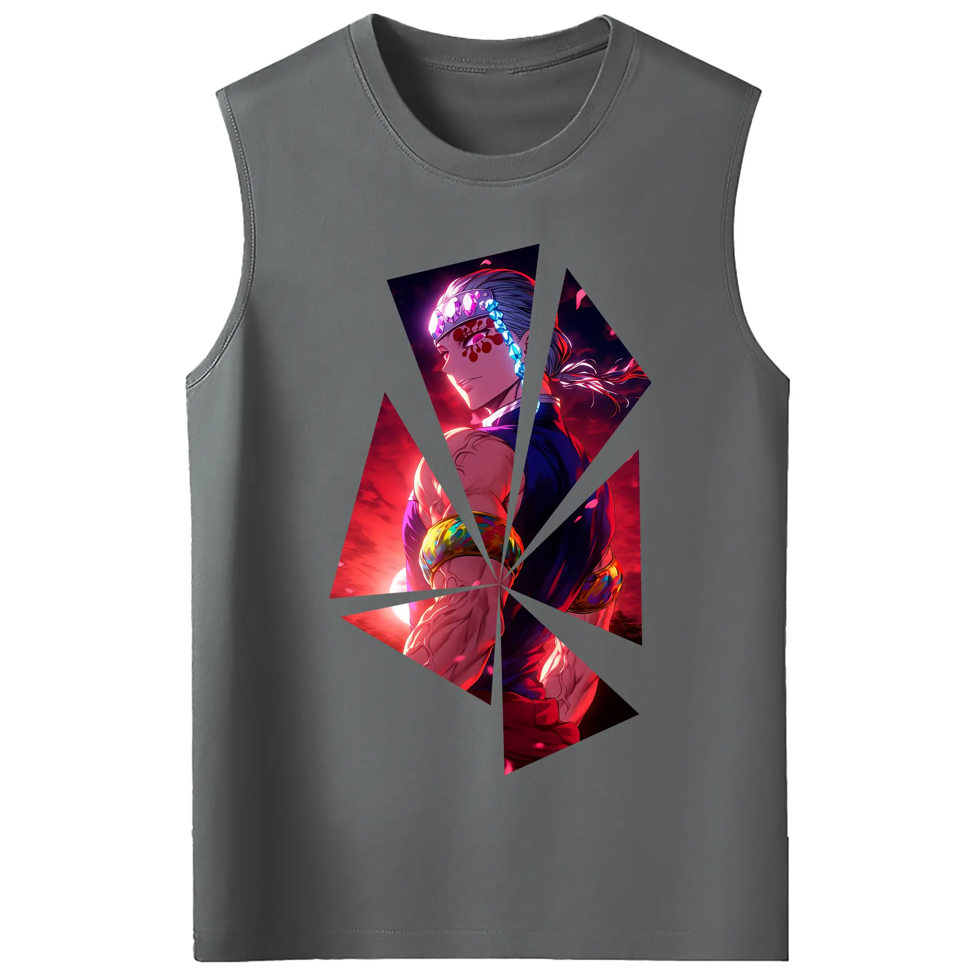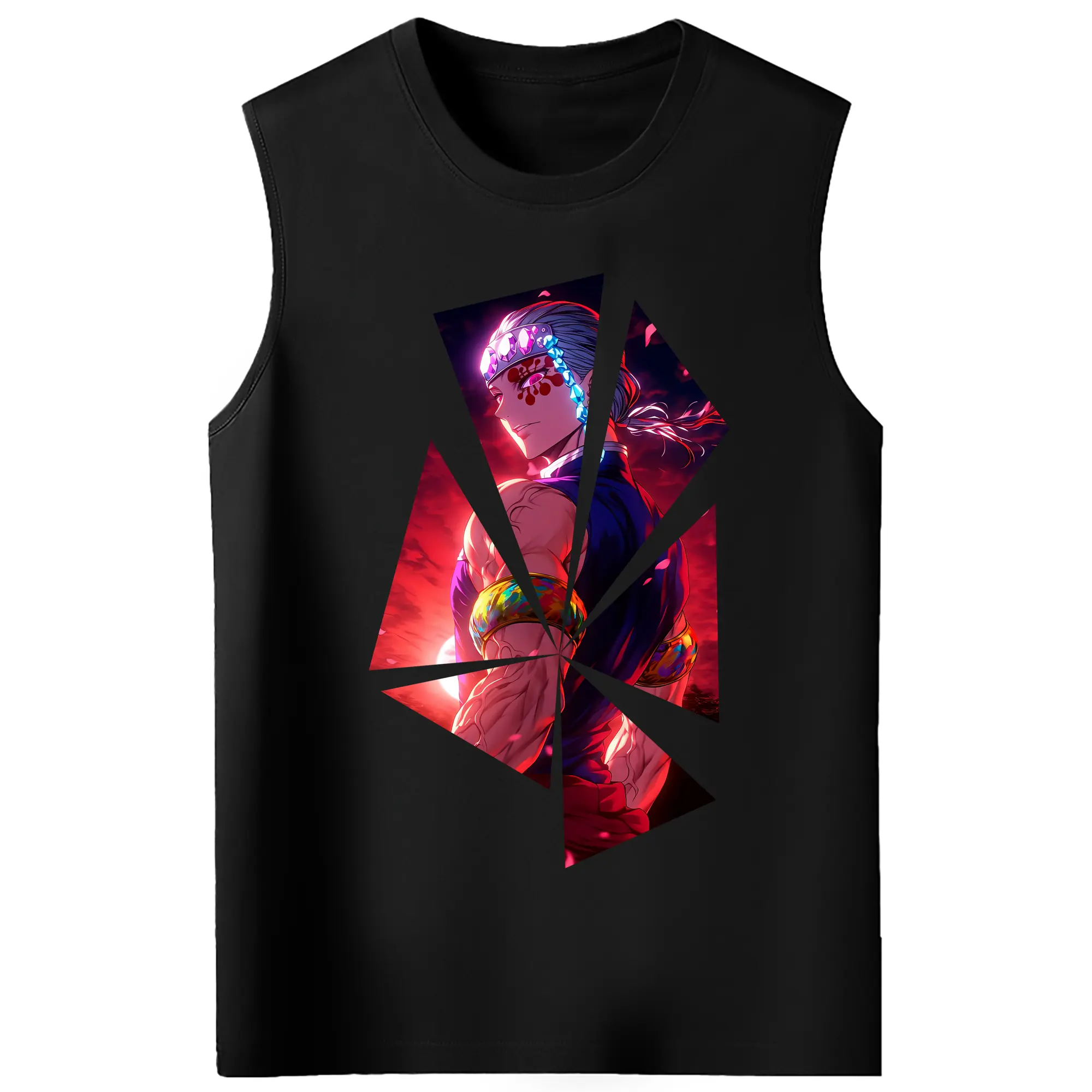 鬼滅の刃 グッズ,宇髄 天元 - コットン100% タンクトップ ・ フロントプリント ・ タイトフィット ・ 快適 通気性 ・ スポーツ カジュアル 散歩用
