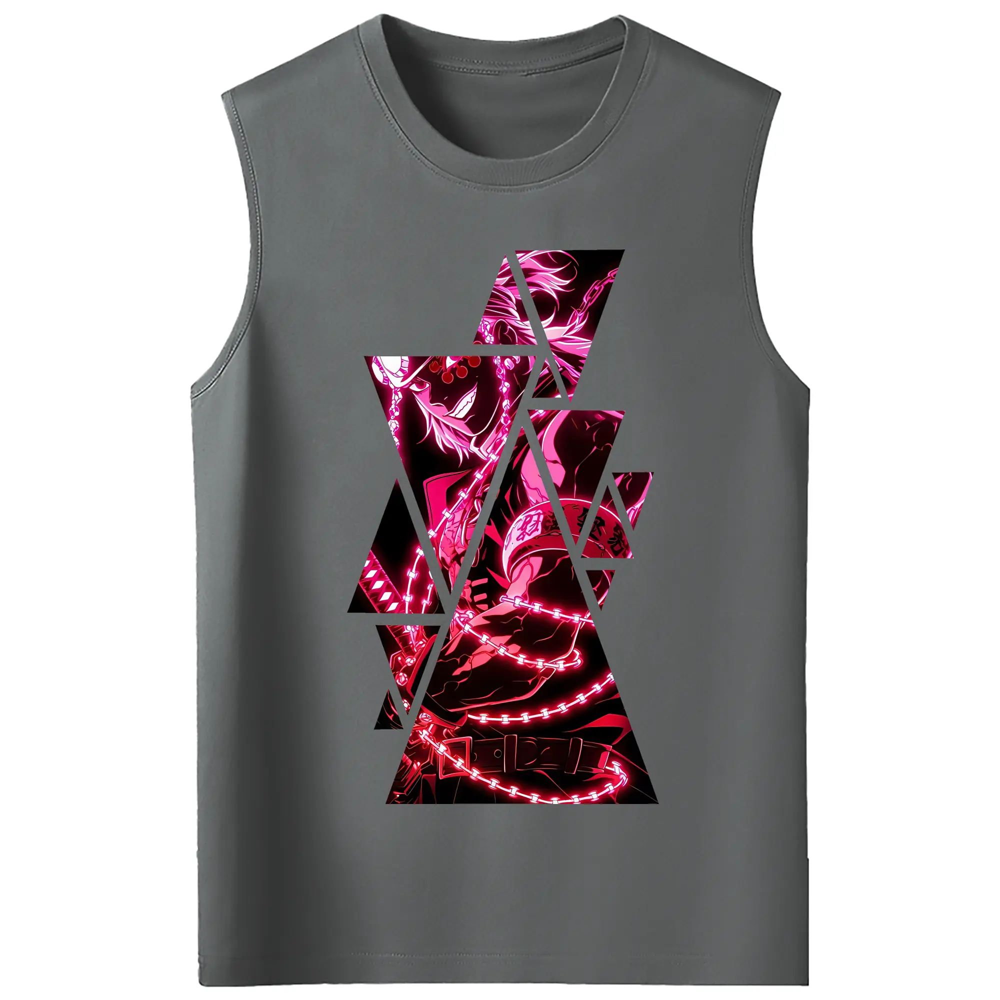 鬼滅の刃 グッズ,宇髄 天元 - コットン100% タンクトップ ・ フロントプリント ・ タイトフィット ・ 快適 通気性 ・ スポーツ カジュアル 散歩用