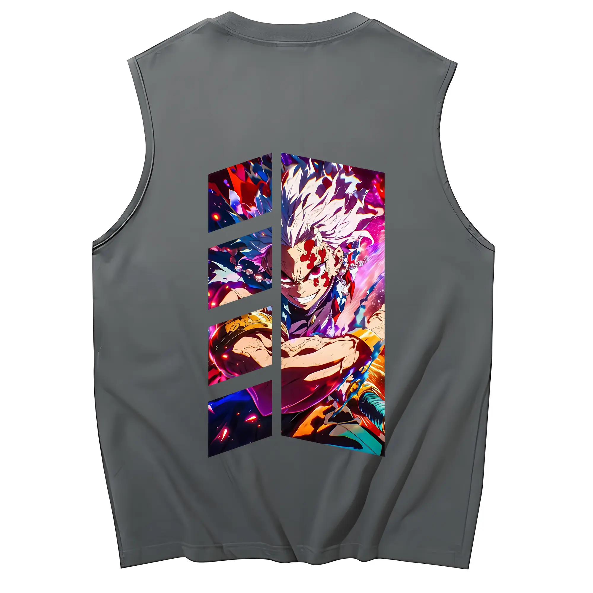 鬼滅の刃 グッズ,宇髄 天元 - コットン100% タンクトップ ・ 背面プリント ・ タイトシルエット ・ 快適 通気性 ・ スポーツ カジュアル 散歩用