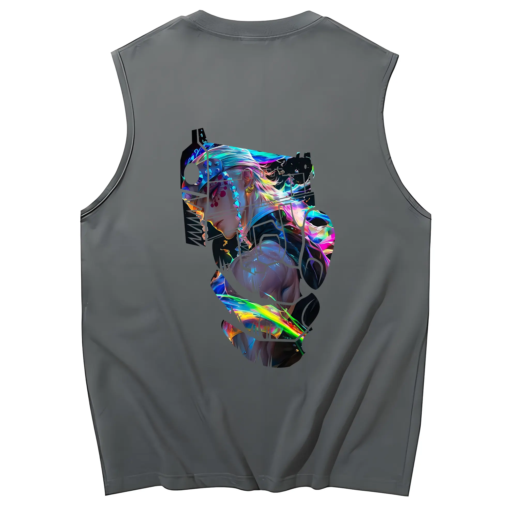 鬼滅の刃 グッズ,宇髄 天元 - コットン100% タンクトップ ・ 背面プリント ・ タイトシルエット ・ 快適 通気性 ・ スポーツ カジュアル 散歩用