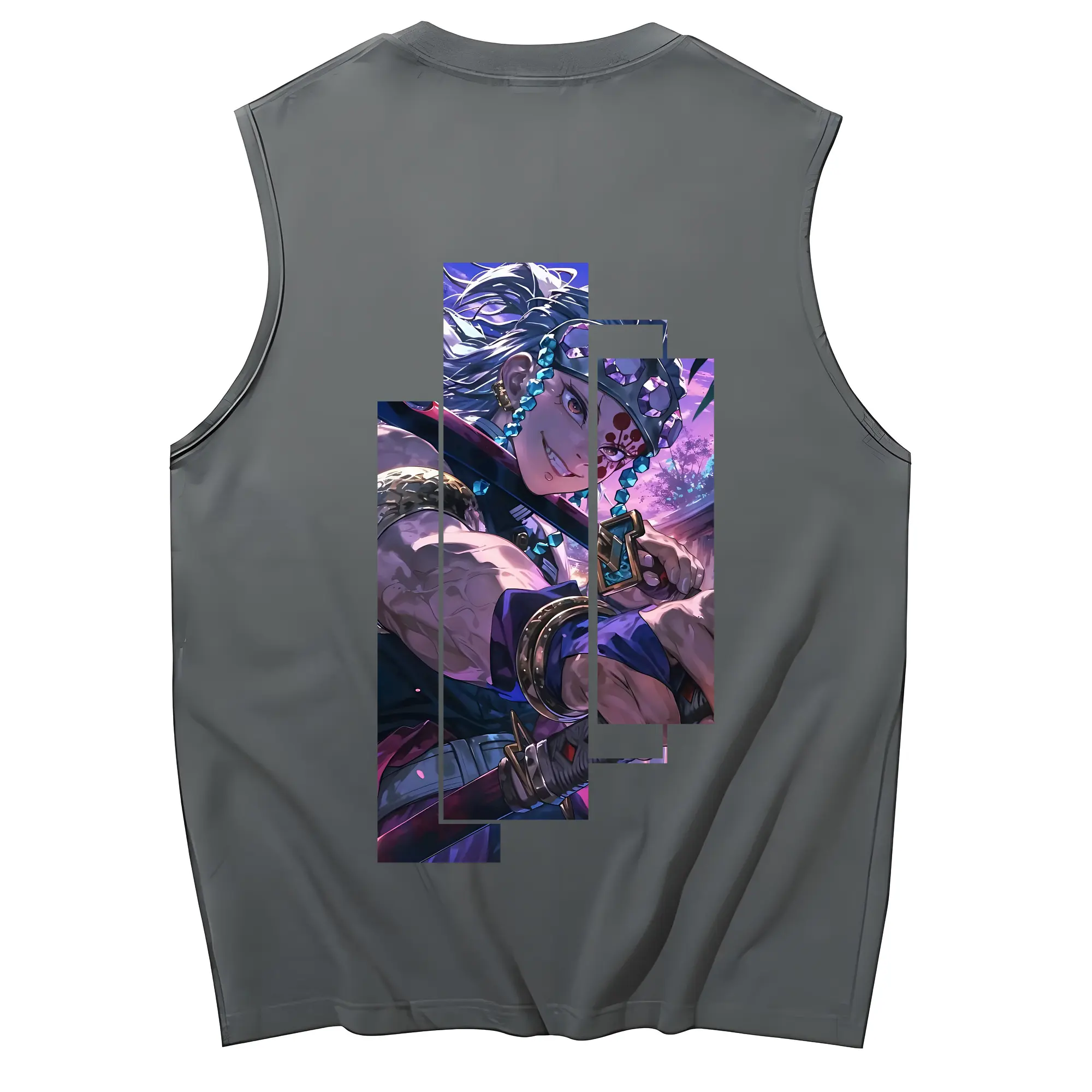 鬼滅の刃 グッズ,宇髄 天元 - コットン100% タンクトップ ・ 背面プリント ・ タイトシルエット ・ 快適 通気性 ・ スポーツ カジュアル 散歩用