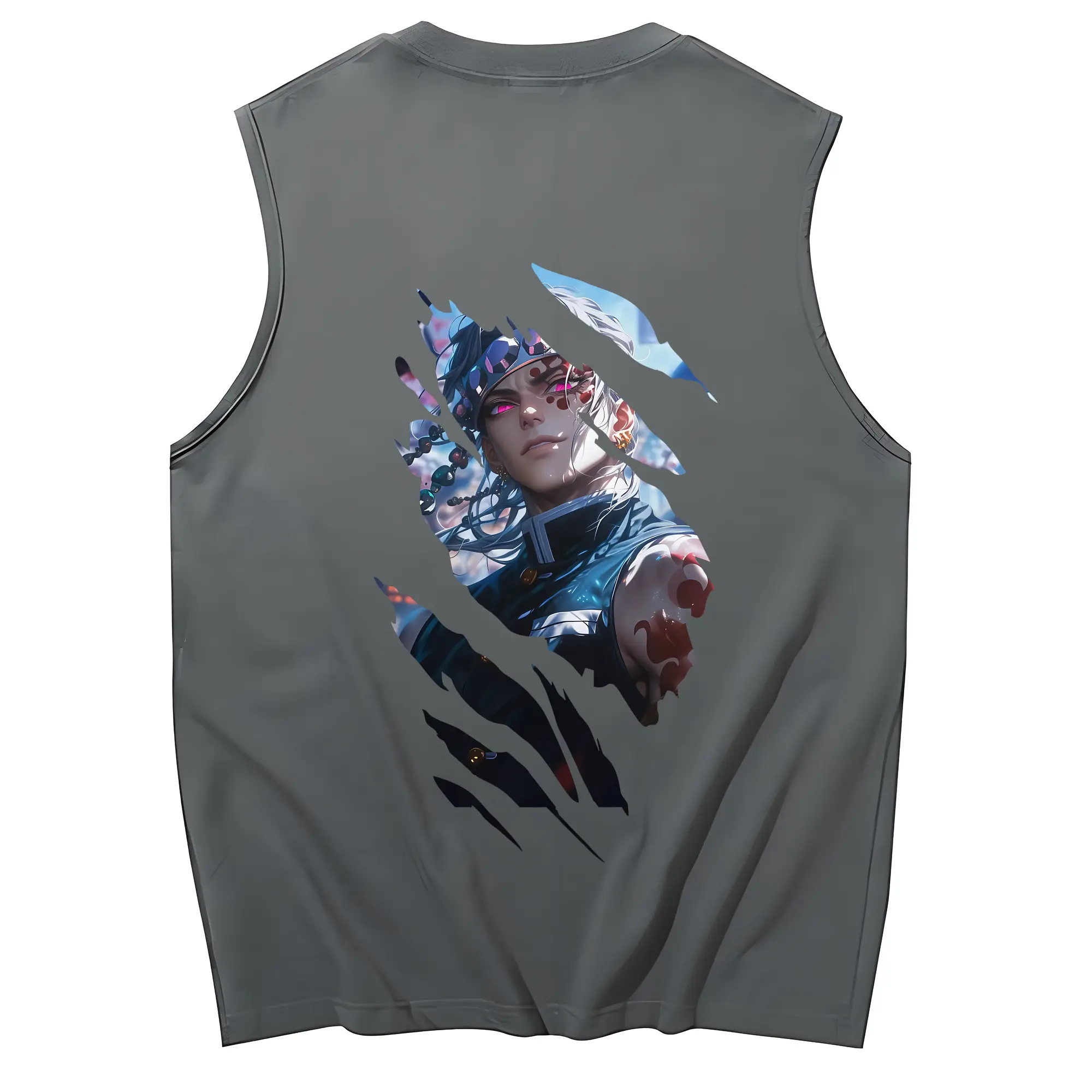 鬼滅の刃 グッズ,宇髄 天元 - コットン100% タンクトップ ・ 背面プリント ・ タイトシルエット ・ 快適 通気性 ・ スポーツ カジュアル 散歩用
