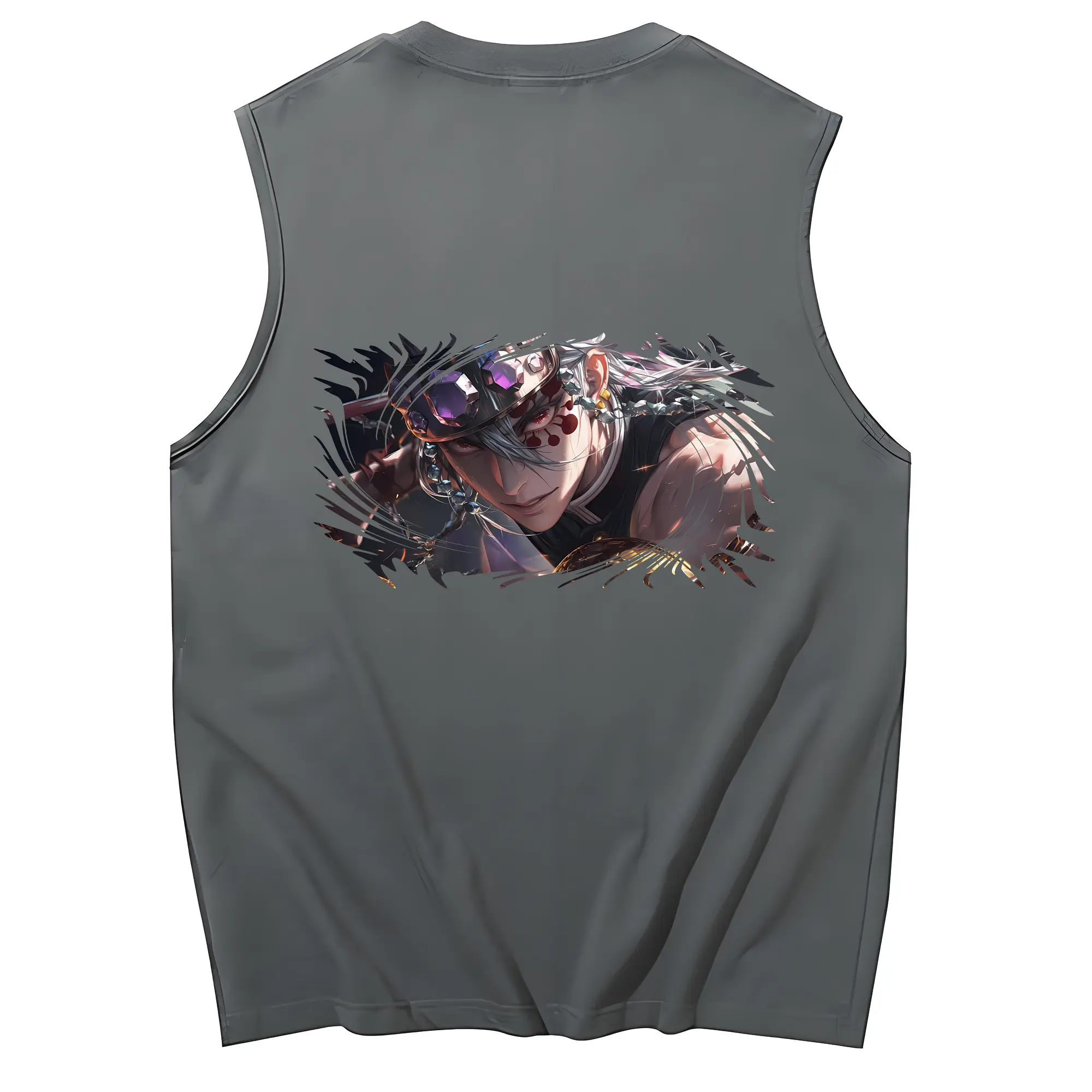 鬼滅の刃 グッズ,宇髄 天元 - コットン100% タンクトップ ・ 背面プリント ・ タイトシルエット ・ 快適 通気性 ・ スポーツ カジュアル 散歩用