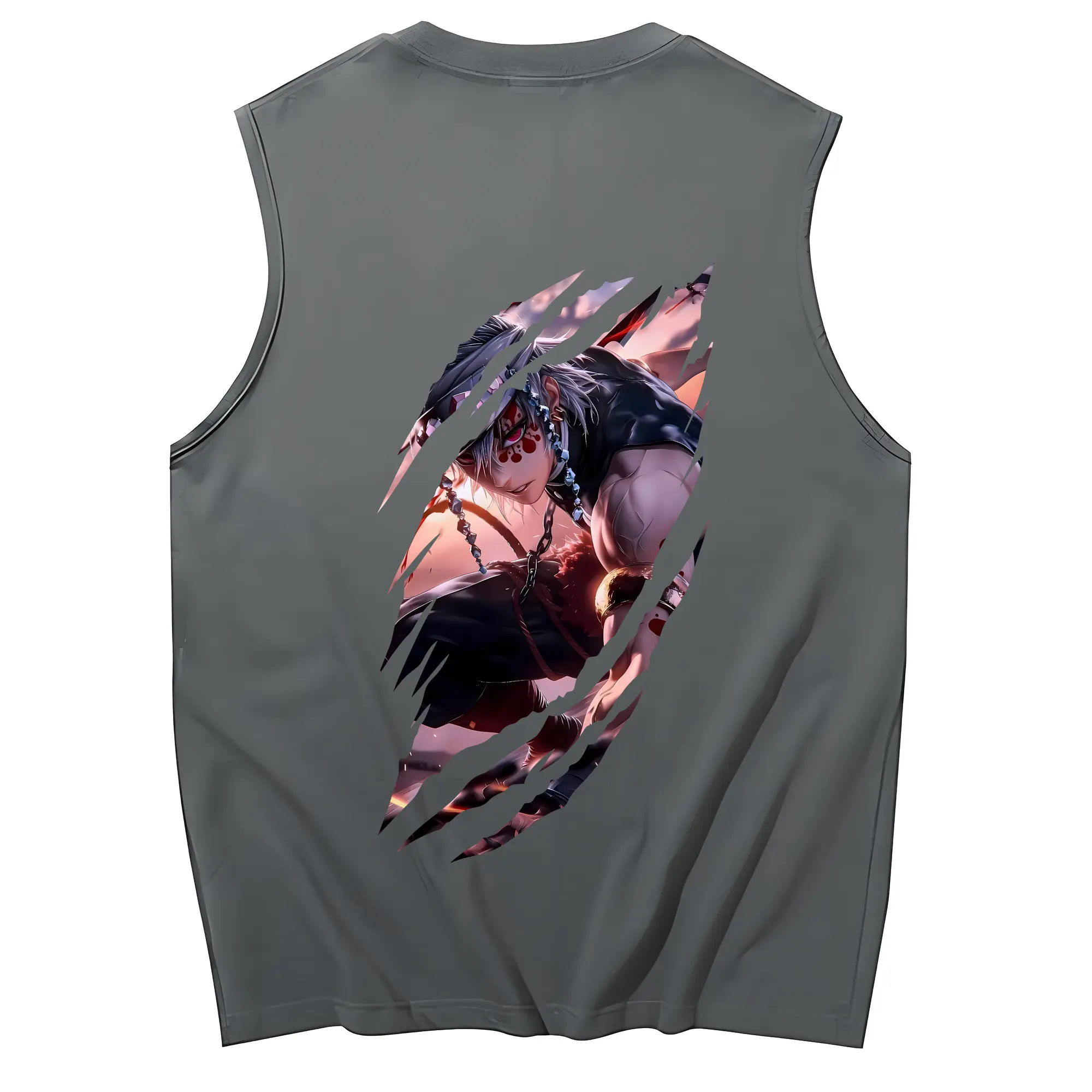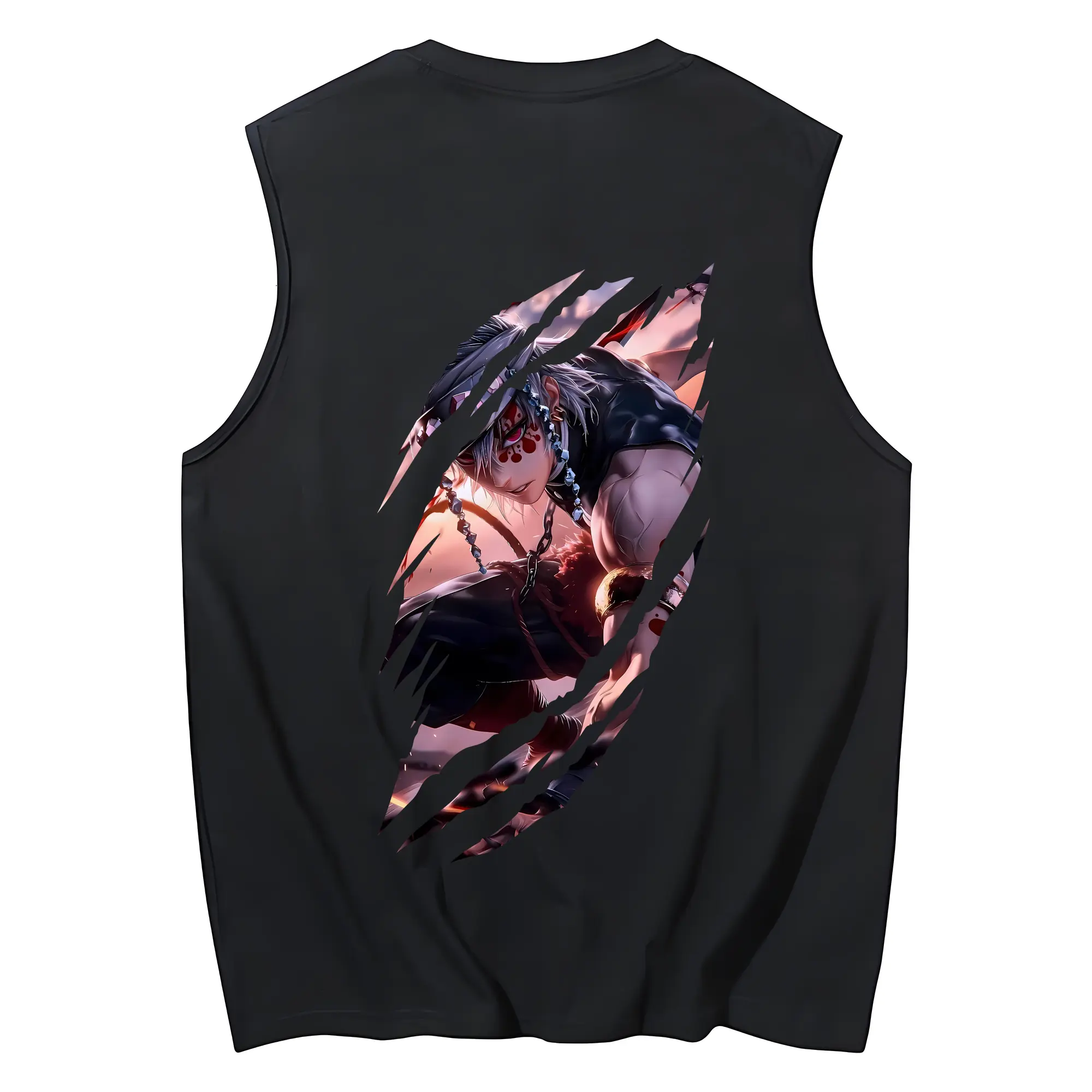 鬼滅の刃 グッズ,宇髄 天元 - コットン100% タンクトップ ・ 背面プリント ・ タイトシルエット ・ 快適 通気性 ・ スポーツ カジュアル 散歩用