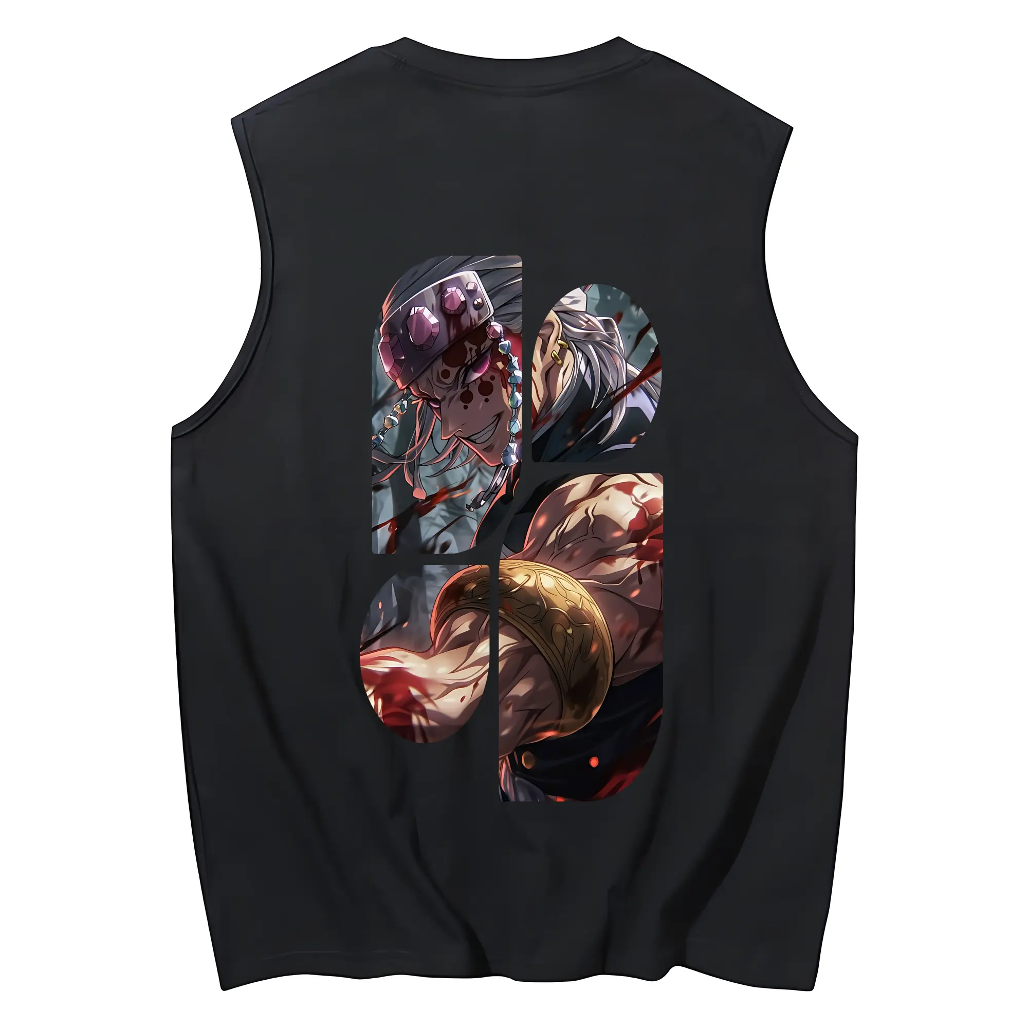 鬼滅の刃 グッズ,宇髄 天元 - コットン100% タンクトップ ・ 背面プリント ・ タイトシルエット ・ 快適 通気性 ・ スポーツ カジュアル 散歩用