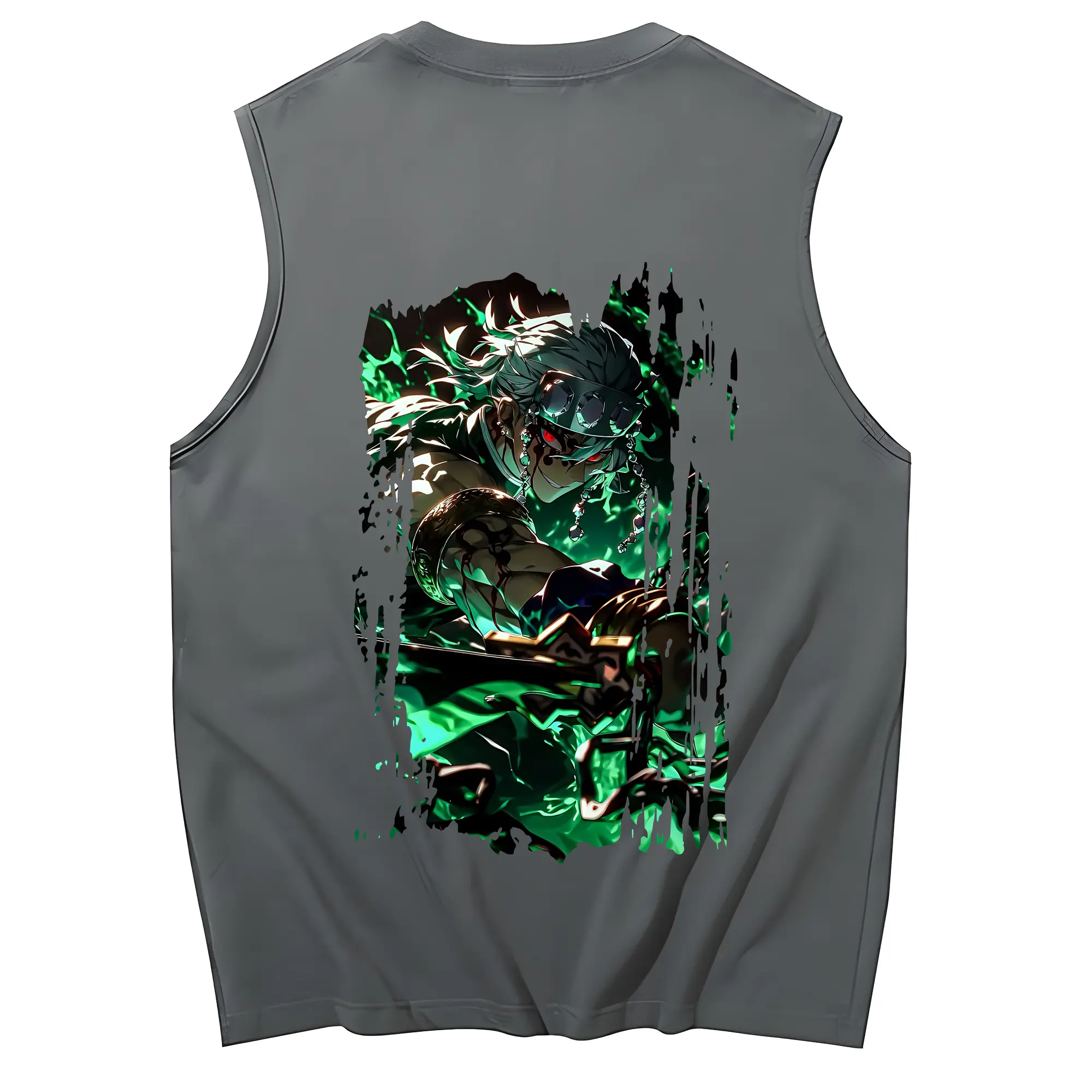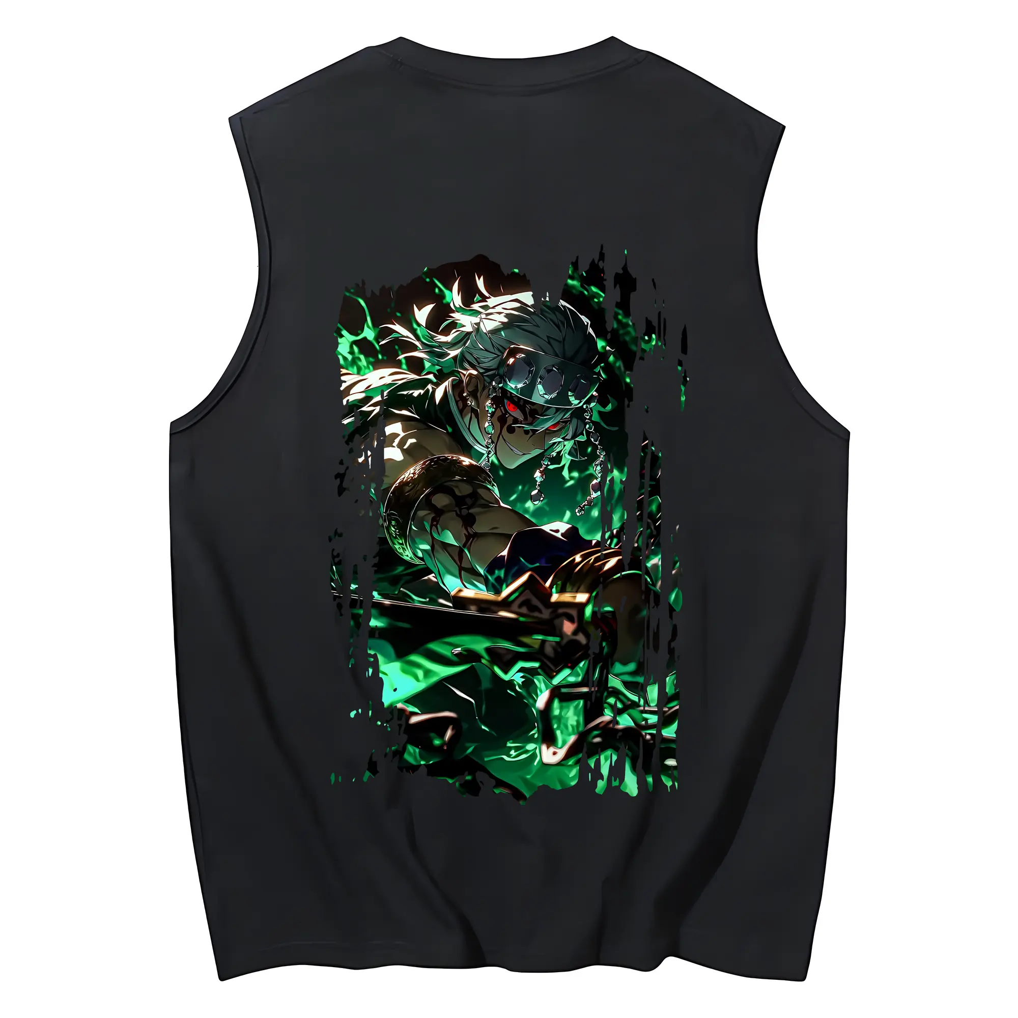 鬼滅の刃 グッズ,宇髄 天元 - コットン100% タンクトップ ・ 背面プリント ・ タイトシルエット ・ 快適 通気性 ・ スポーツ カジュアル 散歩用