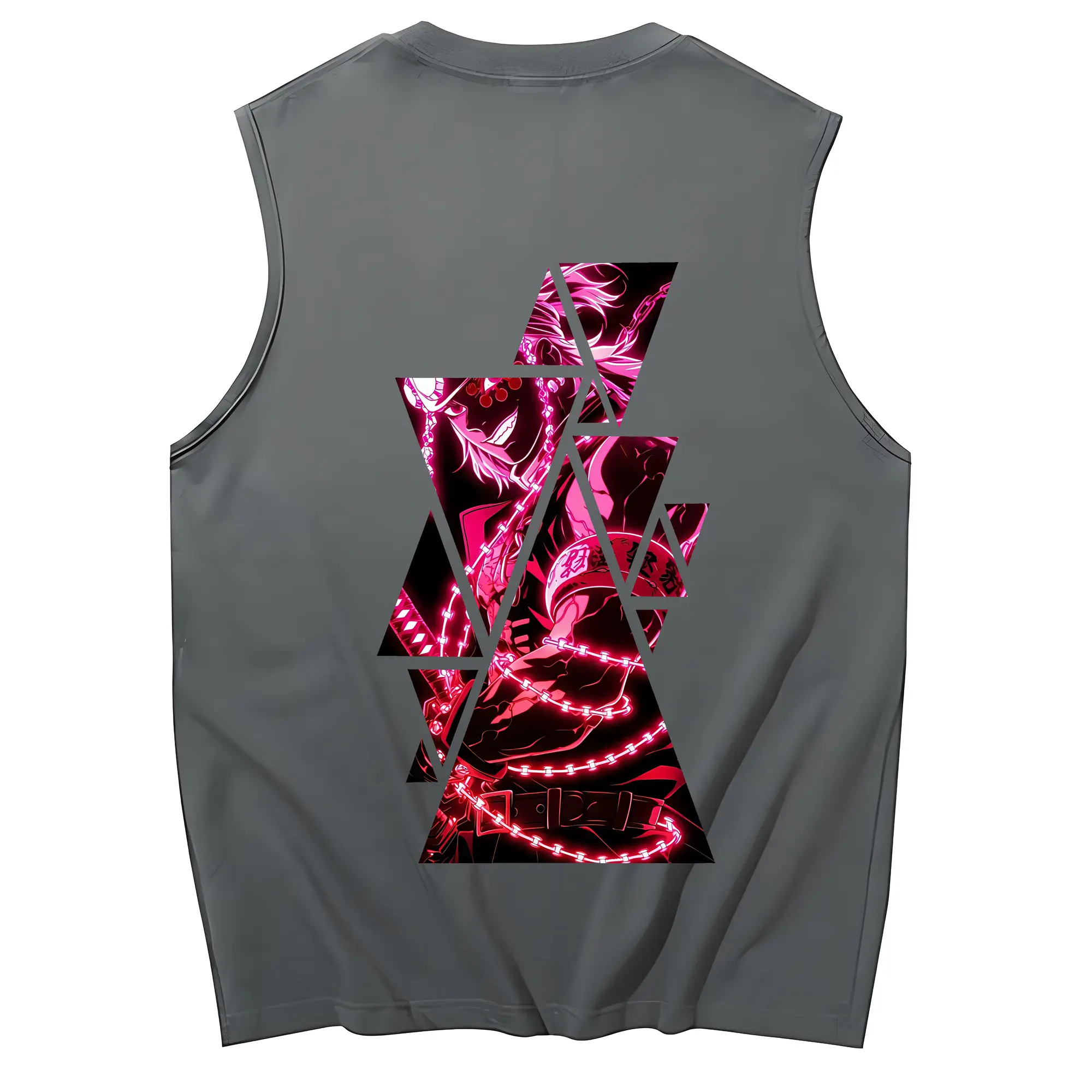 鬼滅の刃 グッズ,宇髄 天元 - コットン100% タンクトップ ・ 背面プリント ・ タイトシルエット ・ 快適 通気性 ・ スポーツ カジュアル 散歩用