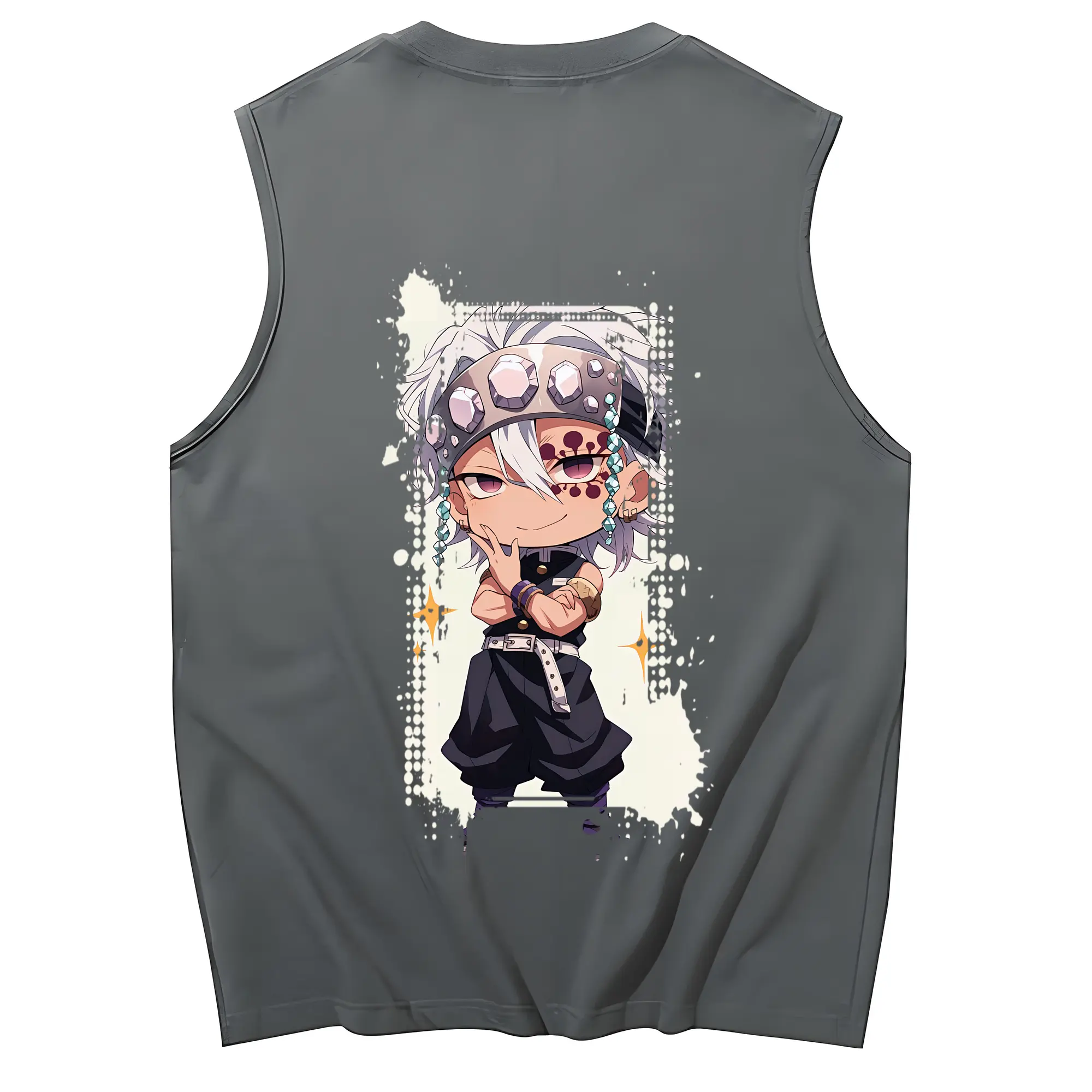鬼滅の刃 グッズ,宇髄 天元 - コットン100% タンクトップ ・ 背面プリント ・ タイトシルエット ・ 快適 通気性 ・ スポーツ カジュアル 散歩用