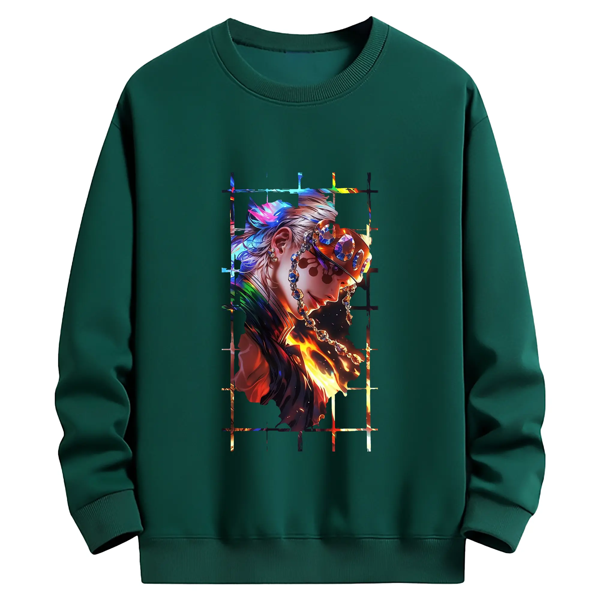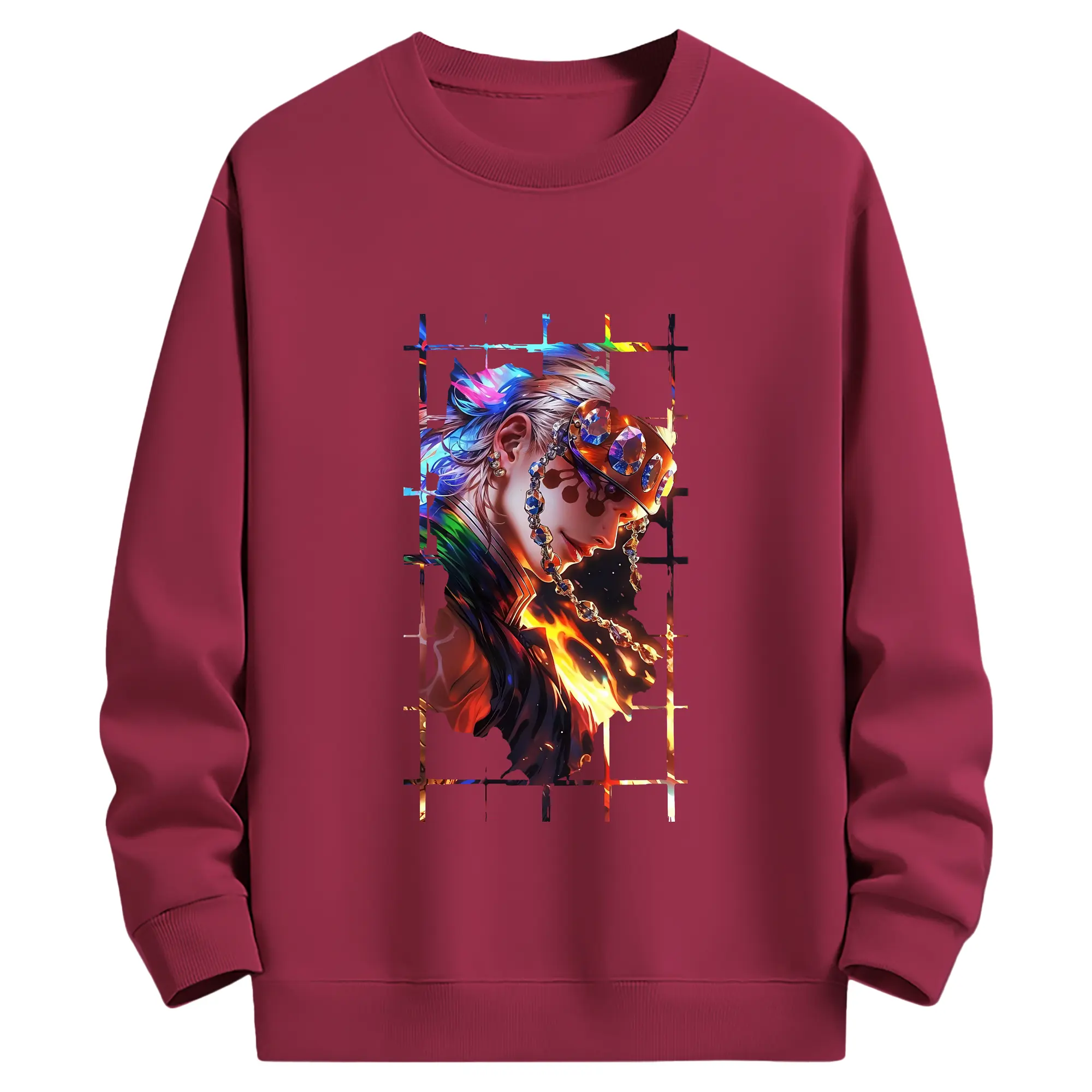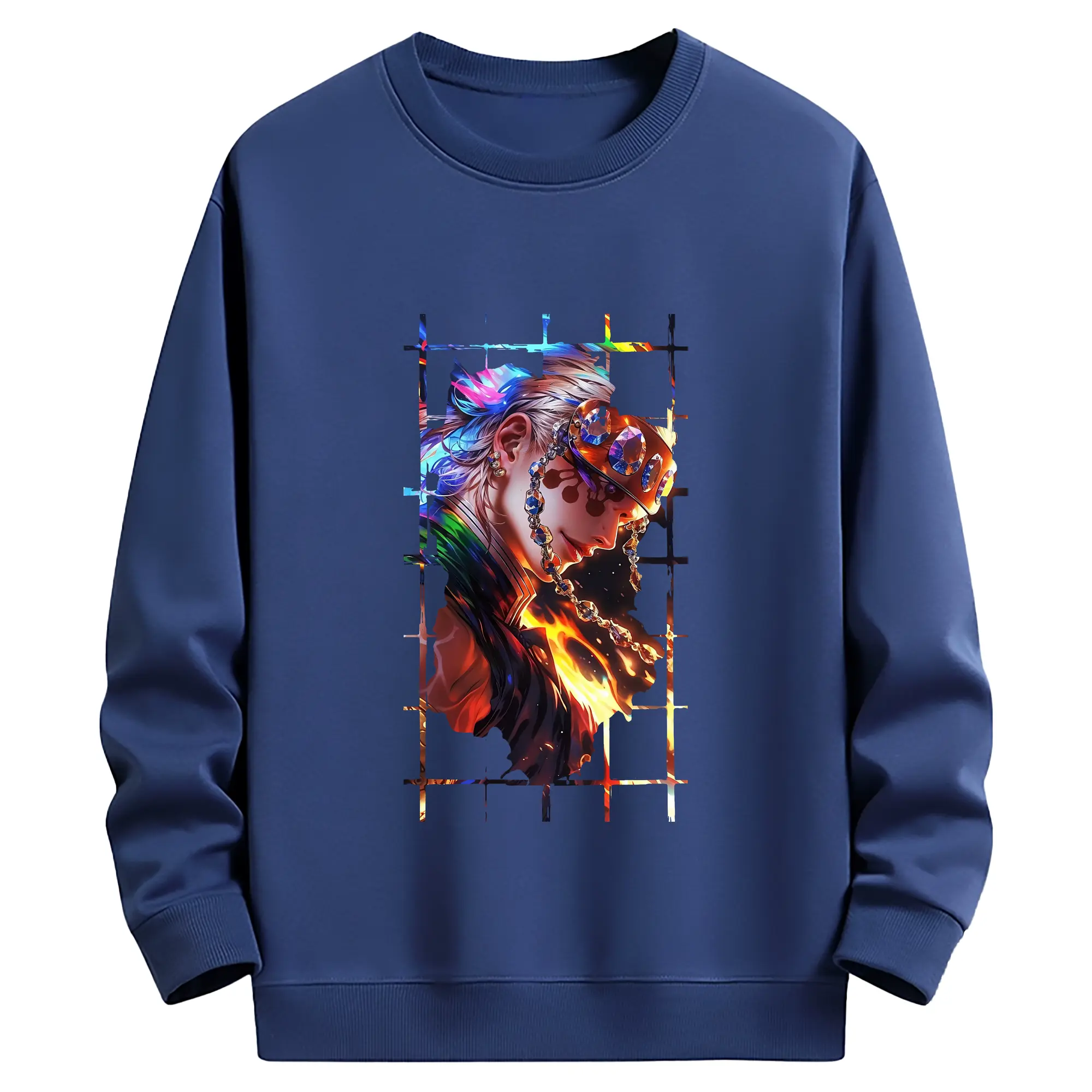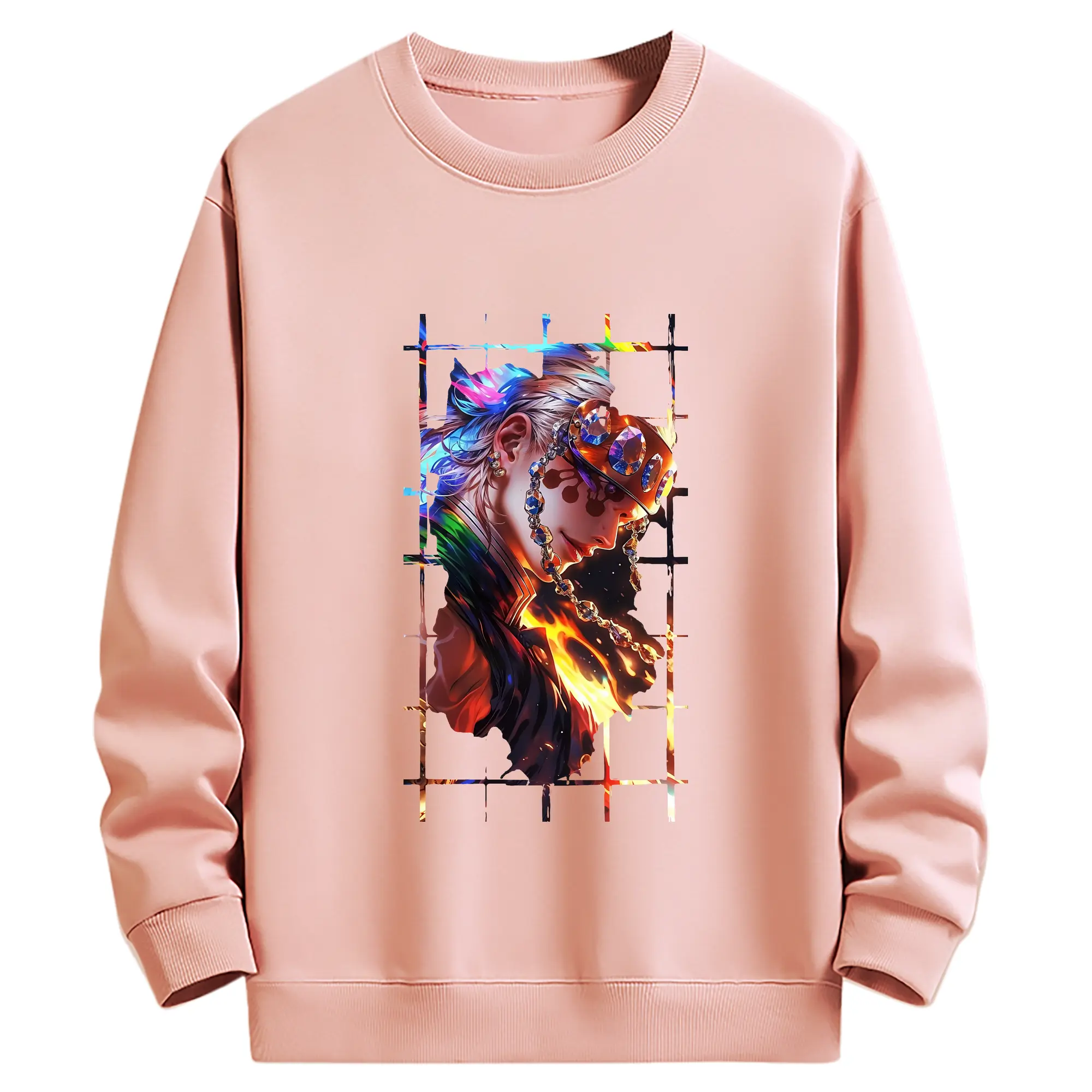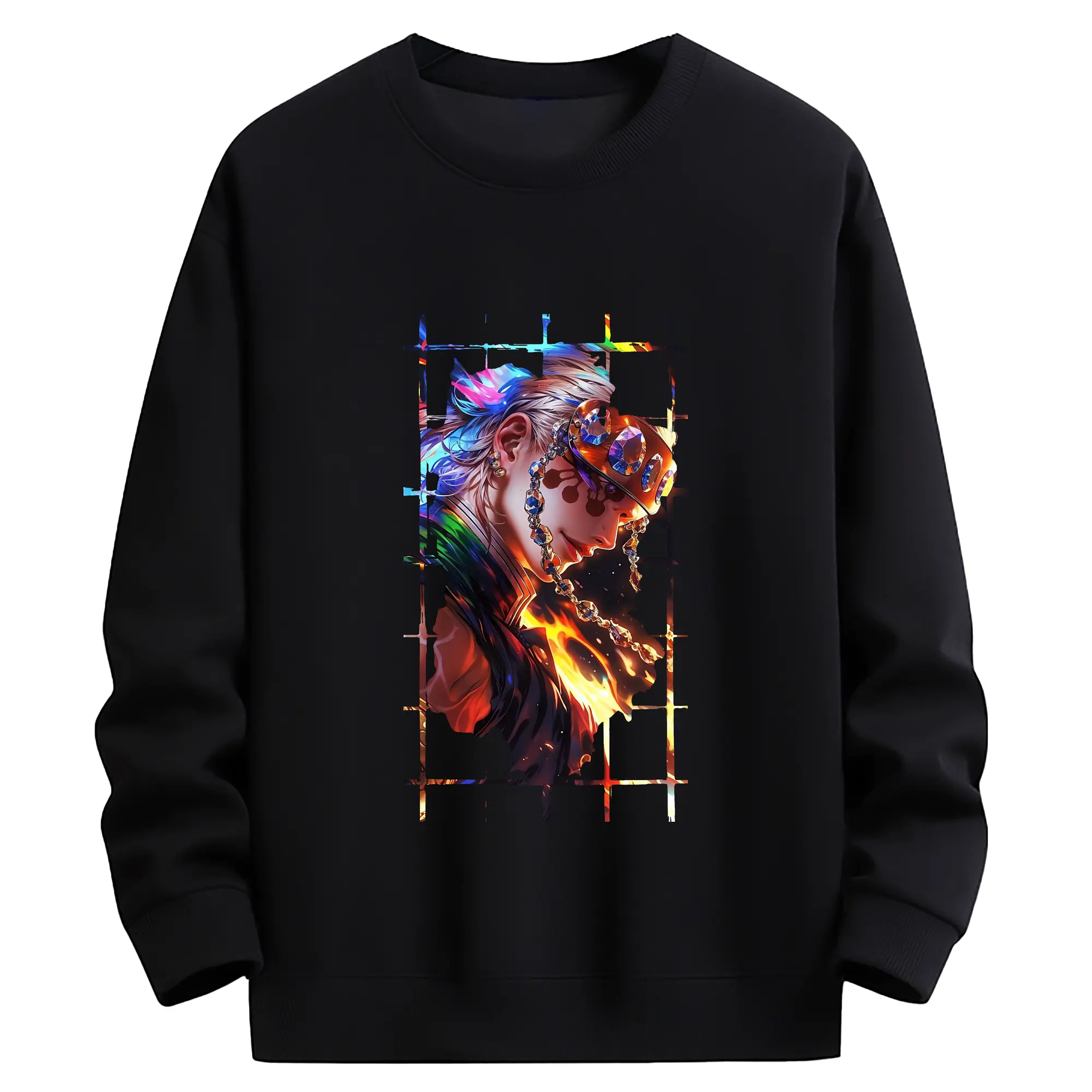 鬼滅の刃 グッズ,宇髄 天元 - 薄手 クルーネック スウェット 裏毛260g · ポリエステル 春秋向け カジュアル 男女兼用 · トレーナー デイリー スポーツ 散歩に最適