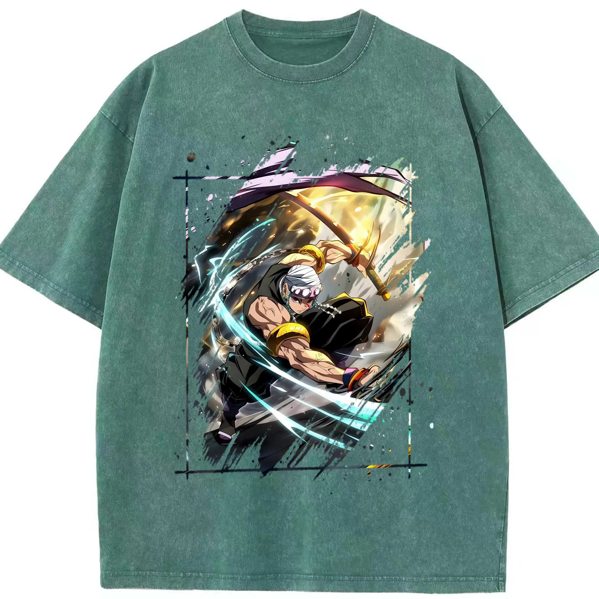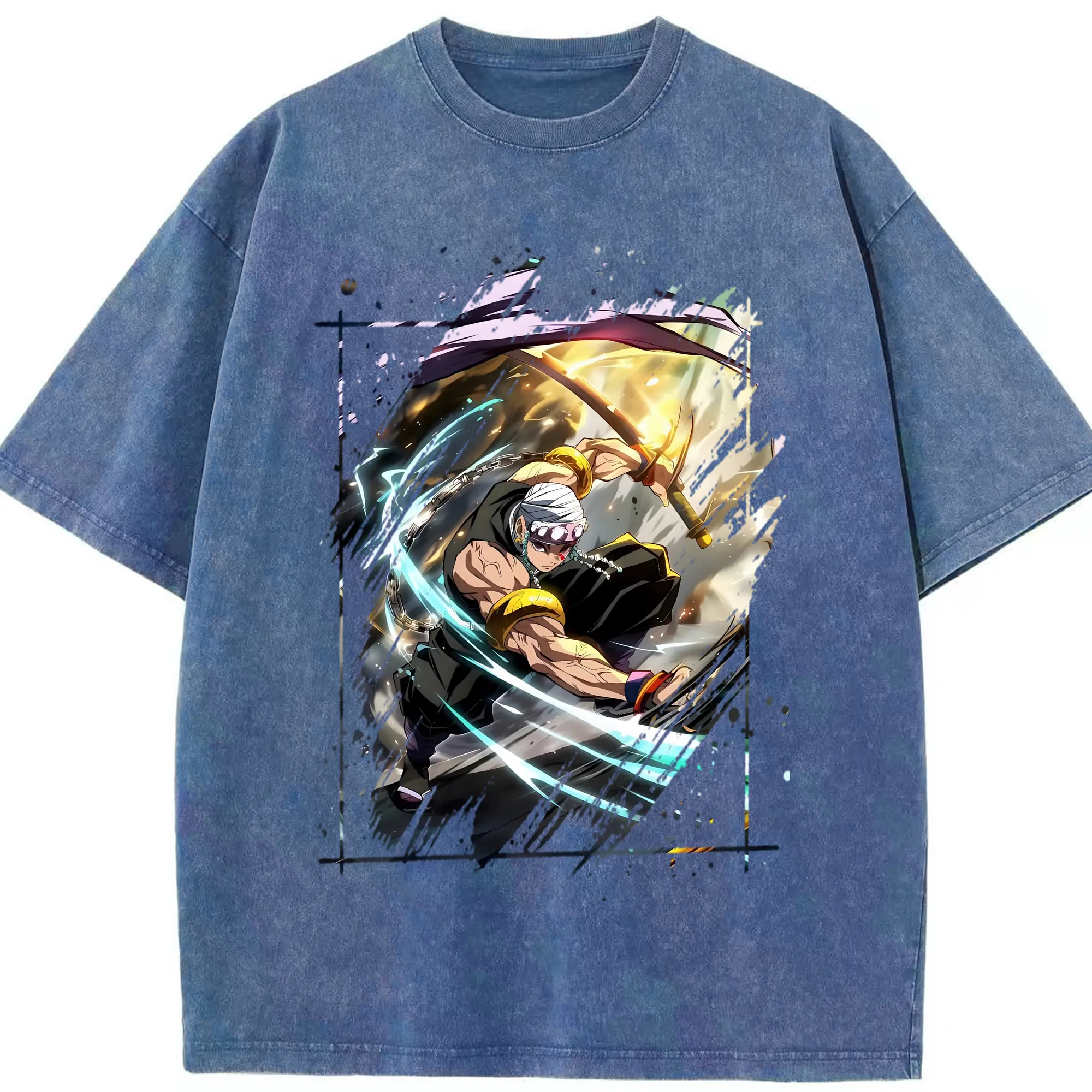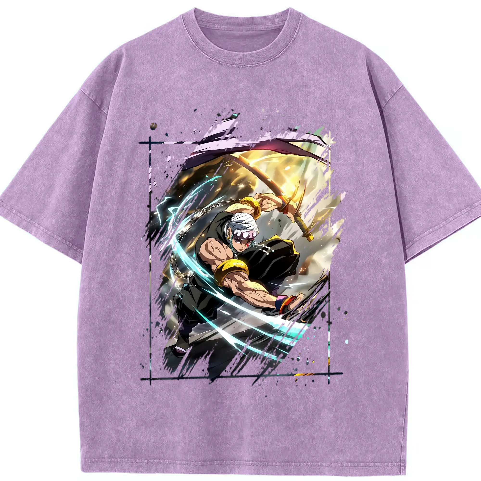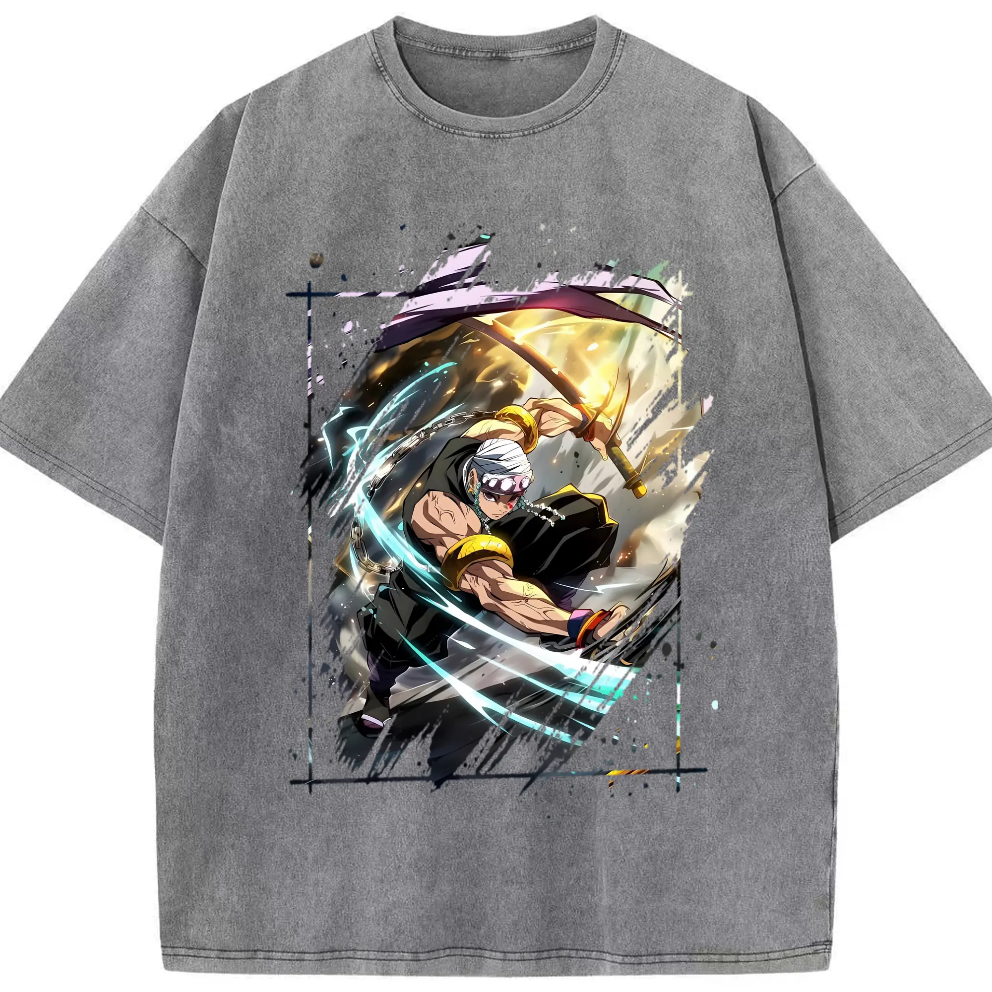 鬼滅の刃 グッズ,宇髄 天元 - 綿100% 半袖Tシャツ ・ フロントプリント ・ 快適 通気性 ・ 日常使い 散歩 スポーツ用