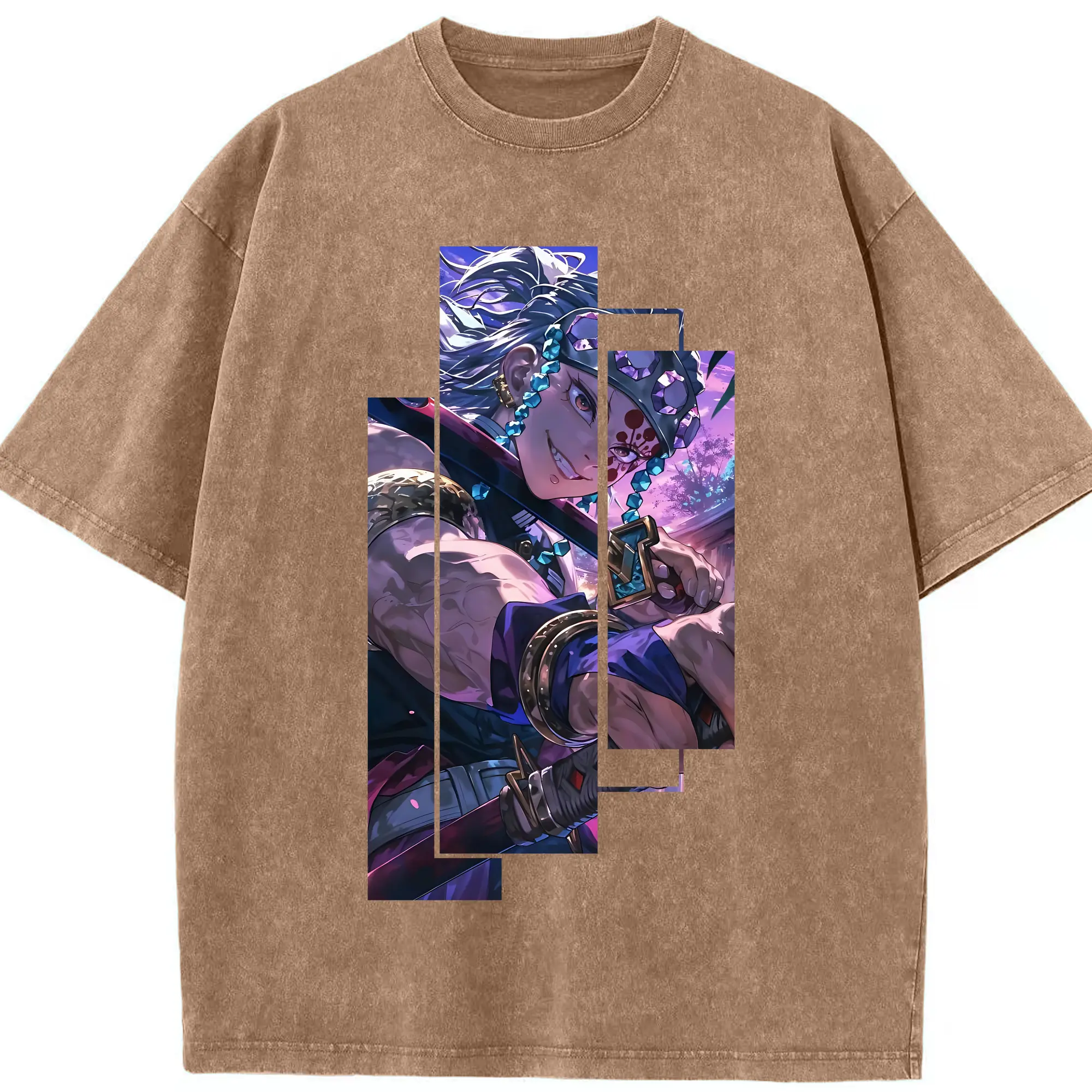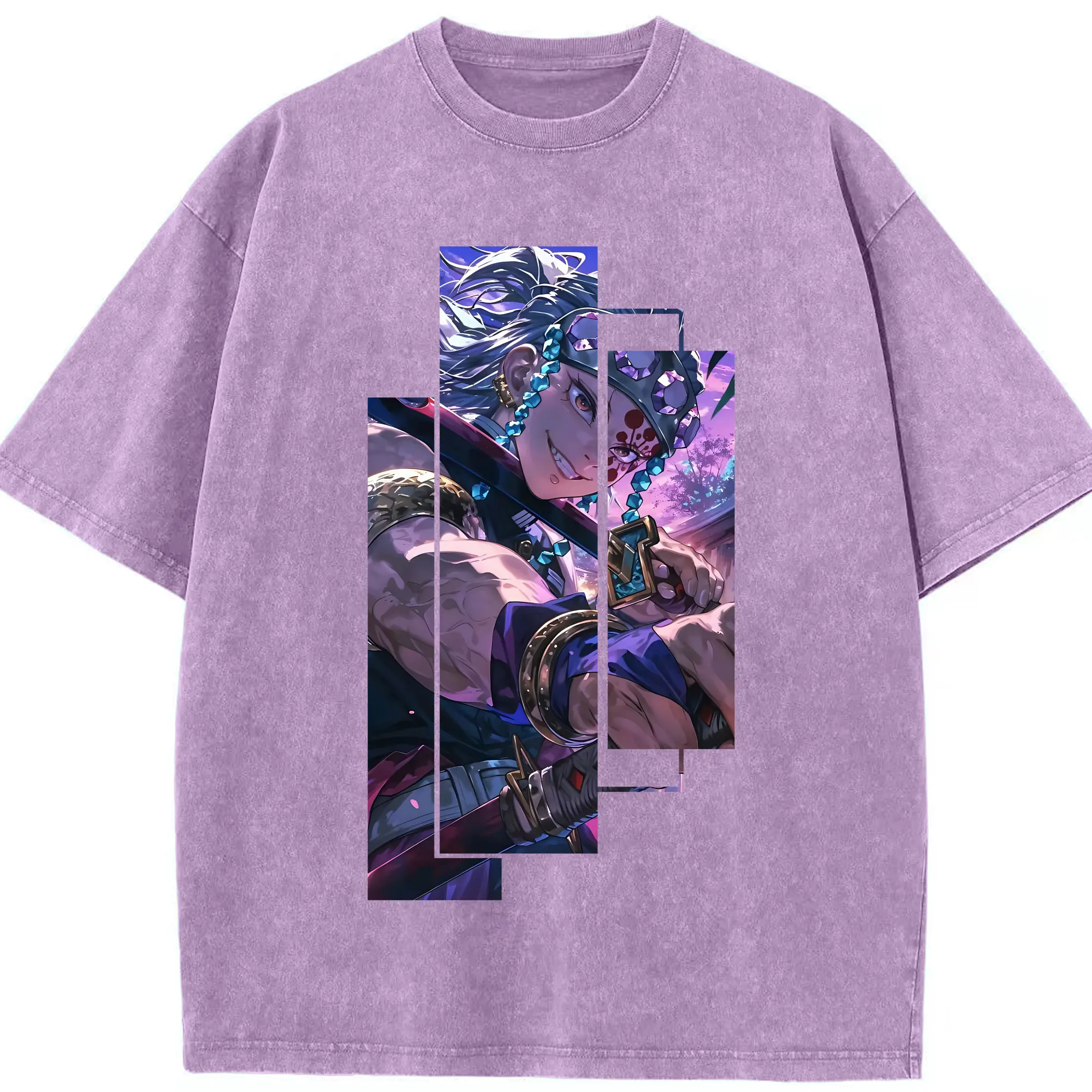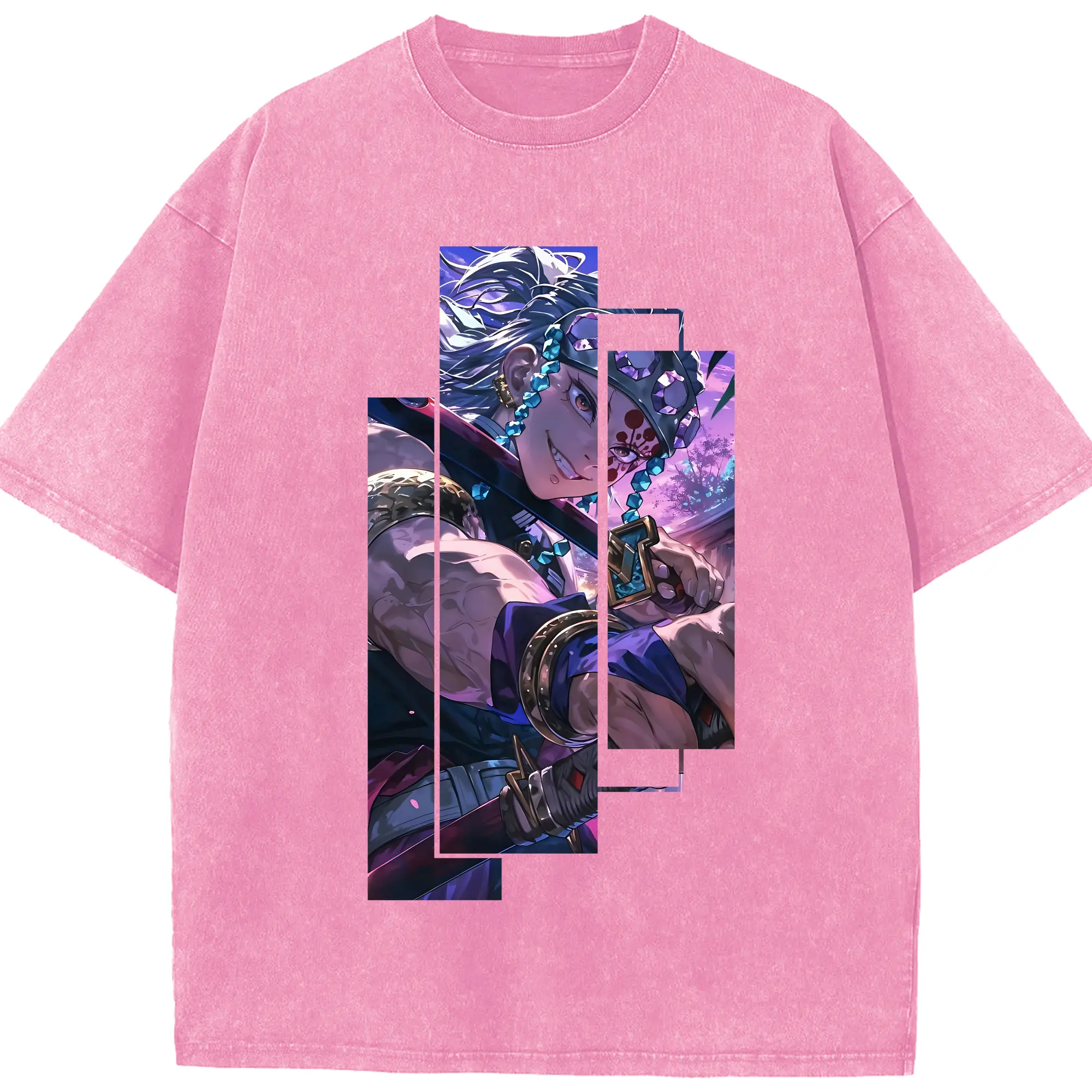 鬼滅の刃 グッズ,宇髄 天元 - 綿100% 半袖Tシャツ ・ フロントプリント ・ 快適 通気性 ・ 日常使い 散歩 スポーツ用