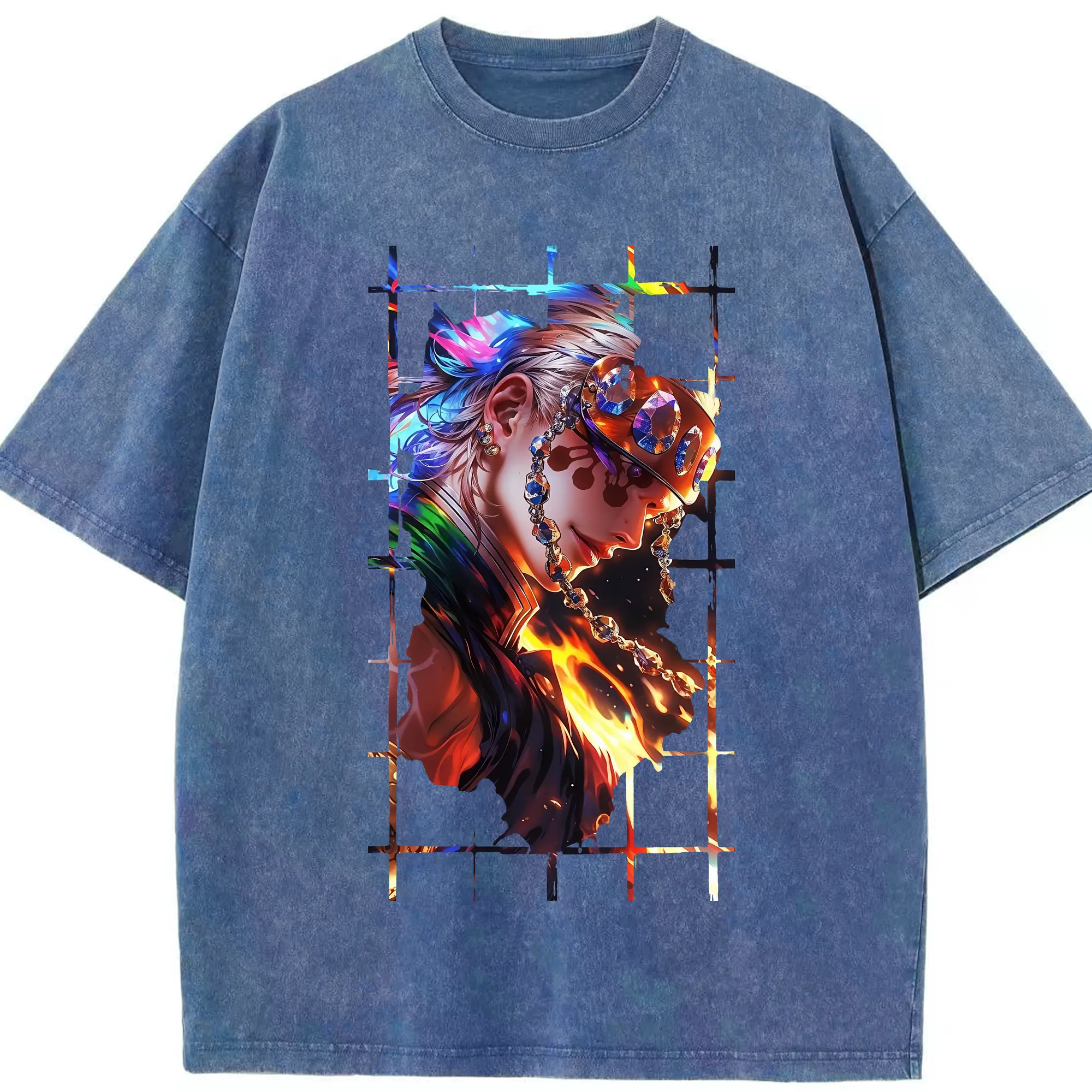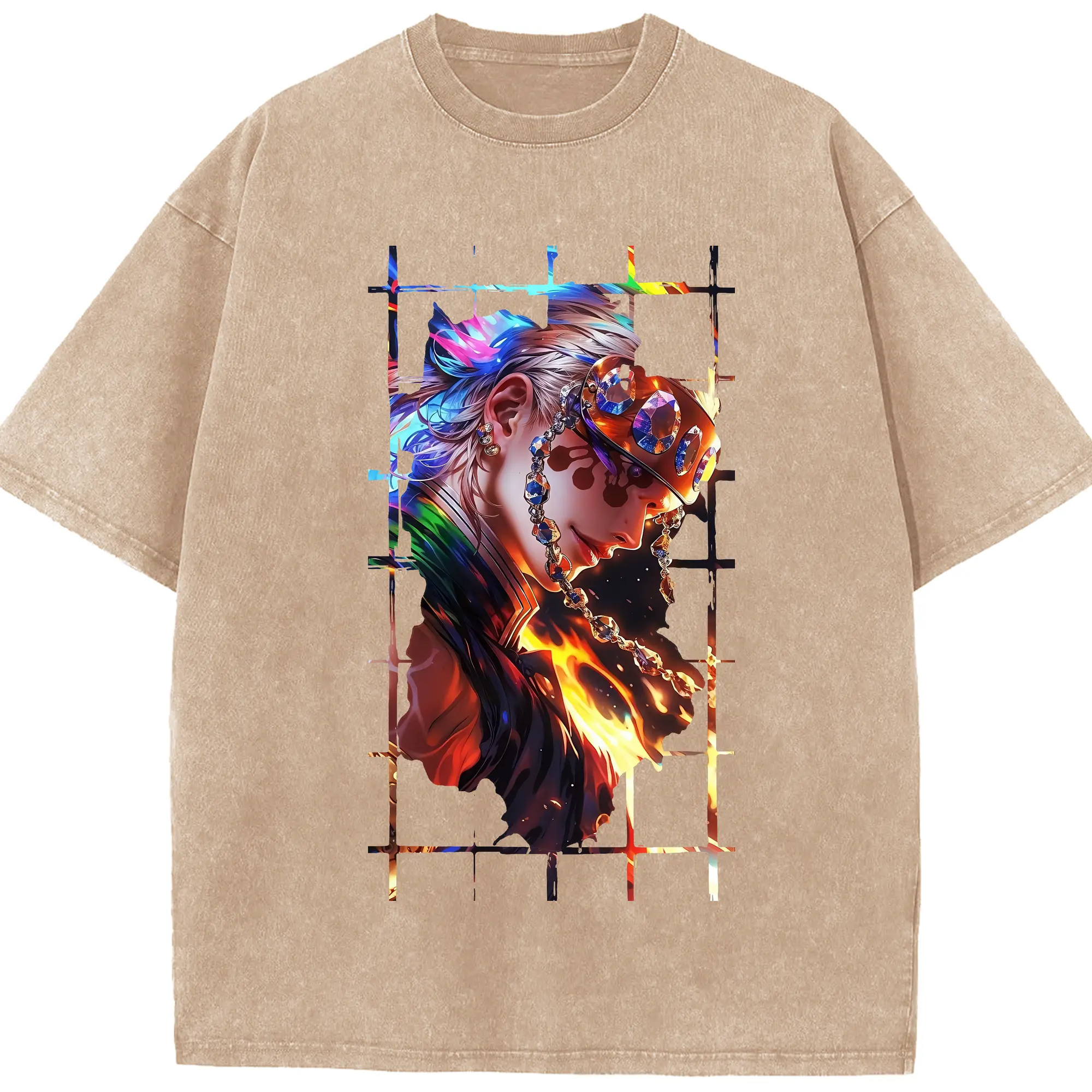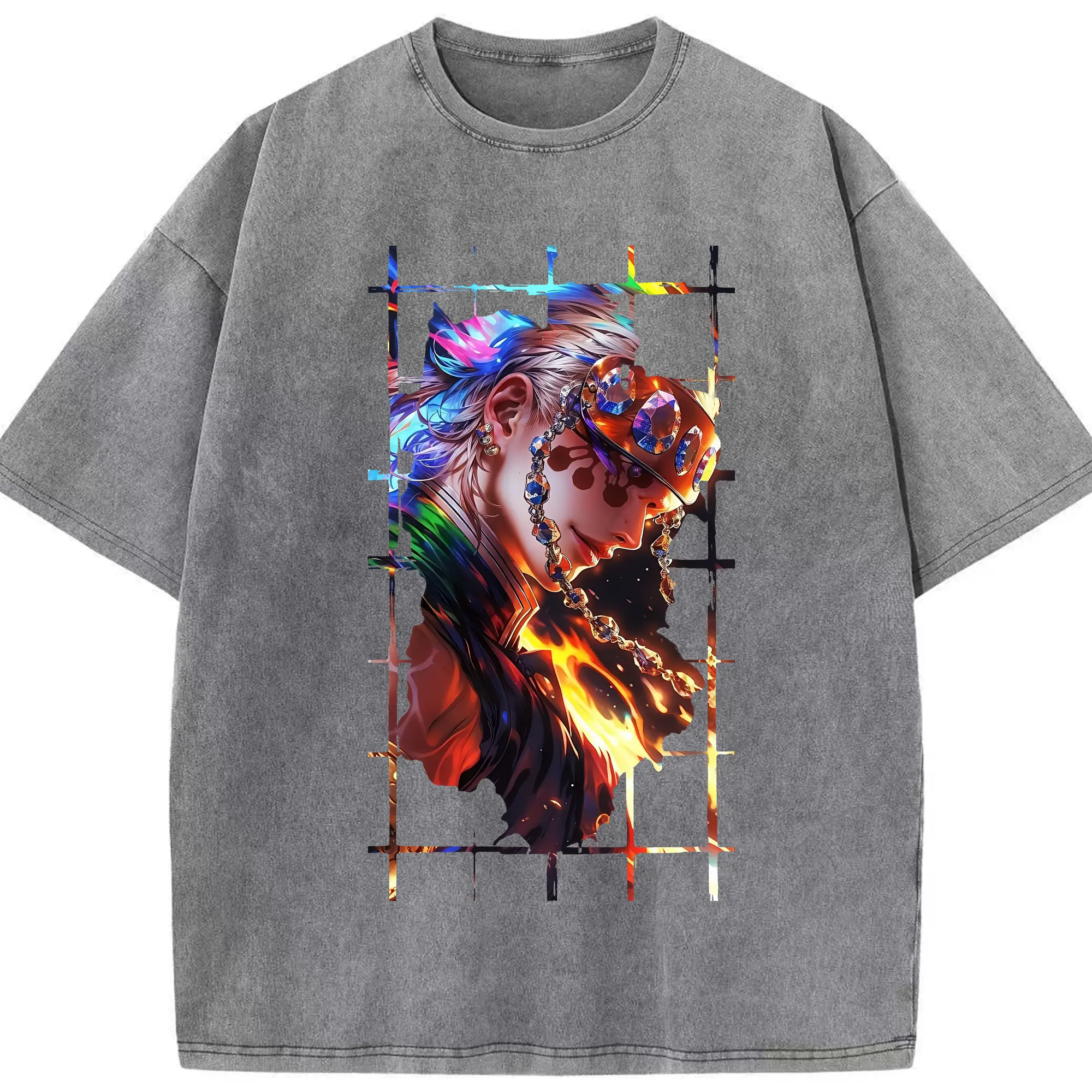 鬼滅の刃 グッズ,宇髄 天元 - 綿100% 半袖Tシャツ ・ フロントプリント ・ 快適 通気性 ・ 日常使い 散歩 スポーツ用