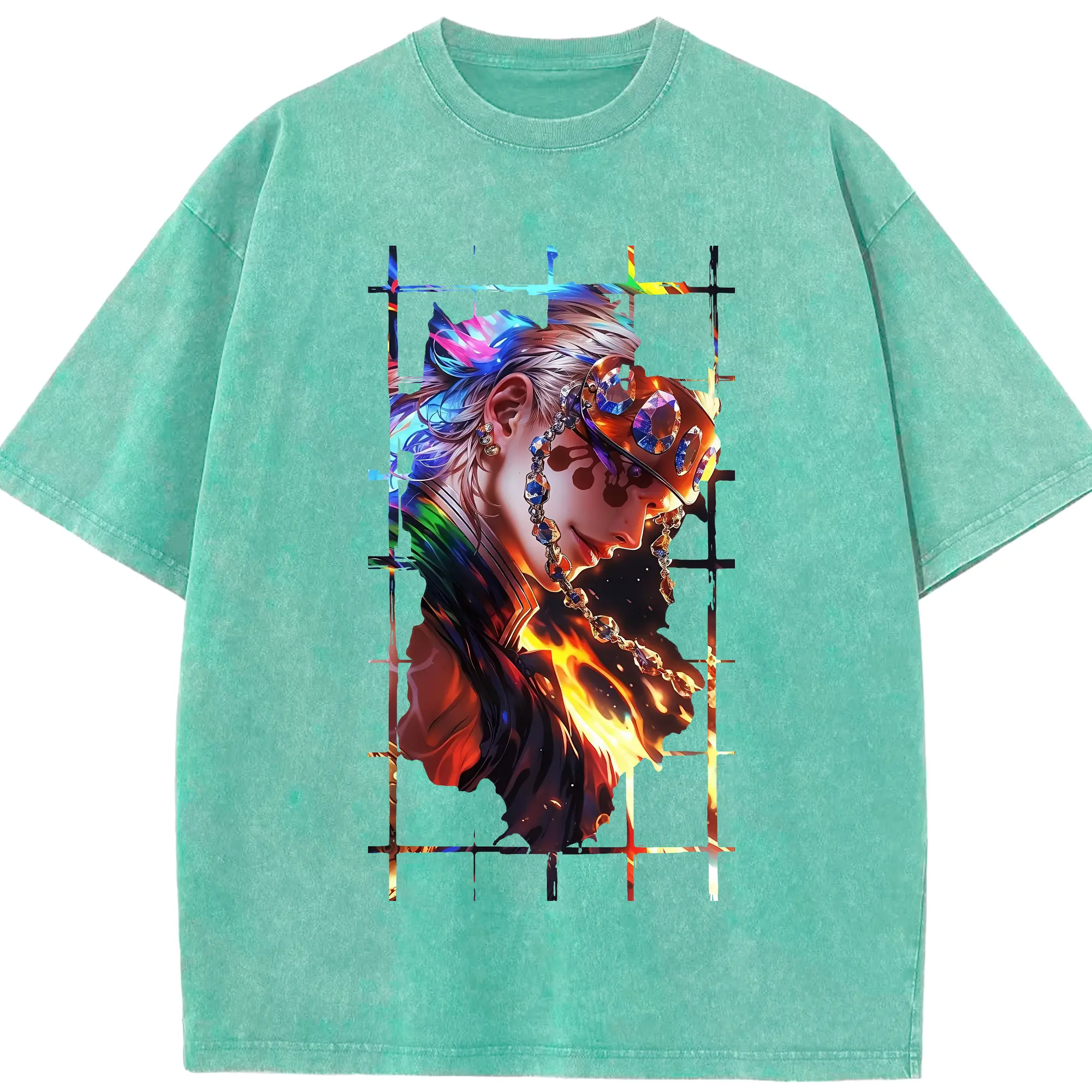 鬼滅の刃 グッズ,伊黒 小芭内 - 綿100% ヴィンテージ風 半袖Tシャツ ・ フロントプリント ・ 柔らか肌触り ・ 通気性 快適 ・ スポーツ カジュアル 外出用