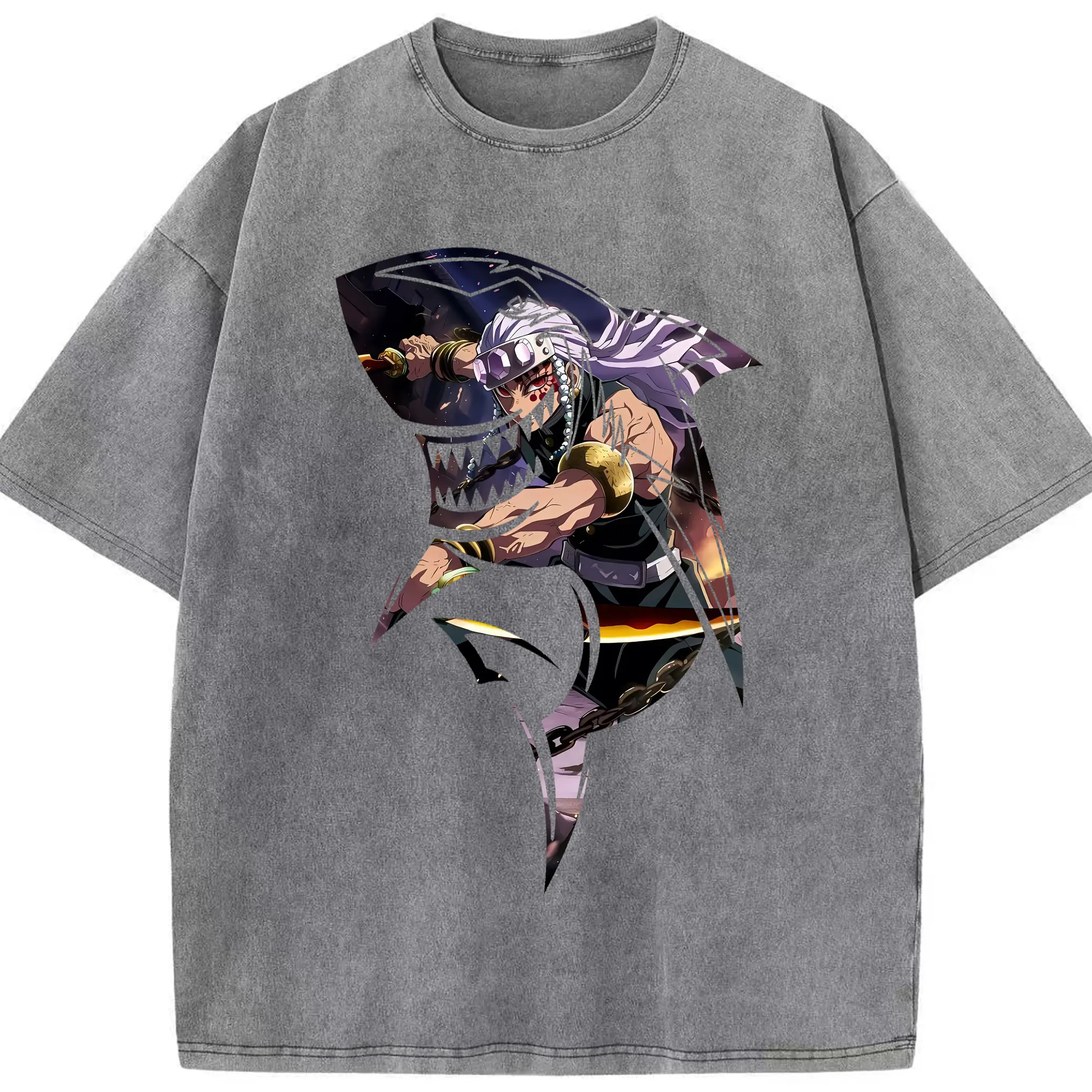 鬼滅の刃 グッズ,宇髄 天元 - 綿100% 半袖Tシャツ ・ フロントプリント ・ 快適 通気性 ・ 日常使い 散歩 スポーツ用