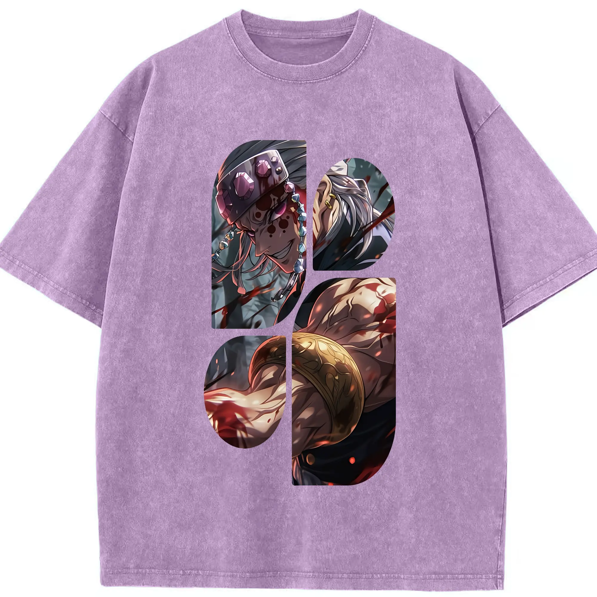 鬼滅の刃 グッズ,宇髄 天元 - 綿100% 半袖Tシャツ ・ フロントプリント ・ 快適 通気性 ・ 日常使い 散歩 スポーツ用