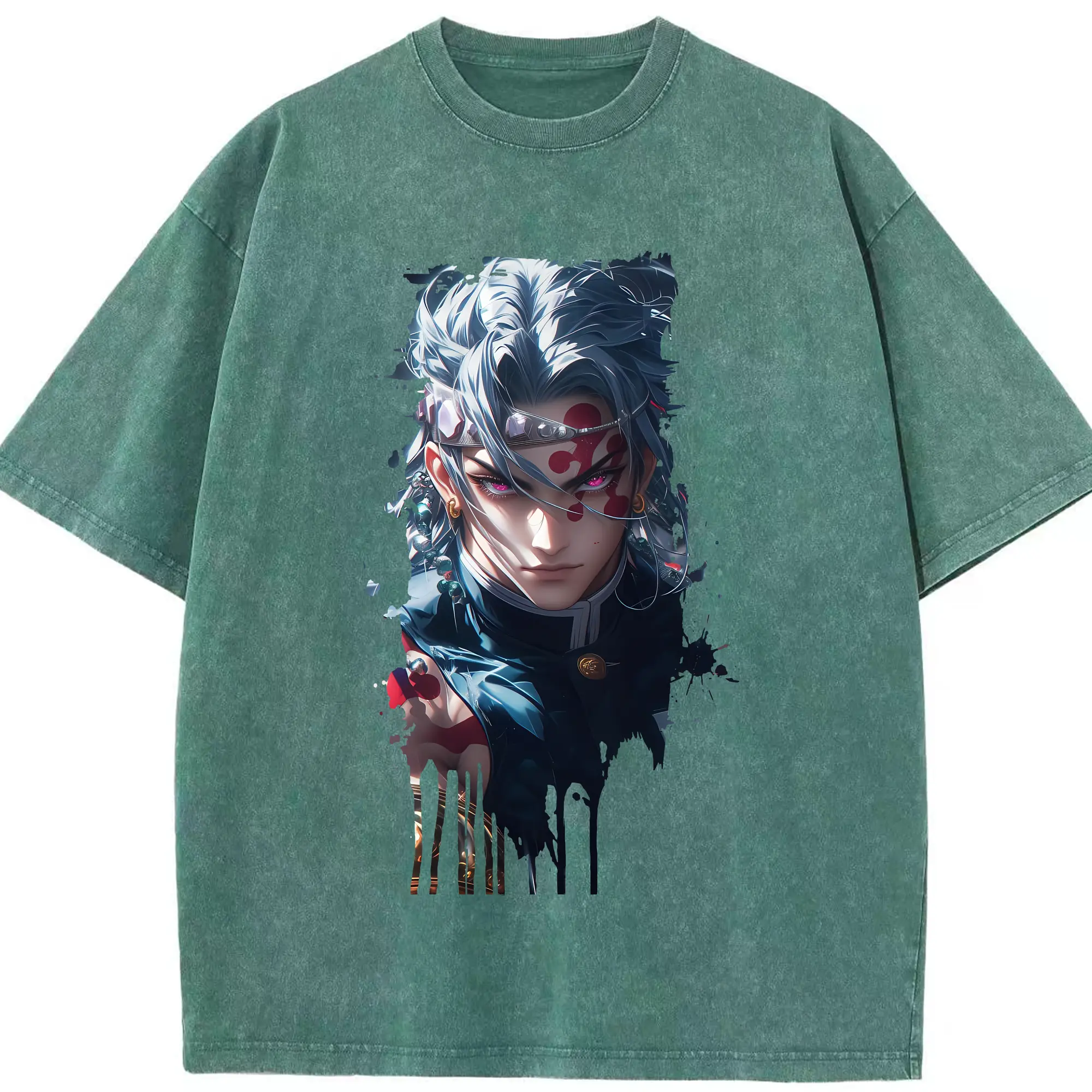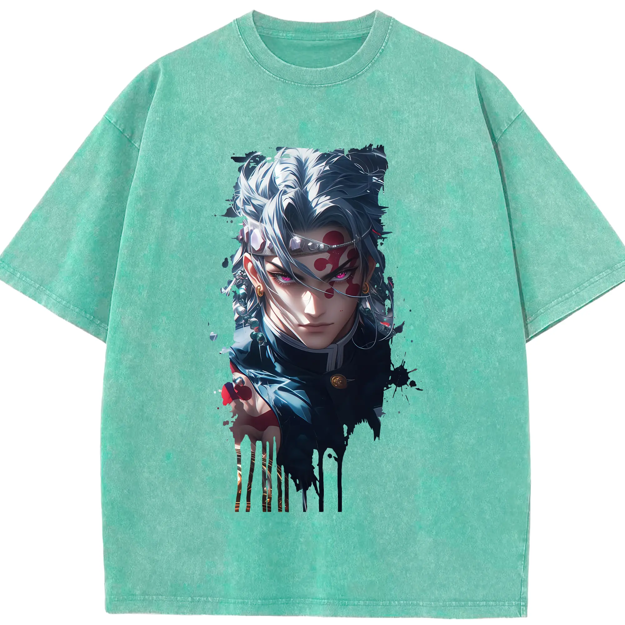 鬼滅の刃 グッズ,愈史郎 - 綿100% ヴィンテージ風 半袖Tシャツ ・ フロントプリント ・ 柔らか肌触り ・ 通気性 快適 ・ スポーツ カジュアル 外出用