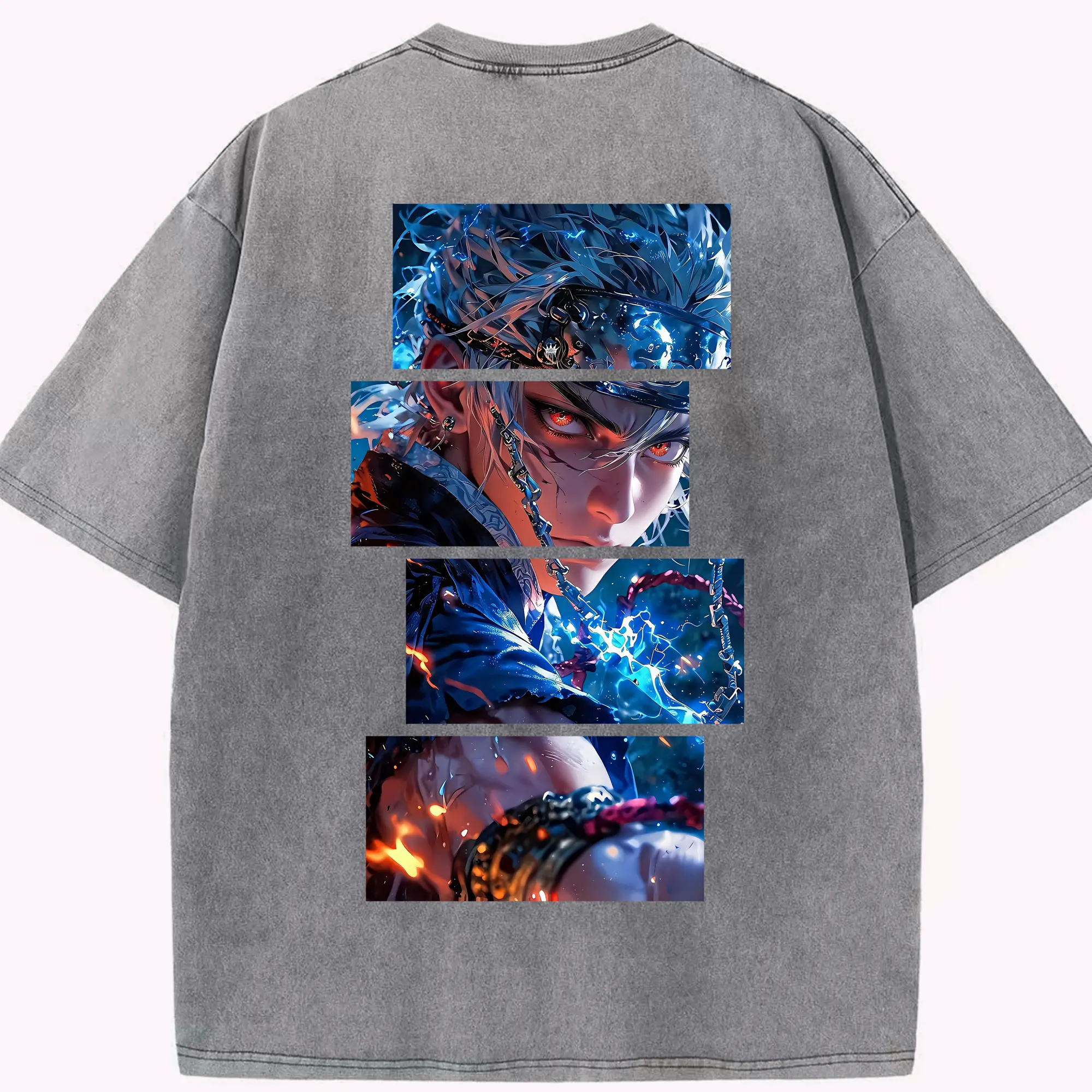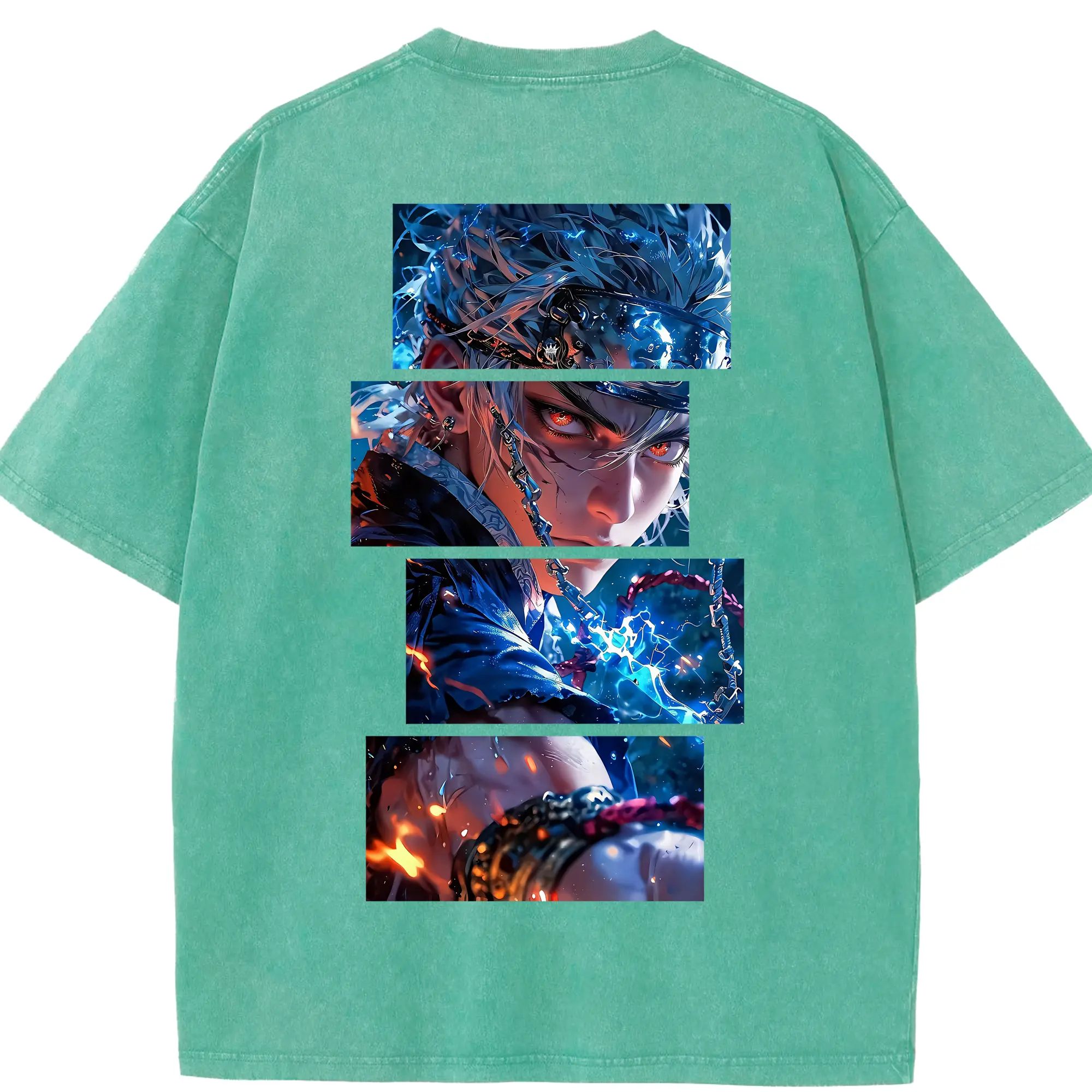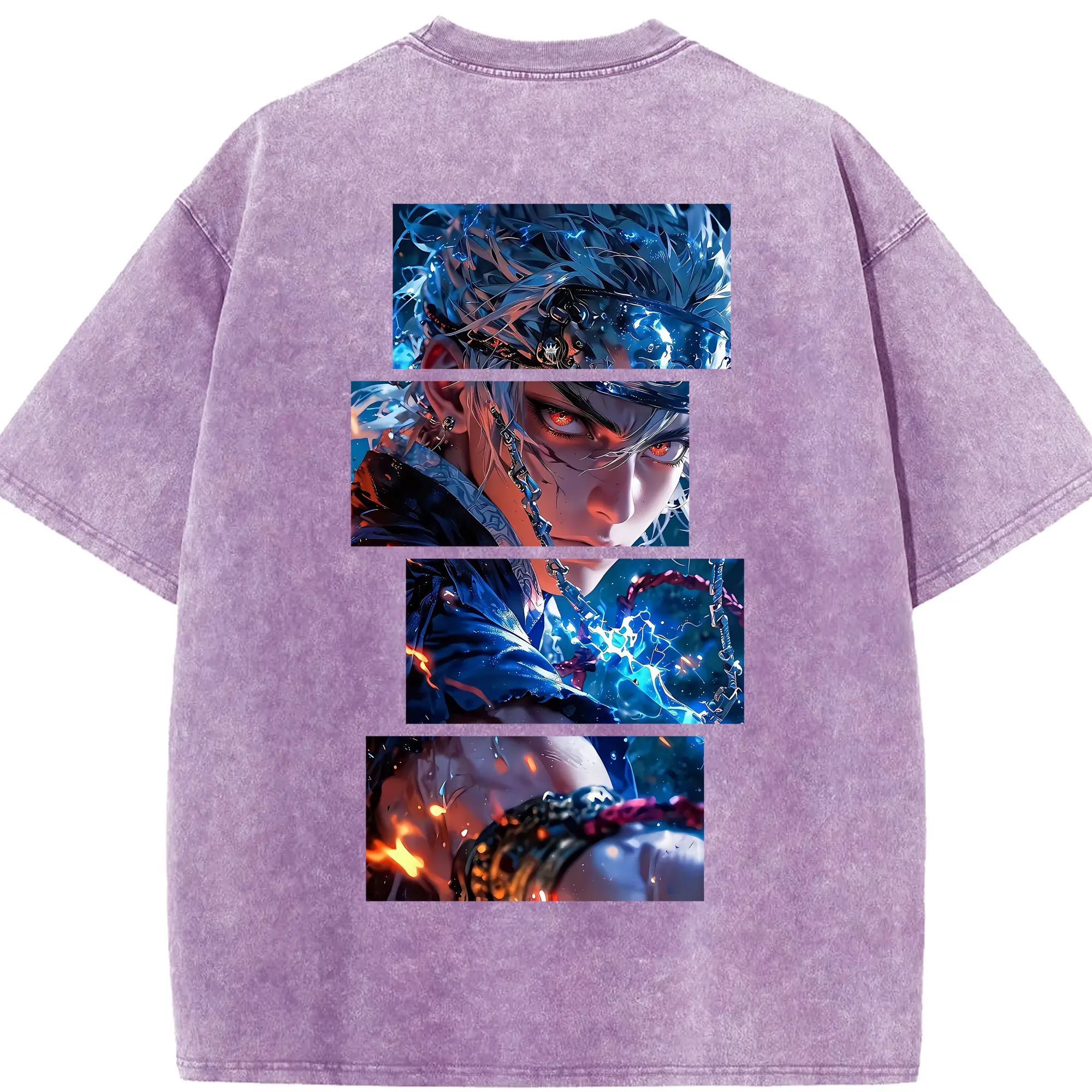 鬼滅の刃 グッズ,宇髄 天元 - 綿100% 半袖Tシャツ ・ フロントプリント ・ 快適 通気性 ・ 日常使い 散歩 スポーツ用