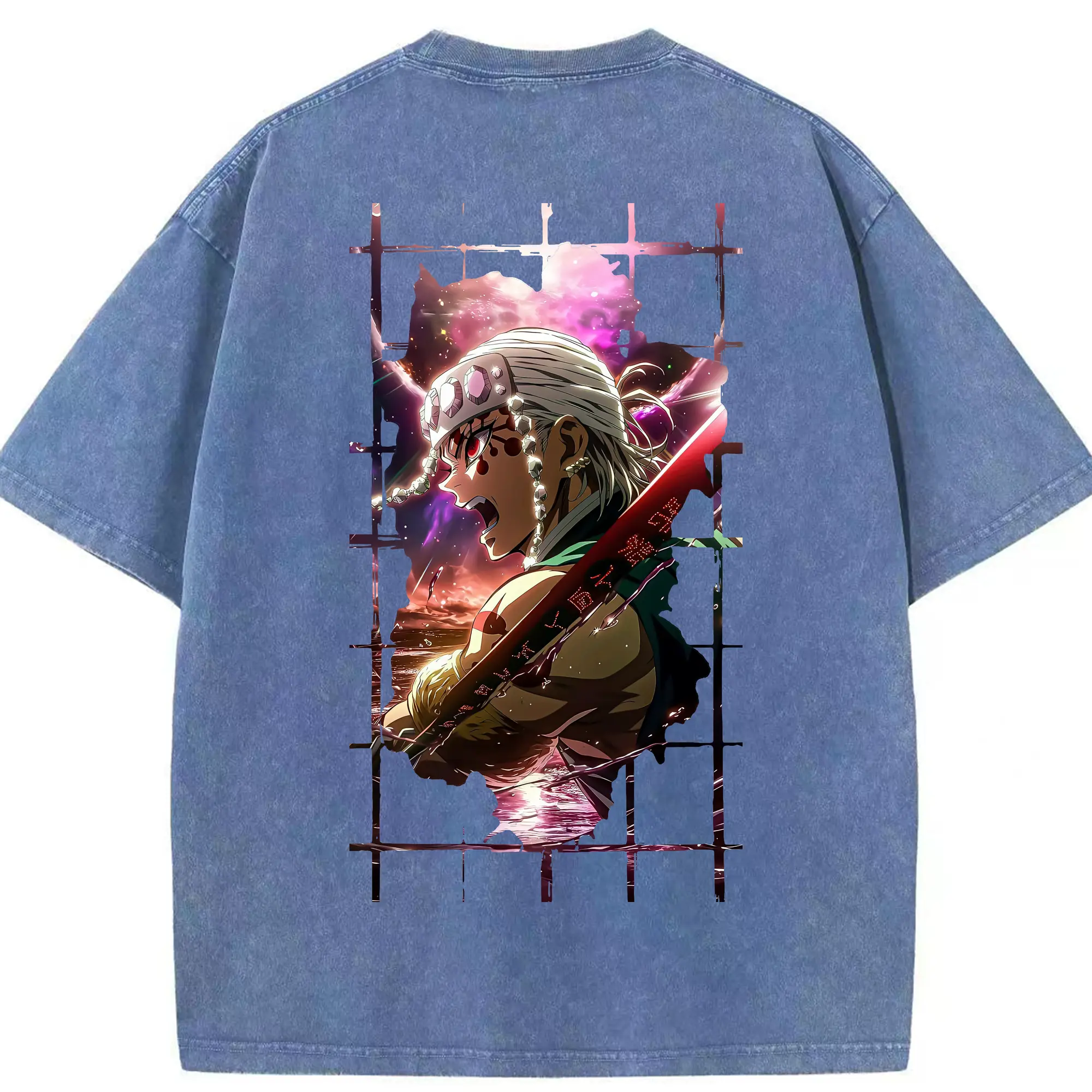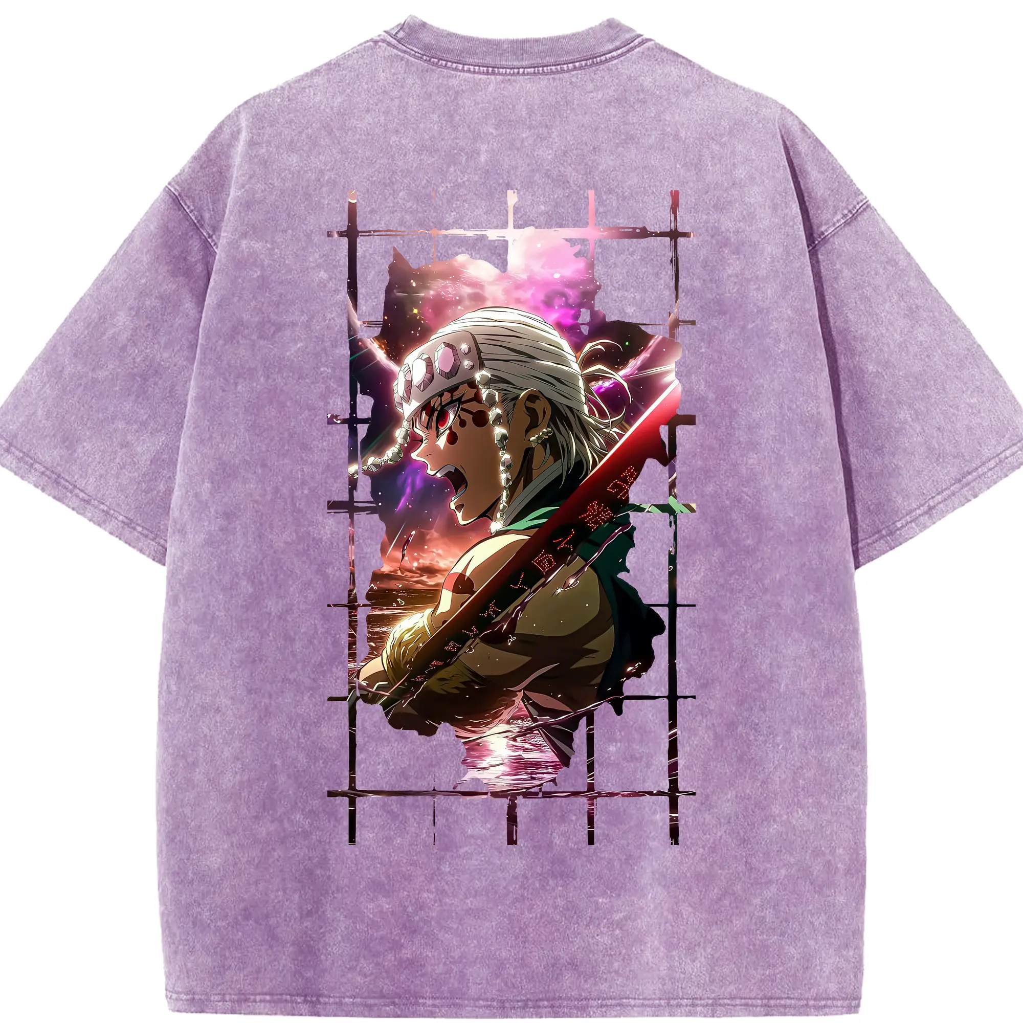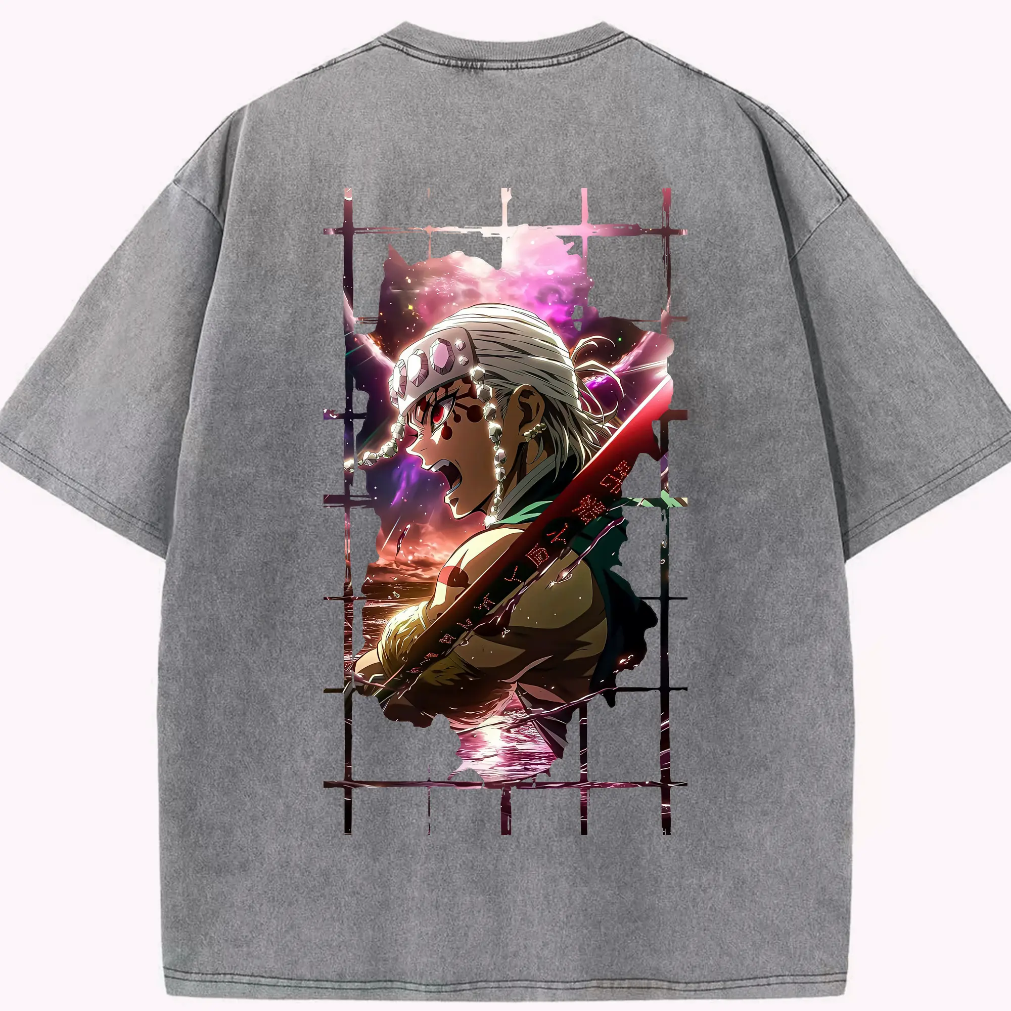 鬼滅の刃 グッズ,宇髄 天元 - 綿100% 半袖Tシャツ ・ フロントプリント ・ 快適 通気性 ・ 日常使い 散歩 スポーツ用