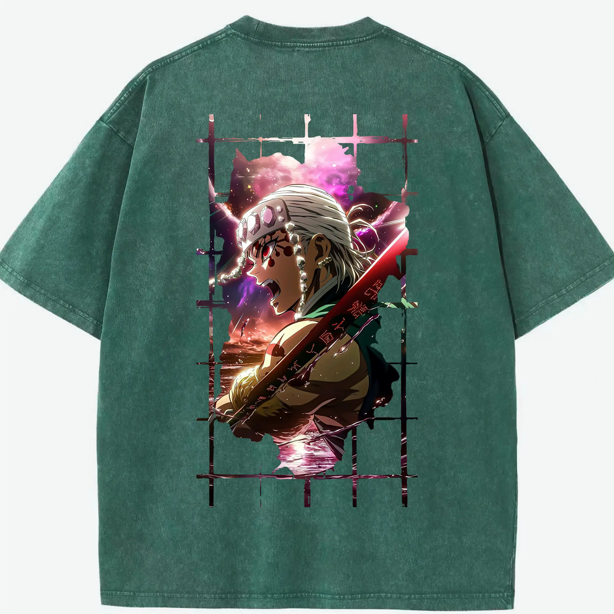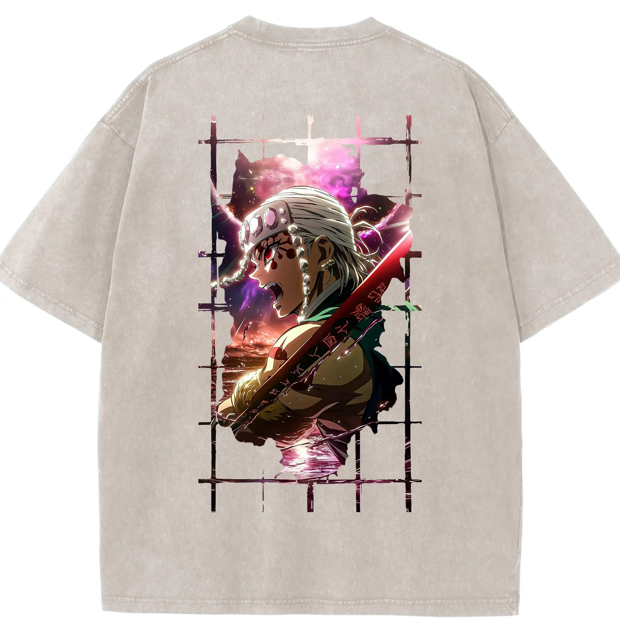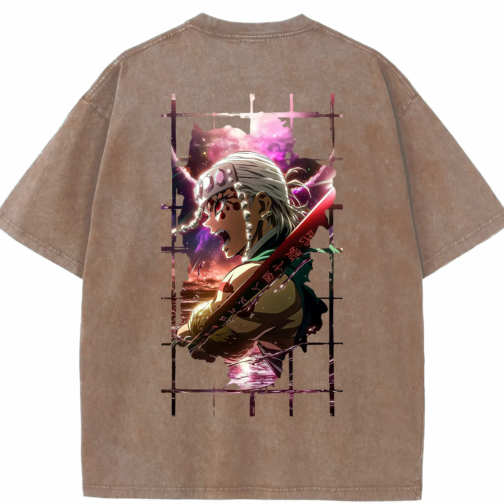 鬼滅の刃 グッズ,宇髄 天元 - 綿100% 半袖Tシャツ ・ フロントプリント ・ 快適 通気性 ・ 日常使い 散歩 スポーツ用