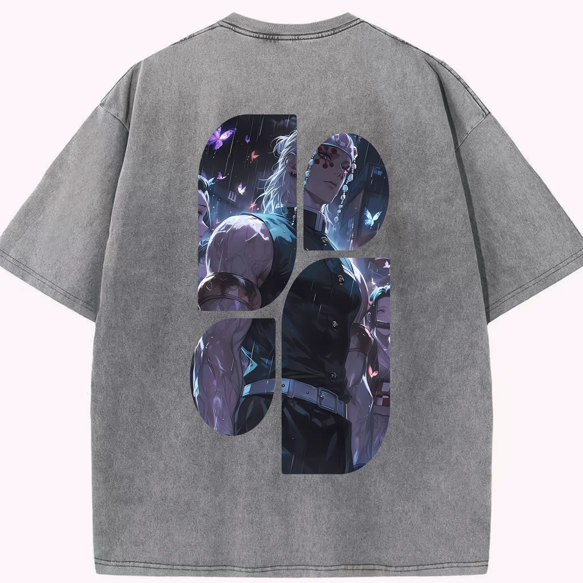 鬼滅の刃 グッズ,宇髄 天元 - 綿100% 半袖Tシャツ ・ バックプリント ・ 快適 通気性 ・ 日常使い 散歩 スポーツ用