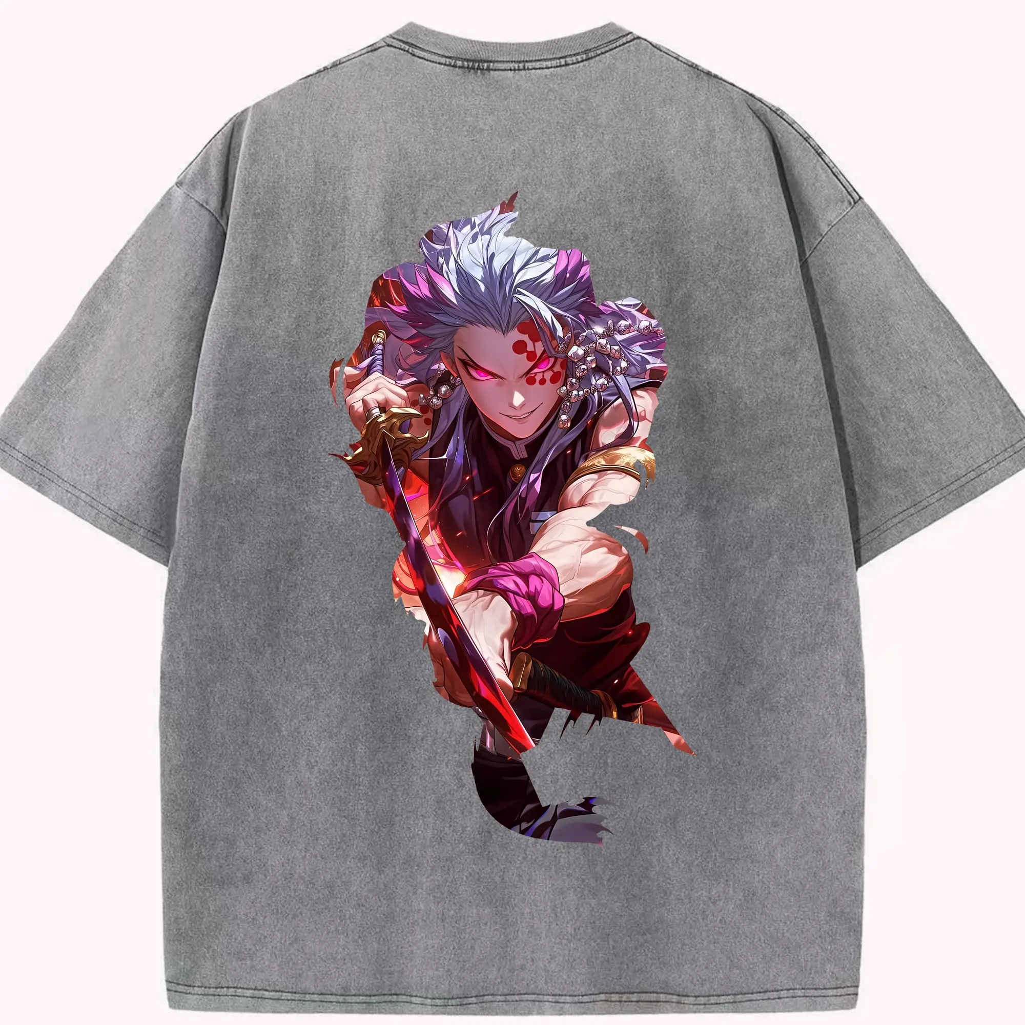 鬼滅の刃 グッズ,宇髄 天元 - 綿100% 半袖Tシャツ ・ フロントプリント ・ 快適 通気性 ・ 日常使い 散歩 スポーツ用