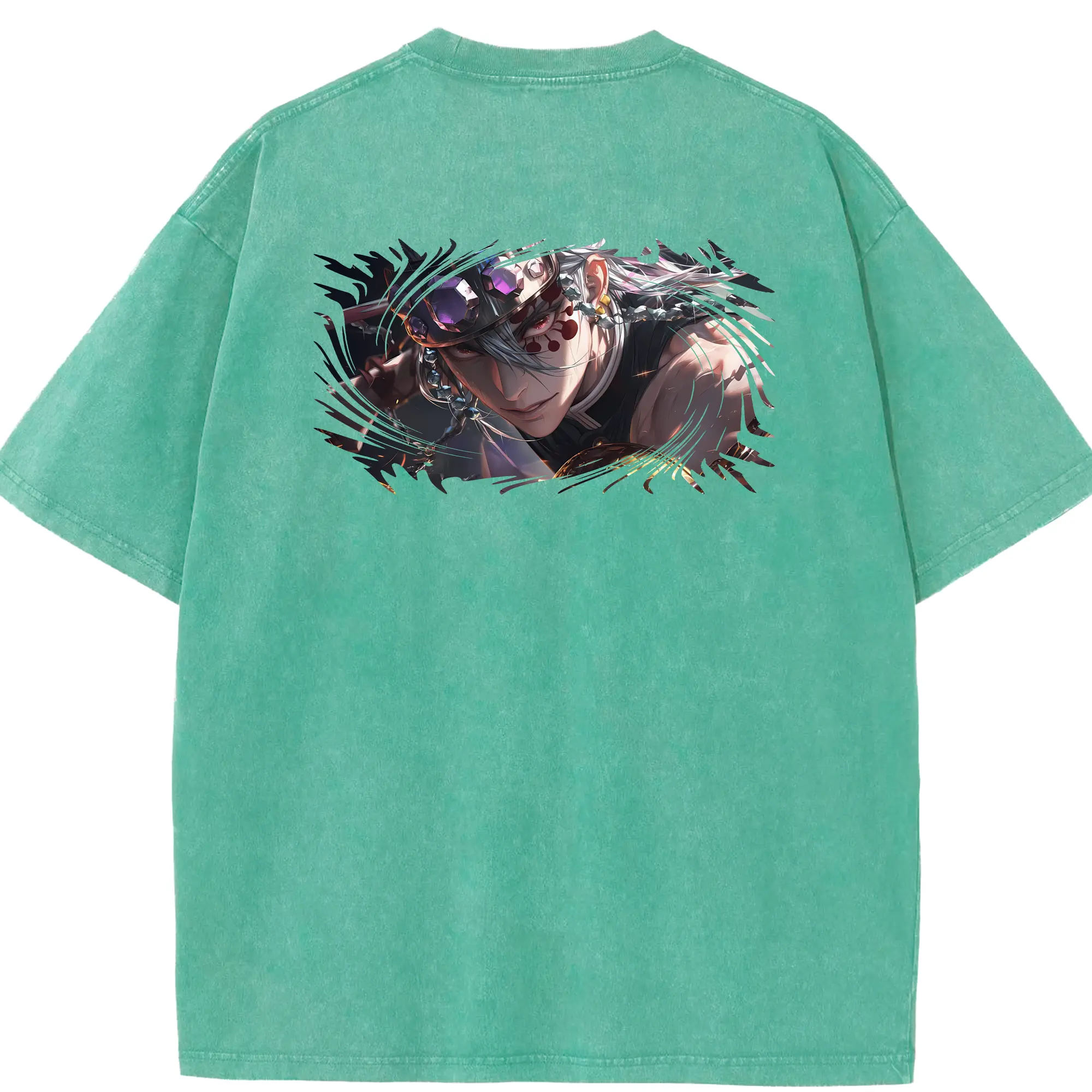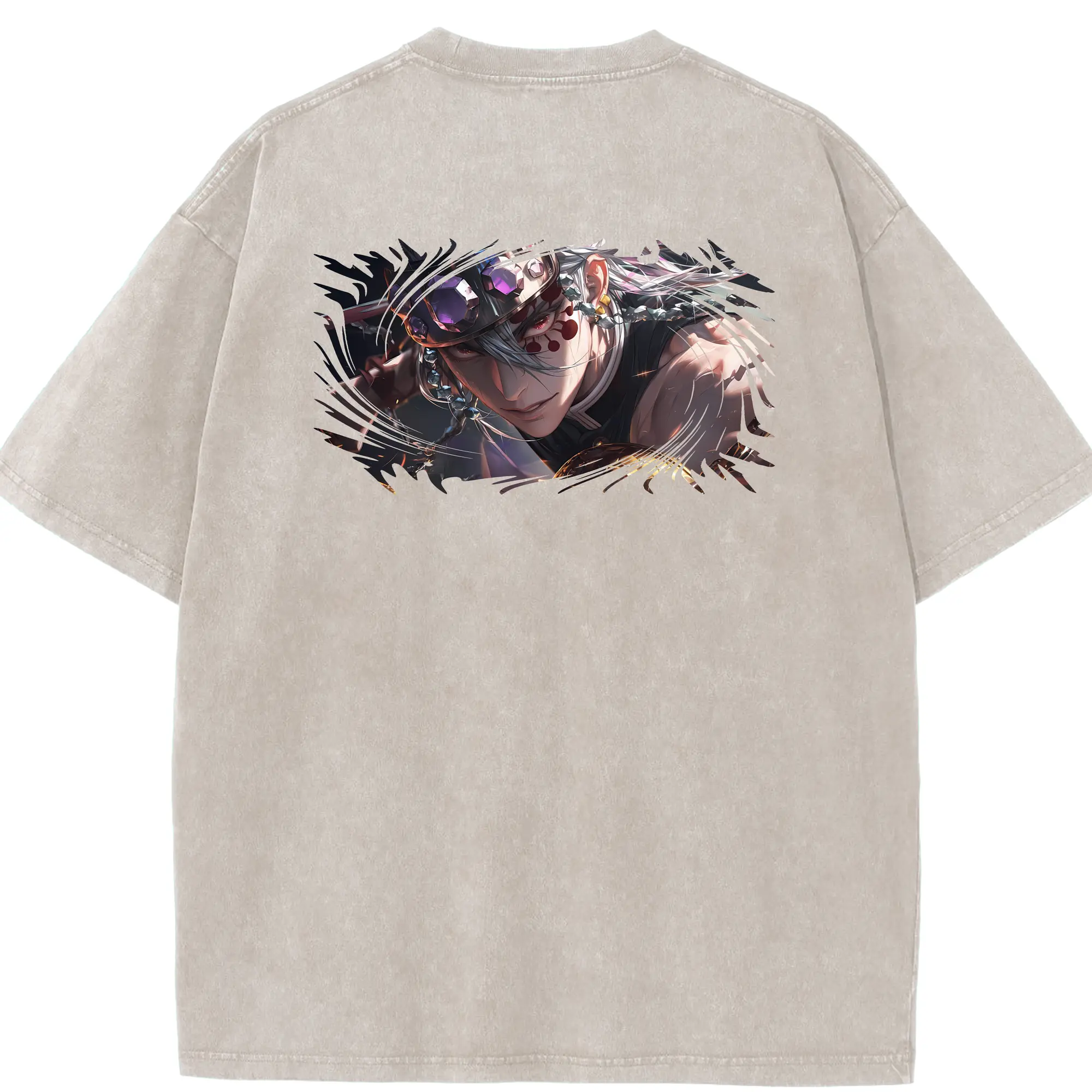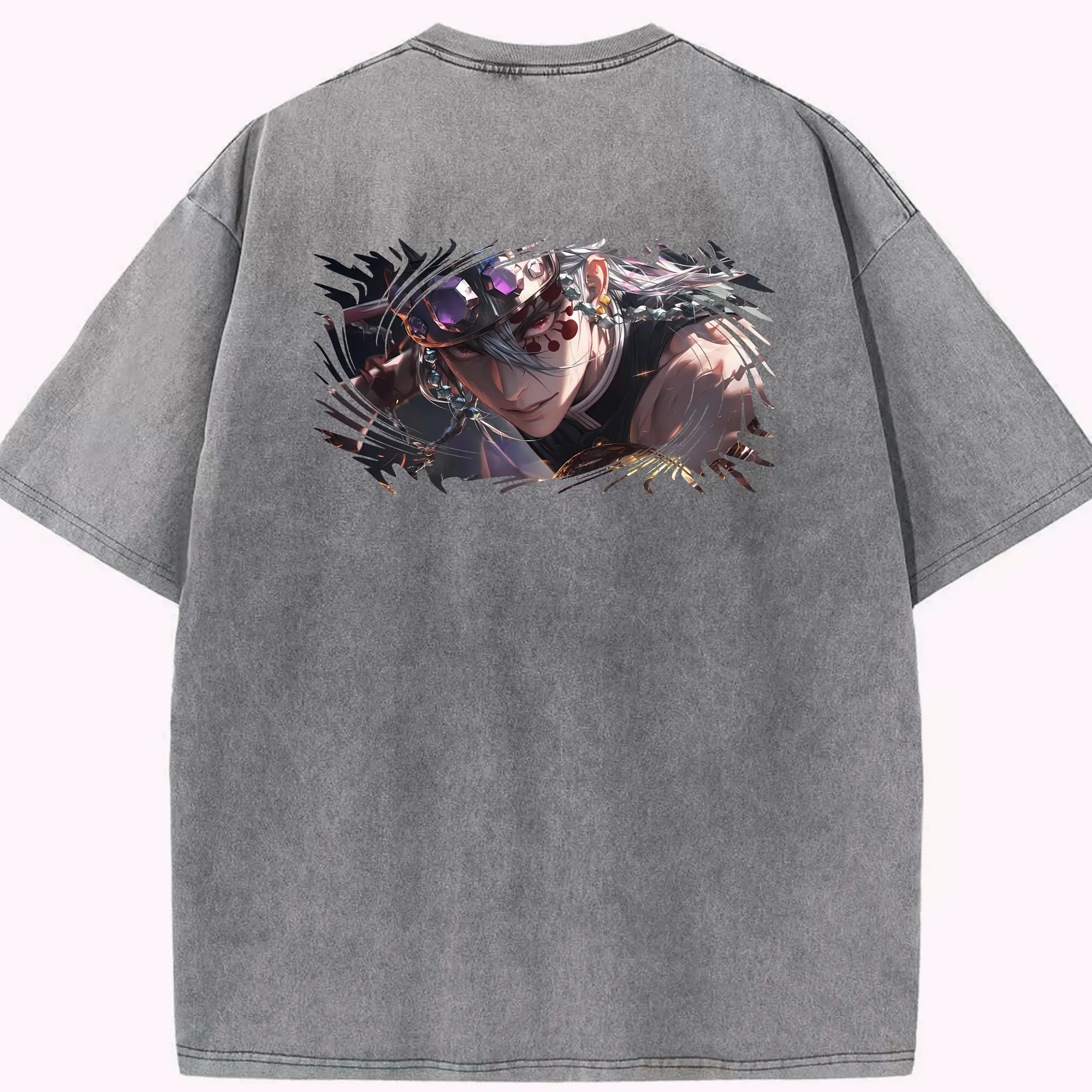 呪術廻戦 グッズ,五条 悟 - 綿100% ヴィンテージ風 半袖Tシャツ ・ 背面プリント ・ 柔らか肌触り ・ 通気性 快適 ・ スポーツ カジュアル 外出用