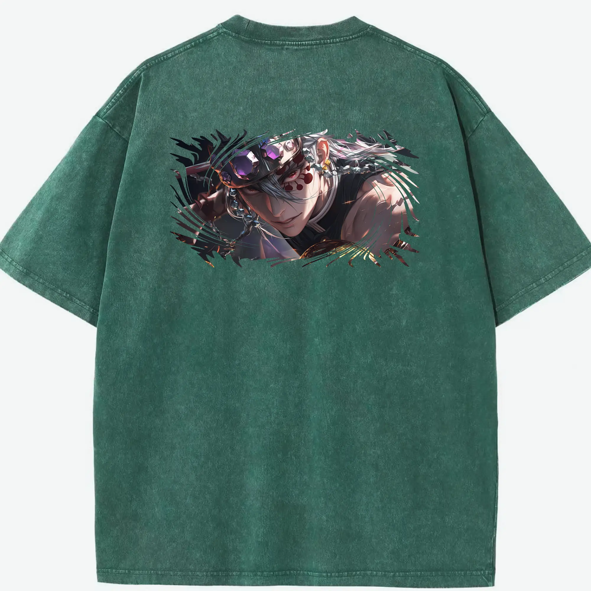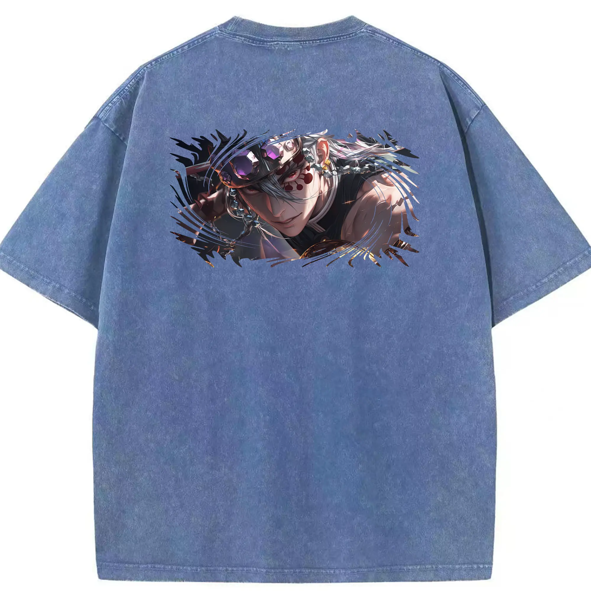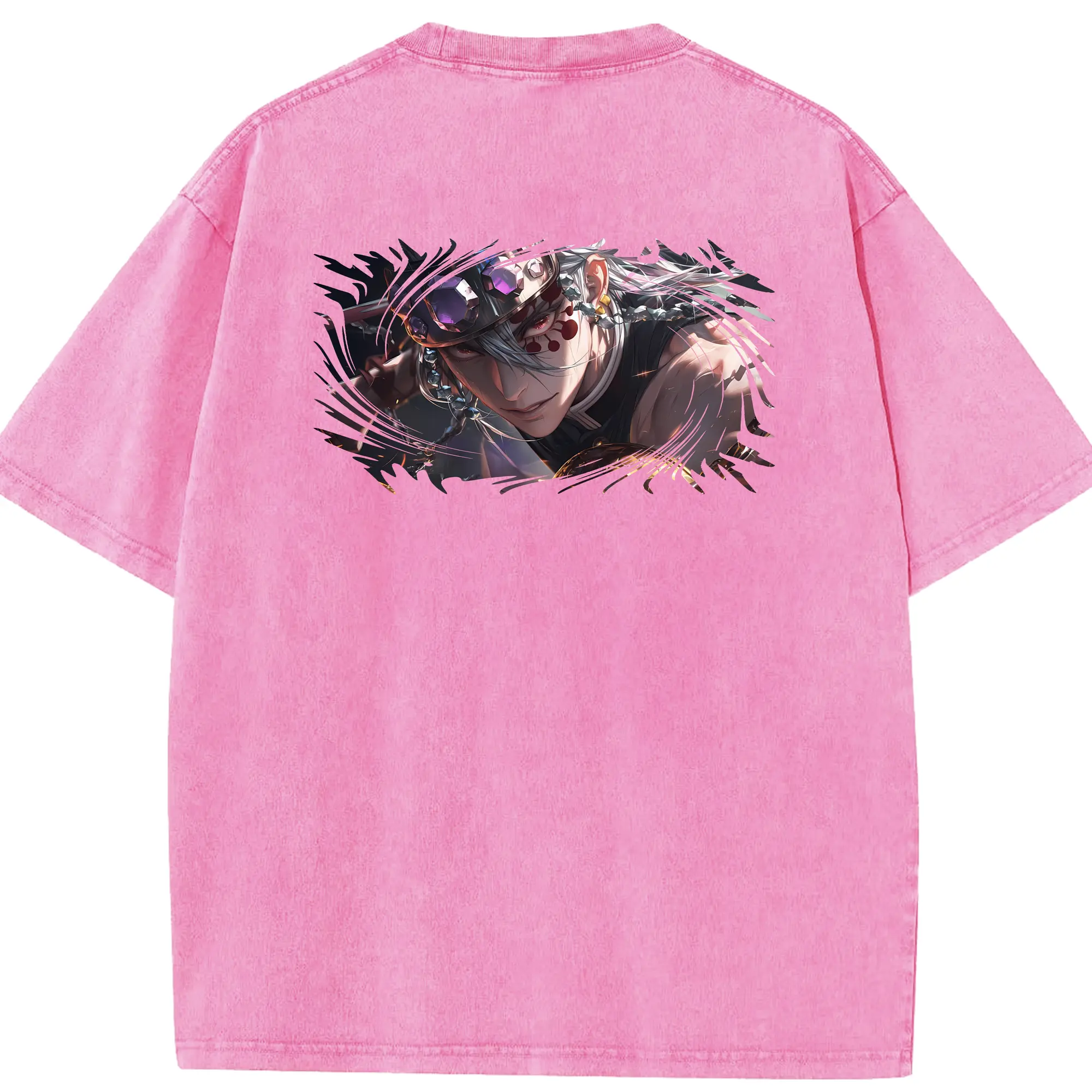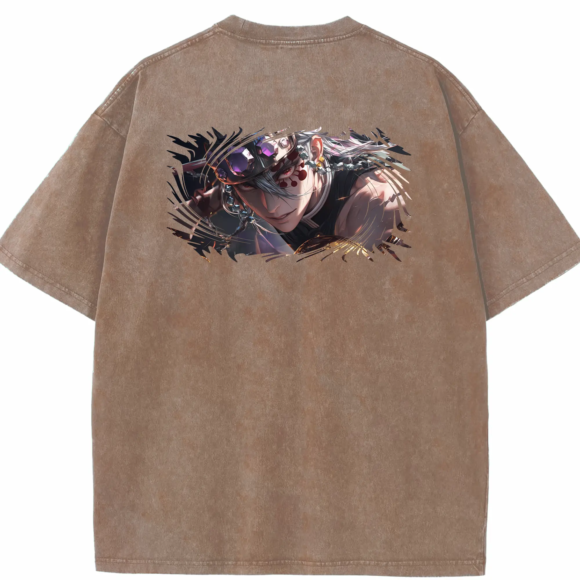 呪術廻戦 グッズ,五条 悟 - 綿100% ヴィンテージ風 半袖Tシャツ ・ 背面プリント ・ 柔らか肌触り ・ 通気性 快適 ・ スポーツ カジュアル 外出用