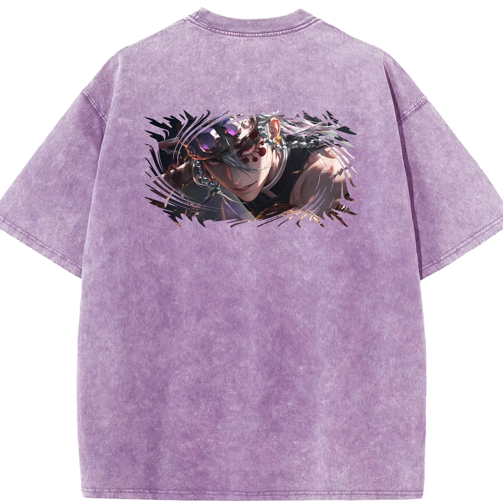 鬼滅の刃 グッズ,宇髄 天元 - 綿100% ヴィンテージ風 半袖Tシャツ ・ 背面プリント ・ 柔らか肌触り ・ 通気性 快適 ・ スポーツ カジュアル 外出用