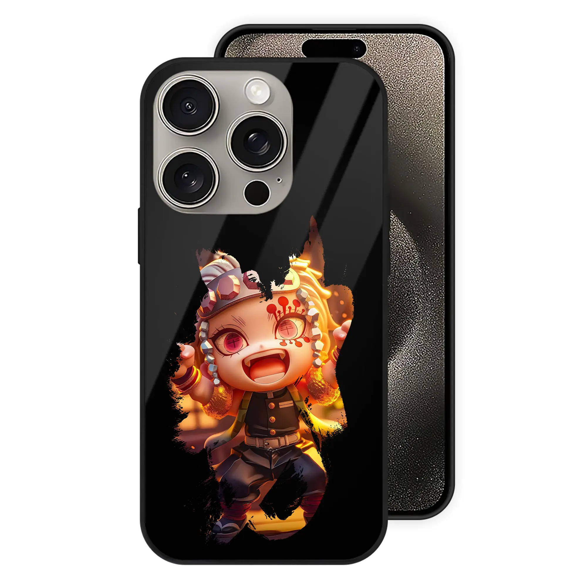 鬼滅の刃 グッズ,宇髄 天元 - IPhone15Pro対応 ・ スマホケース ・ 背面ガラス ・ TPU+強化ガラス ・ 耐衝撃 ・ 黄変防止 ・ ワイヤレス充電対応 ・ 3D立体ボタン