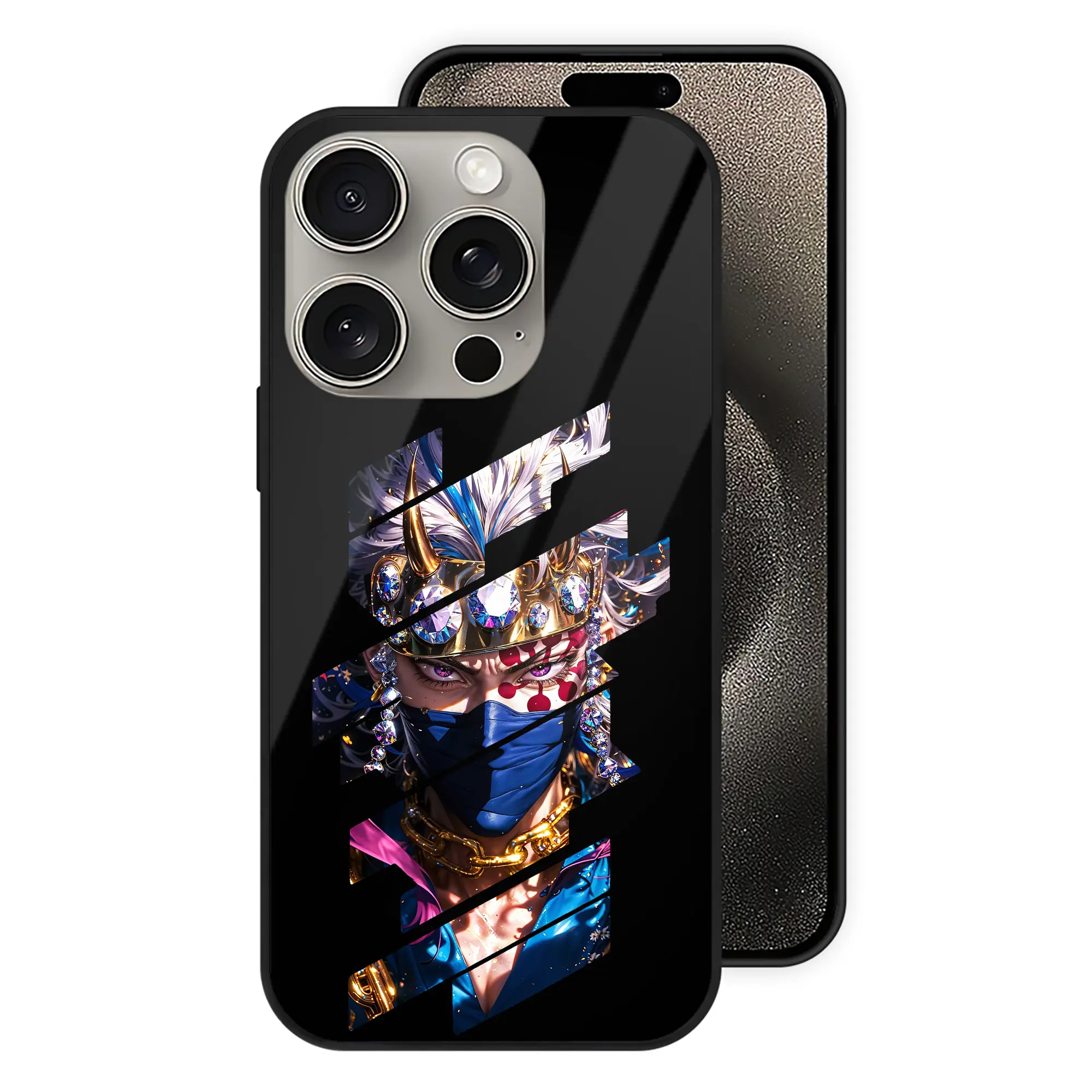 鬼滅の刃 グッズ,宇髄 天元 - IPhone15Pro対応 ・ スマホケース ・ 背面ガラス ・ TPU+強化ガラス ・ 耐衝撃 ・ 黄変防止 ・ ワイヤレス充電対応 ・ 3D立体ボタン