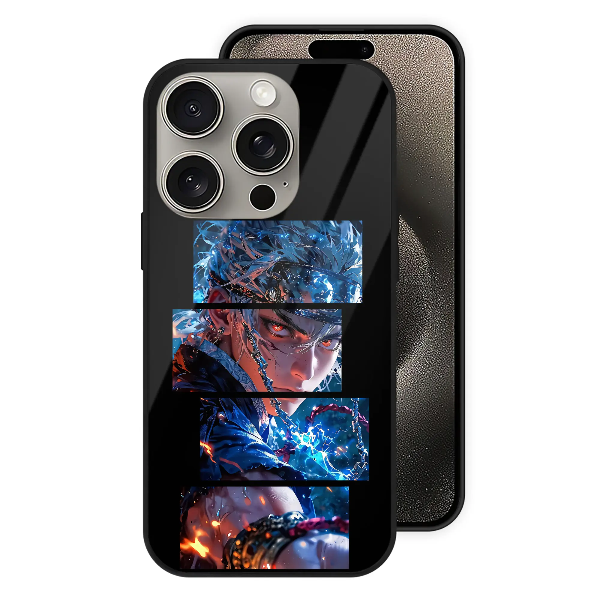 鬼滅の刃 グッズ,宇髄 天元 - IPhone15Pro対応 ・ スマホケース ・ 背面ガラス ・ TPU+強化ガラス ・ 耐衝撃 ・ 黄変防止 ・ ワイヤレス充電対応 ・ 3D立体ボタン