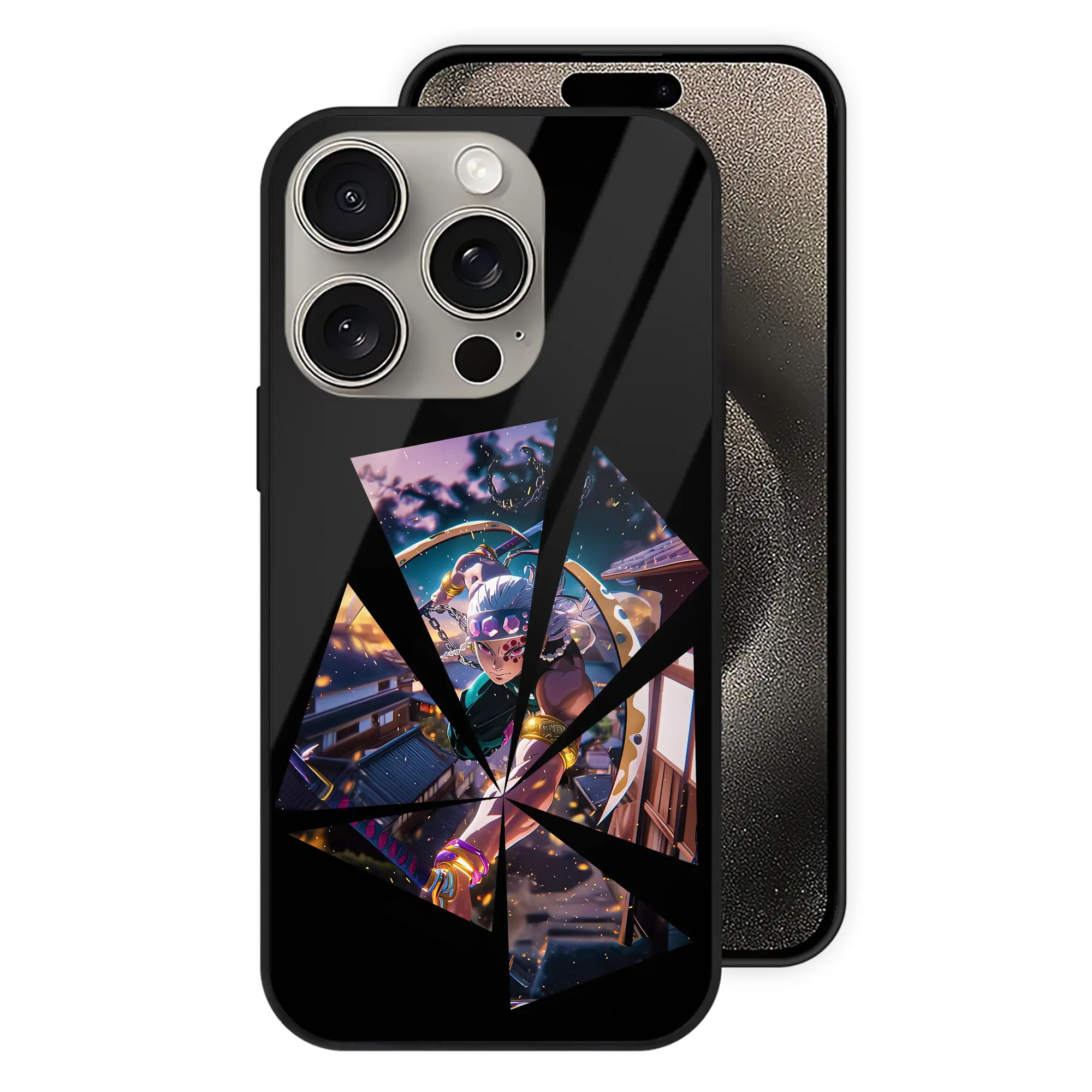 鬼滅の刃 グッズ,宇髄 天元 - IPhone15Pro対応 ・ スマホケース ・ 背面ガラス ・ TPU+強化ガラス ・ 耐衝撃 ・ 黄変防止 ・ ワイヤレス充電対応 ・ 3D立体ボタン