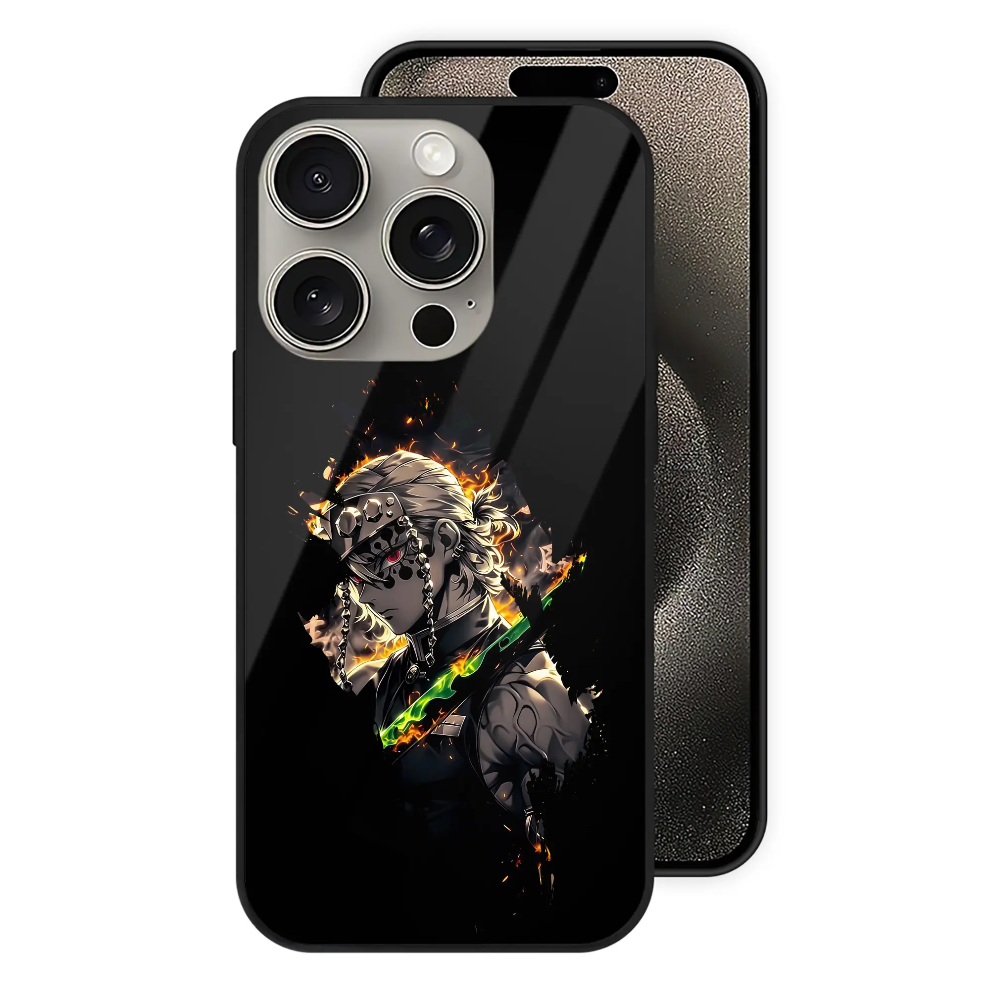 鬼滅の刃 グッズ,宇髄 天元 - IPhone15Pro対応 ・ スマホケース ・ 背面ガラス ・ TPU+強化ガラス ・ 耐衝撃 ・ 黄変防止 ・ ワイヤレス充電対応 ・ 3D立体ボタン