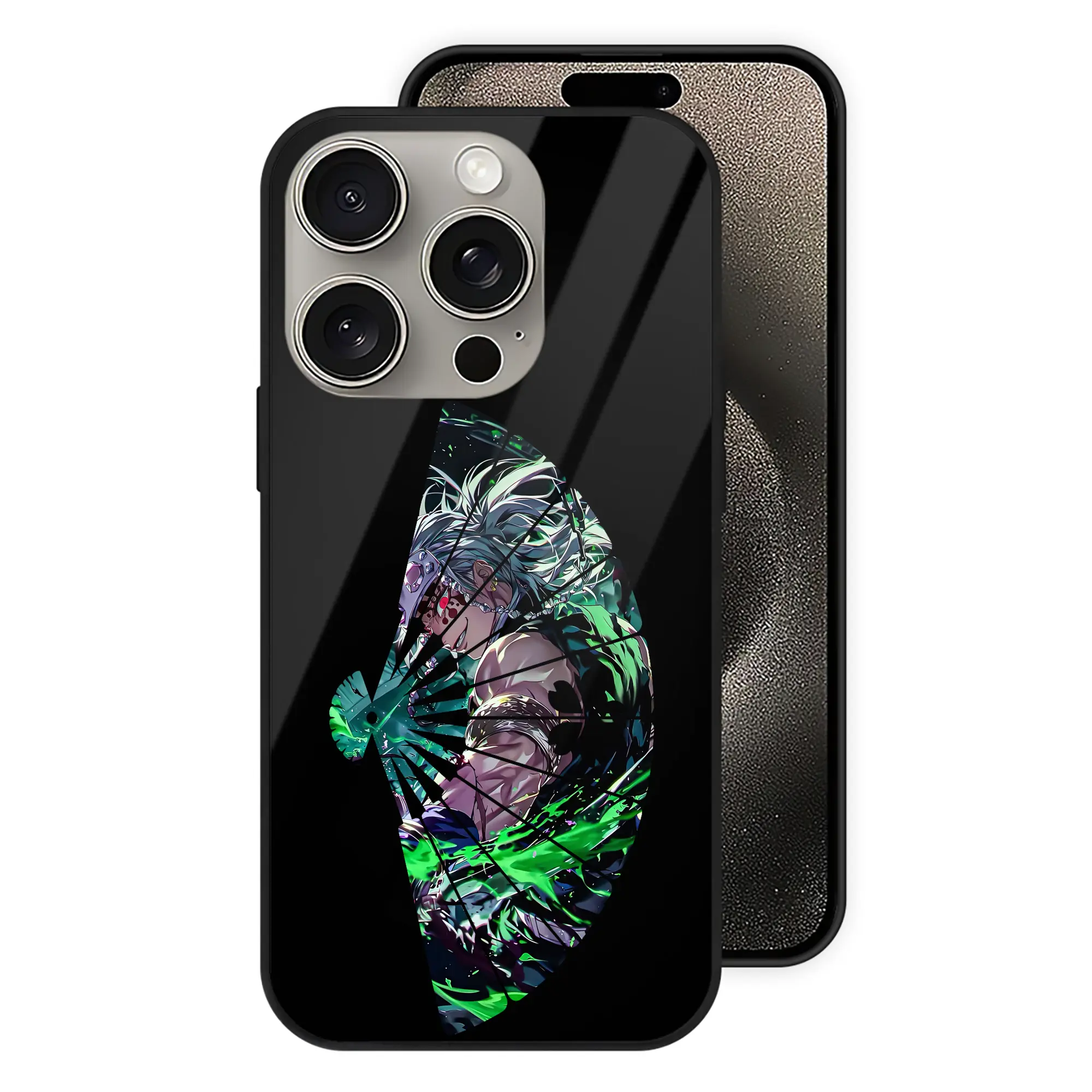 鬼滅の刃 グッズ,宇髄 天元 - IPhone15Pro対応 ・ スマホケース ・ 背面ガラス ・ TPU+強化ガラス ・ 耐衝撃 ・ 黄変防止 ・ ワイヤレス充電対応 ・ 3D立体ボタン