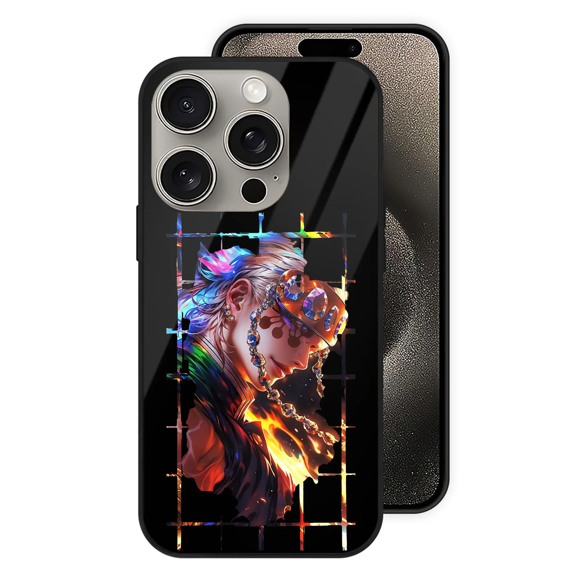 鬼滅の刃 グッズ,宇髄 天元 - IPhone15Pro対応 ・ スマホケース ・ 背面ガラス ・ TPU+強化ガラス ・ 耐衝撃 ・ 黄変防止 ・ ワイヤレス充電対応 ・ 3D立体ボタン