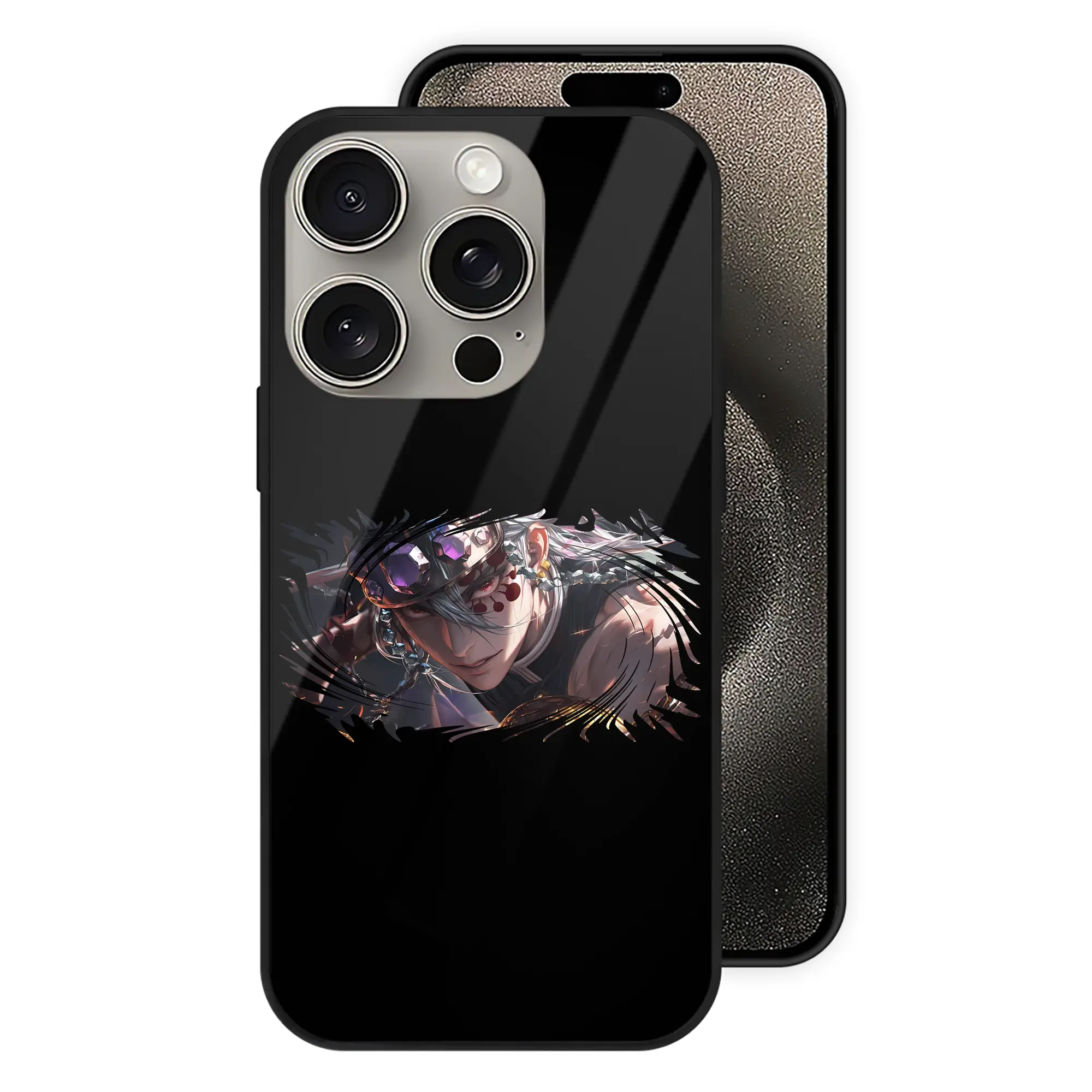 鬼滅の刃 グッズ,宇髄 天元 - IPhone15Pro対応 ・ スマホケース ・ 背面ガラス ・ TPU+強化ガラス ・ 耐衝撃 ・ 黄変防止 ・ ワイヤレス充電対応 ・ 3D立体ボタン